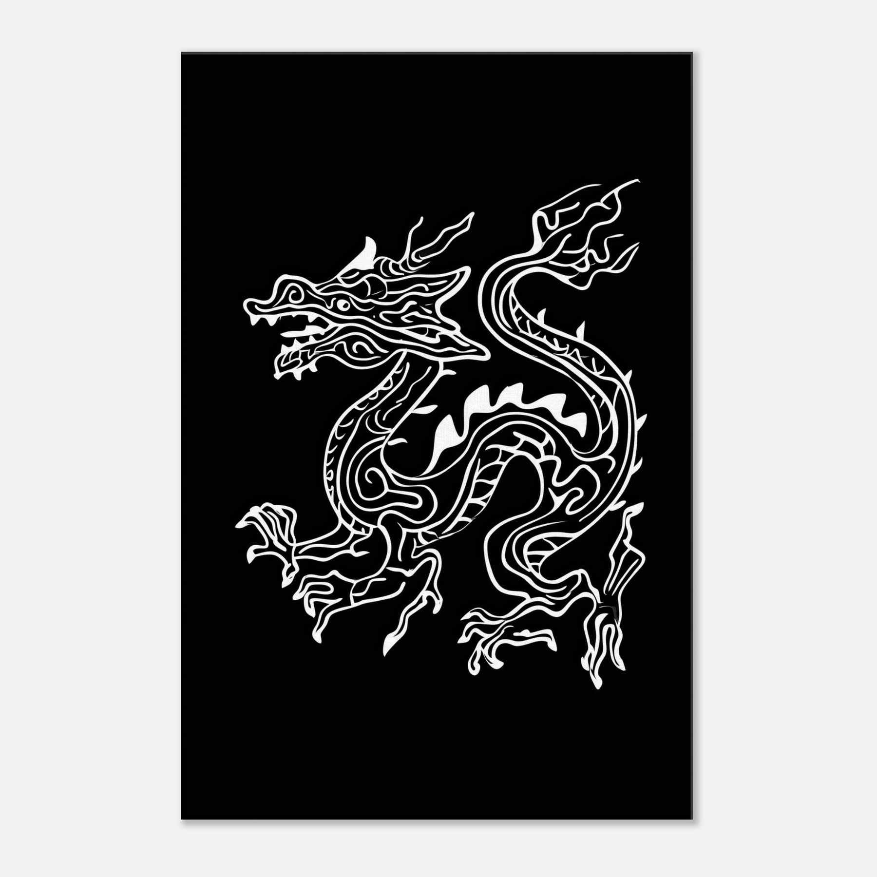In monochrome elegance, the Ancient Chinese Dragon unfurls through a ribbon of line art, tracing ancient myths across your wall. The bold white on deep black conjures night market glow and morning jade, a sense of motion that breathes life into a quiet living room. The sinuous contours invite the eye to wander, from claw to curling tail, inviting contemplation and balance. Hang above a sofa or console to create a focal heartbeat of drama, heritage, and modern refinement.