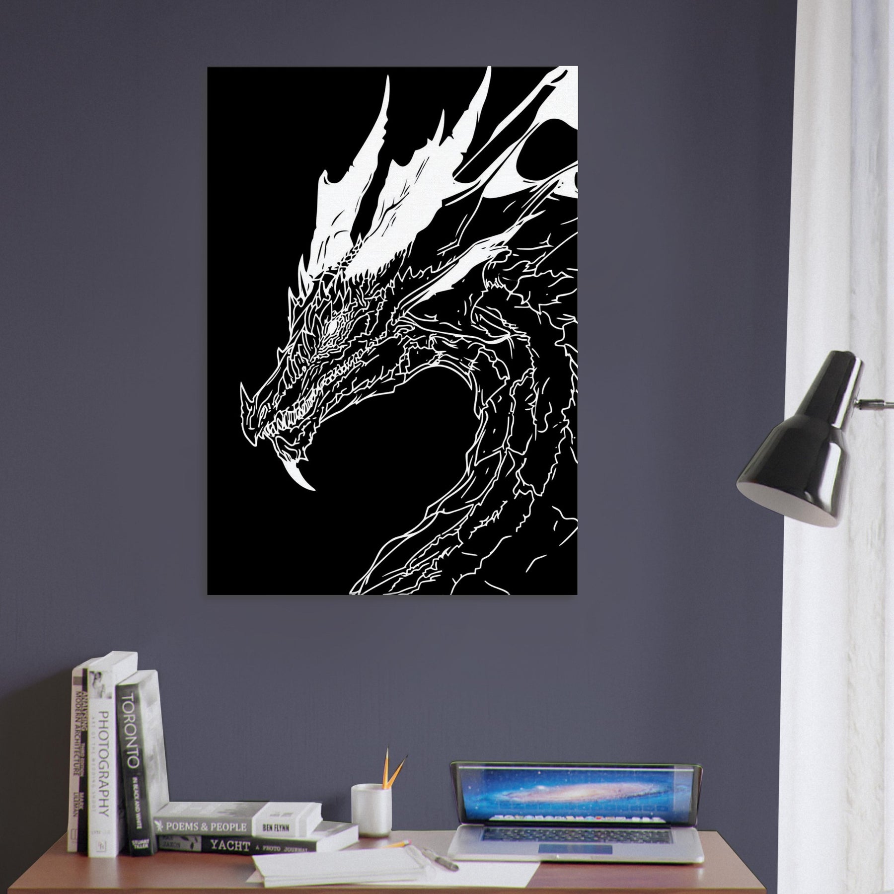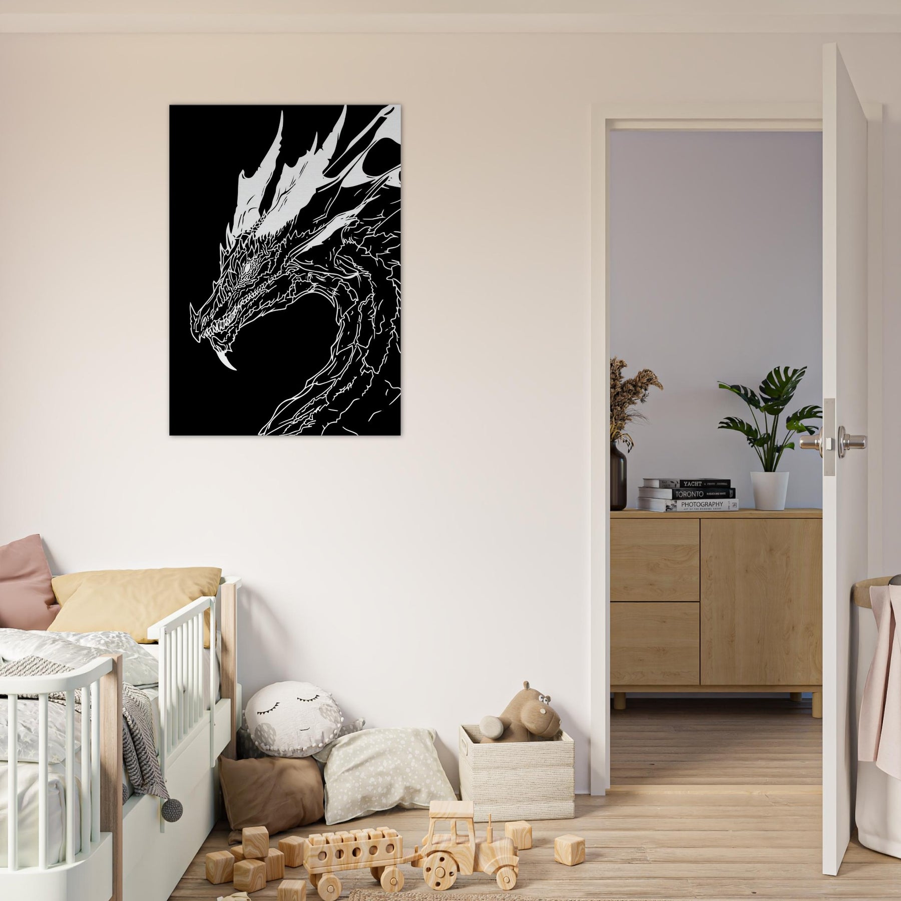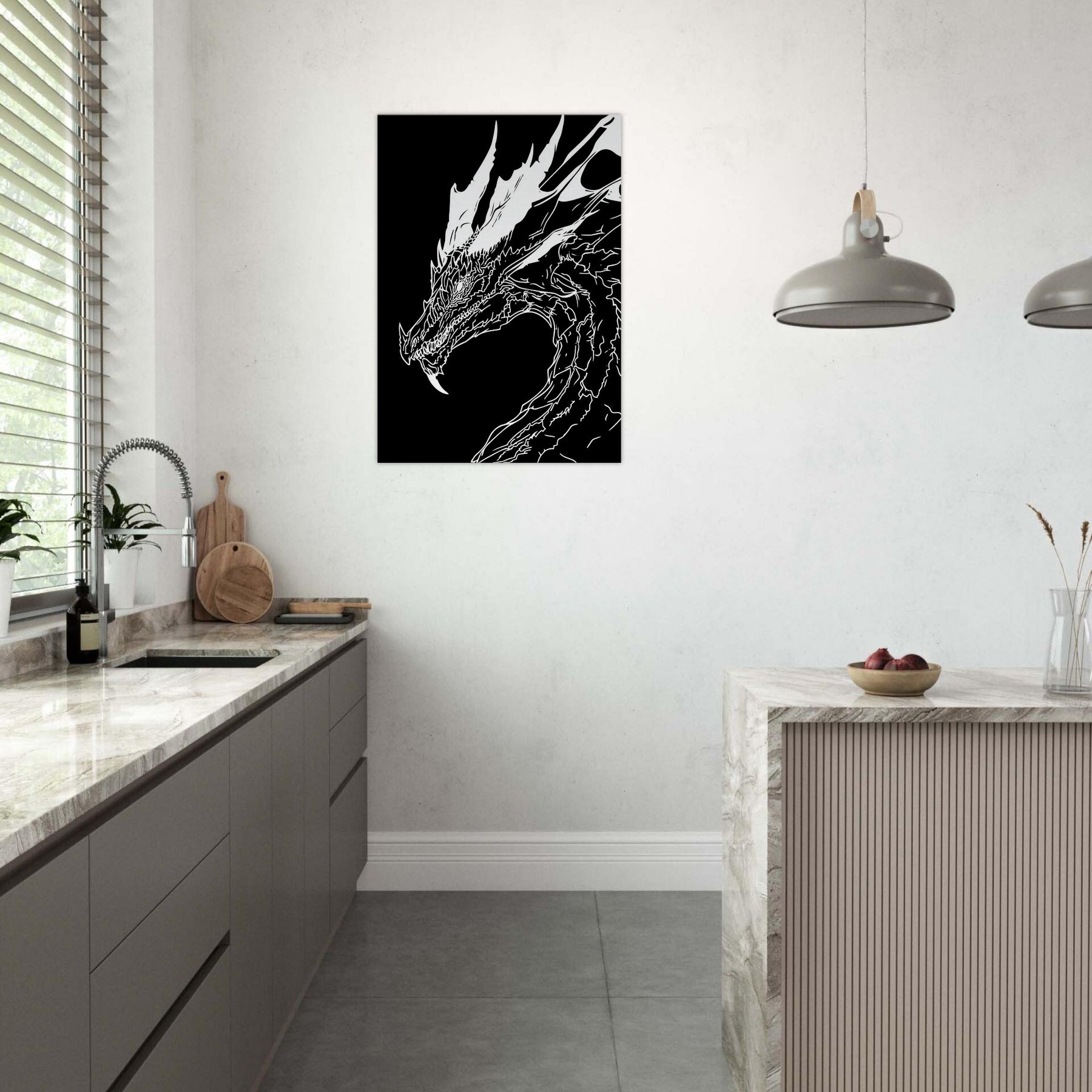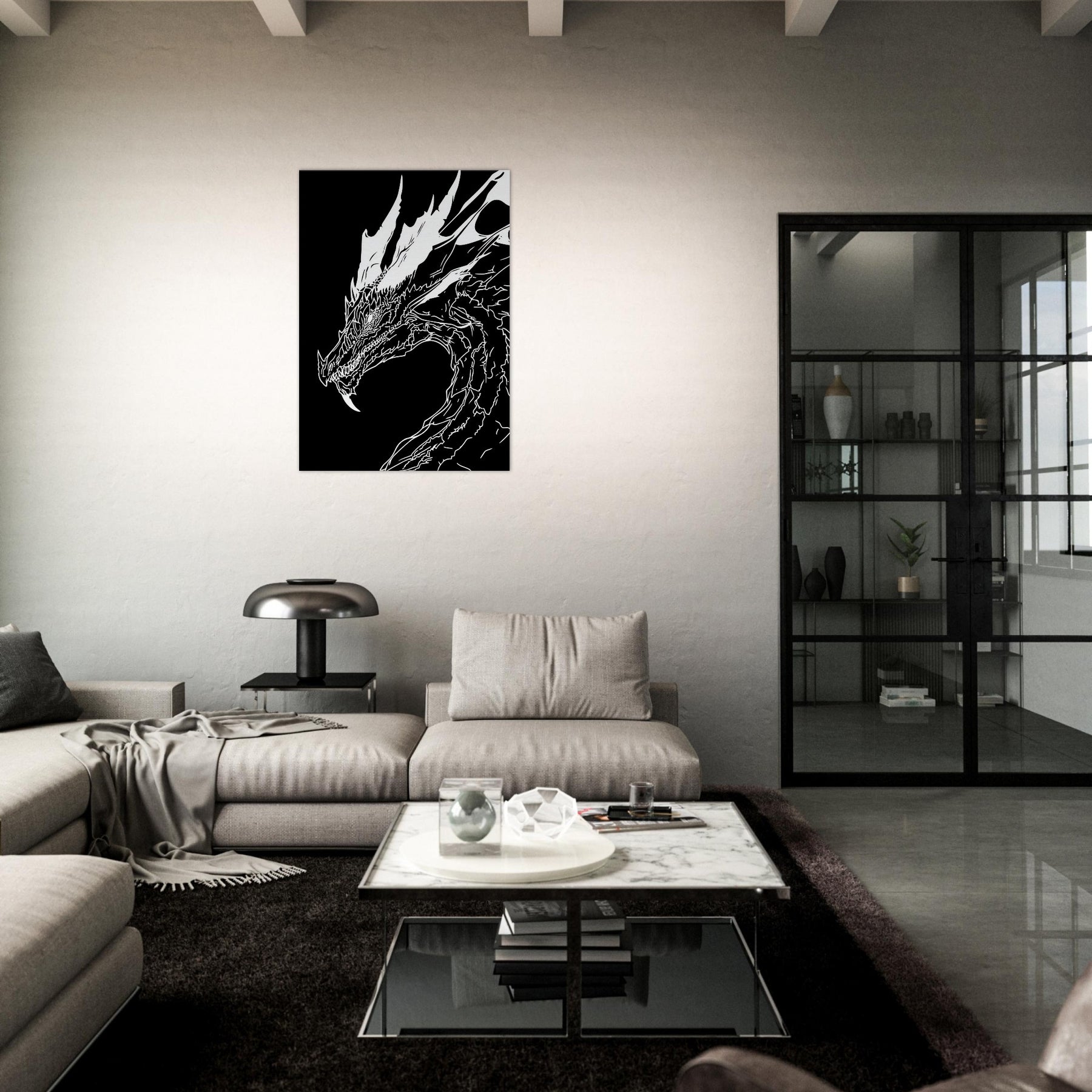 Across a field of jet black, the Majestic Dragon unfolds in pristine white line, a study in motion and hush. This line art captures the creature’s ancient, wind slicked form with delicate precision, inviting the gaze to linger on every tapering spine and sinew. It brings a sense of mythic scale to any room, lending drama without distraction perfect above a sofa, in a quiet corridor, or above a desk where inspiration takes flight.