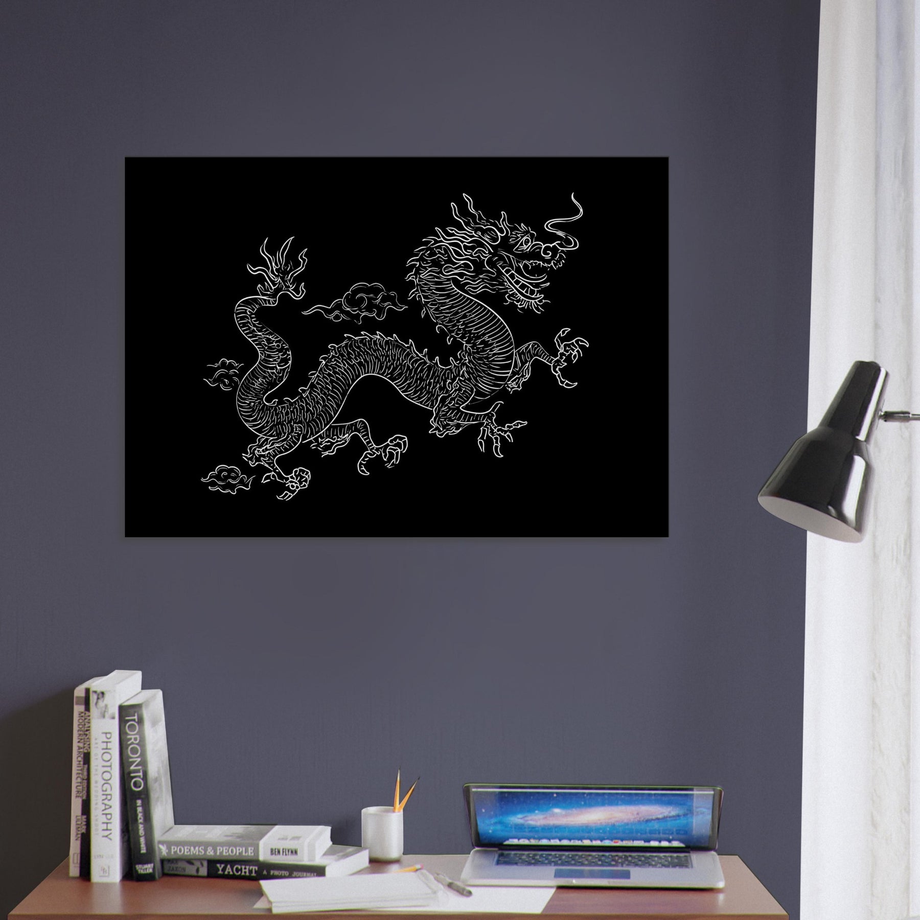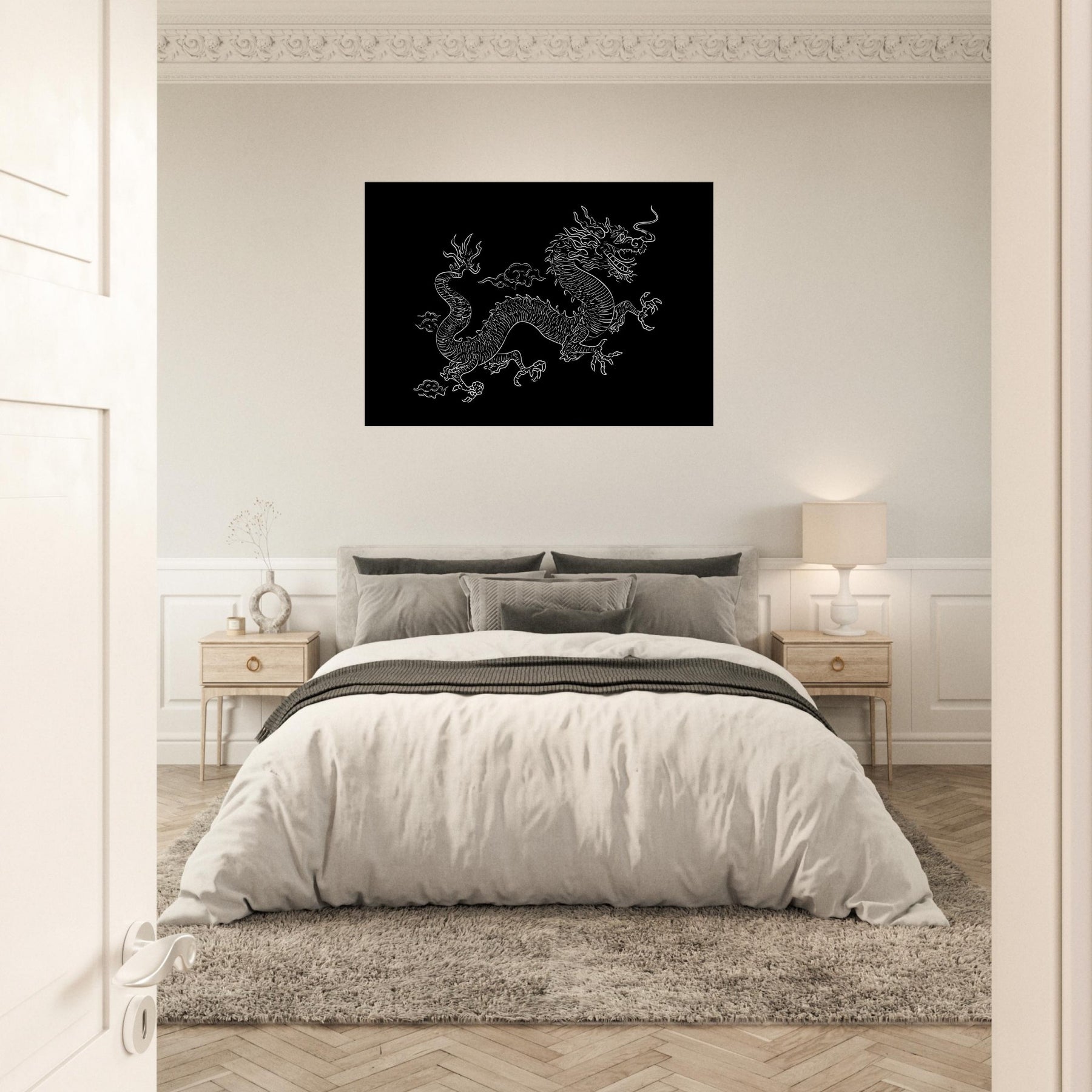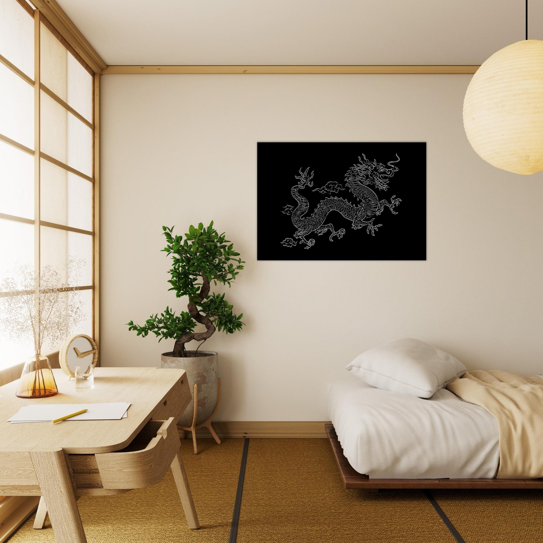 Immerse your space in the awe and elegance of an Ancient Chinese Dragon rendered in pure line work. The crisp white contour against midnight is both ancient myth and modern minimalism, weaving motion and poetry across your wall. Its sinuous form suggests wind and water, inviting calm focus in a living room or study. This piece carries timeless drama without overwhelm, turning a quiet corner into a portal of legend and atmosphere.