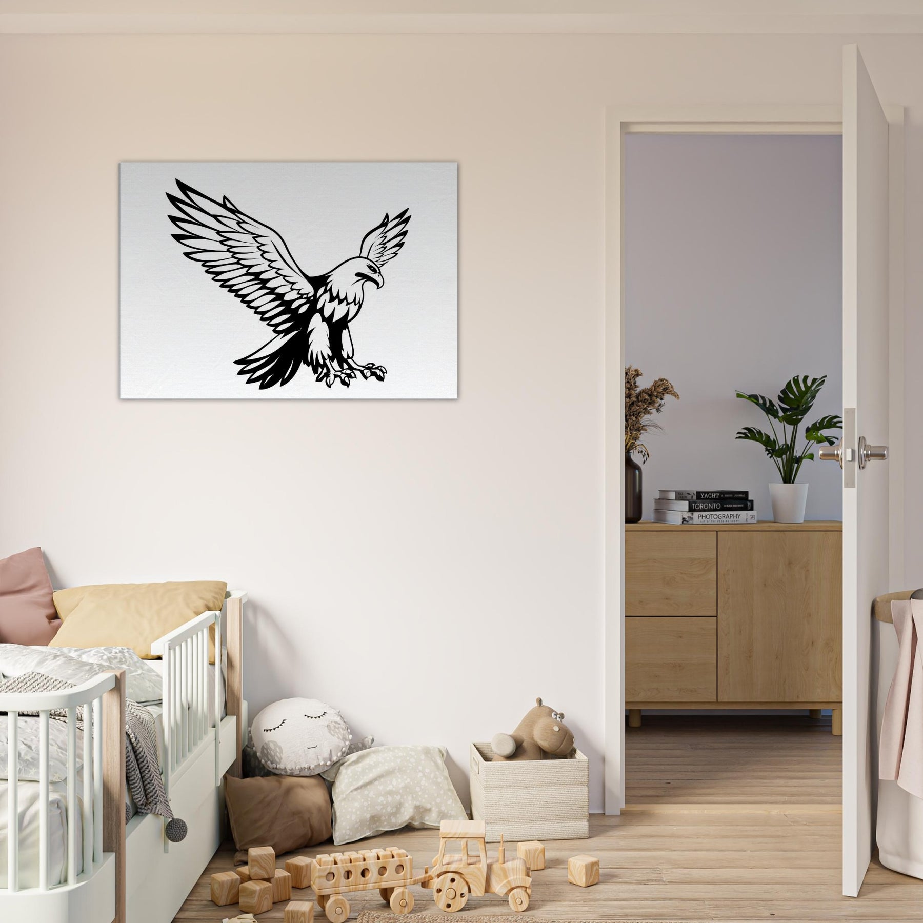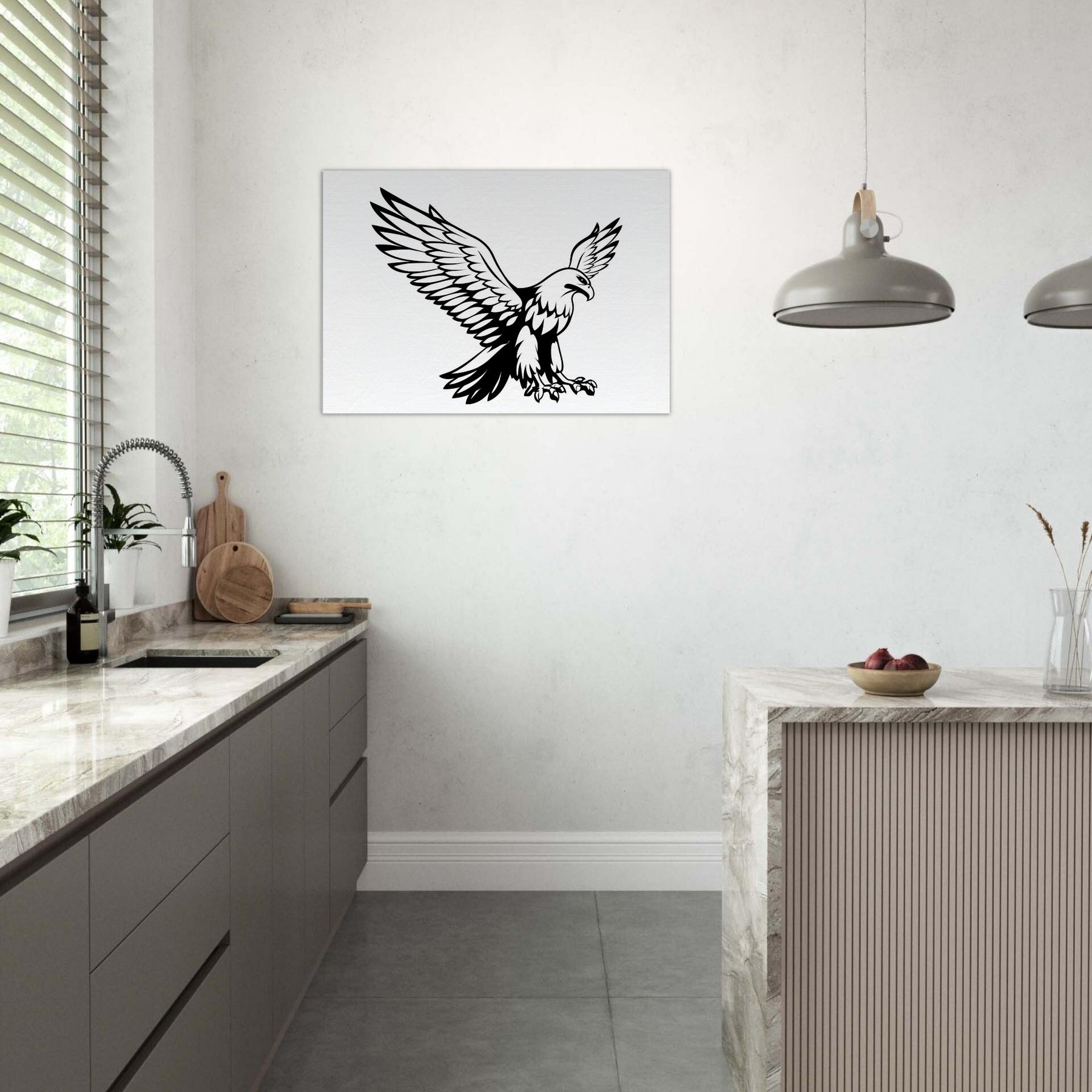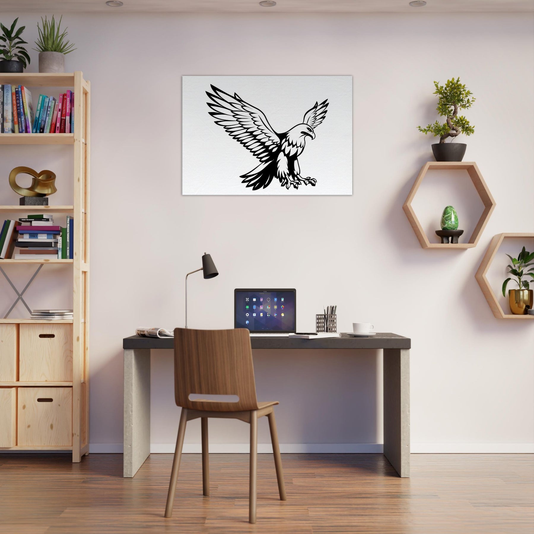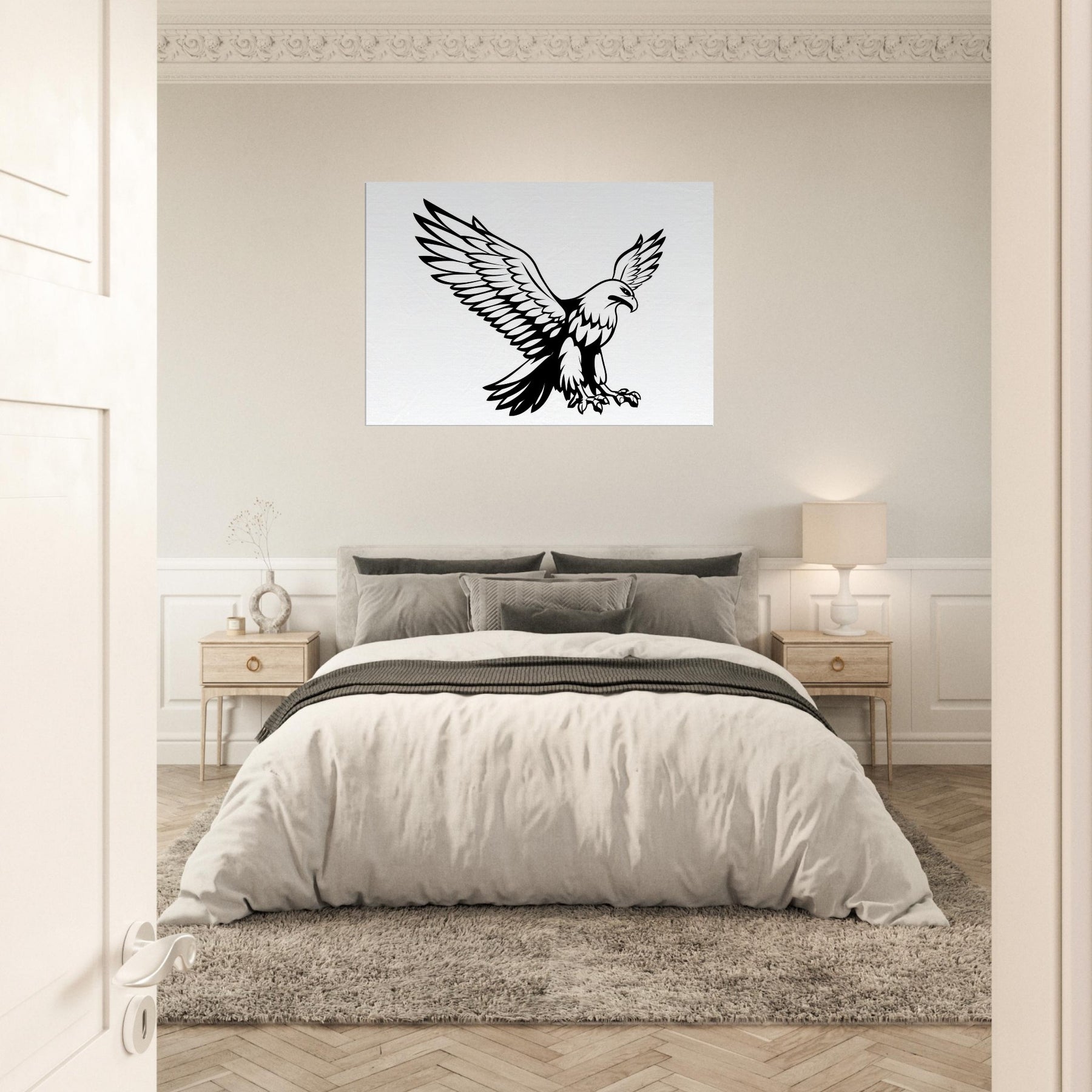 An airy statement in black and white, this minimalist Eagle captures the moment before lift off with clean lines and balanced negative space. The poised silhouette suggests power without strain, making it a calm, focal point in a living room or study. Hang it where morning light caresses the wall and the room feels more open the eagle's wings become a whisper of motion and grace, elevating texture, mood, and a refined sense of nature in contemporary interiors.