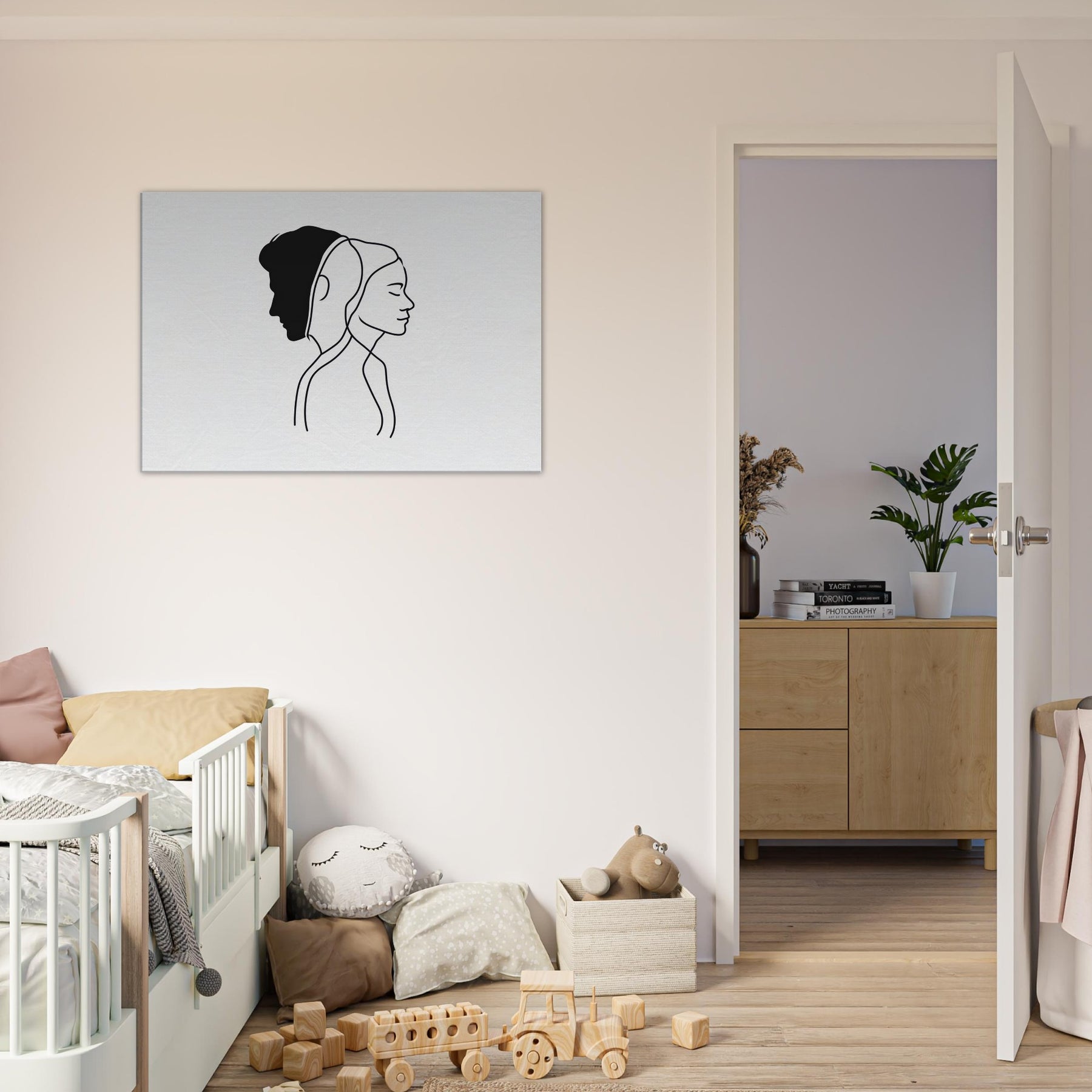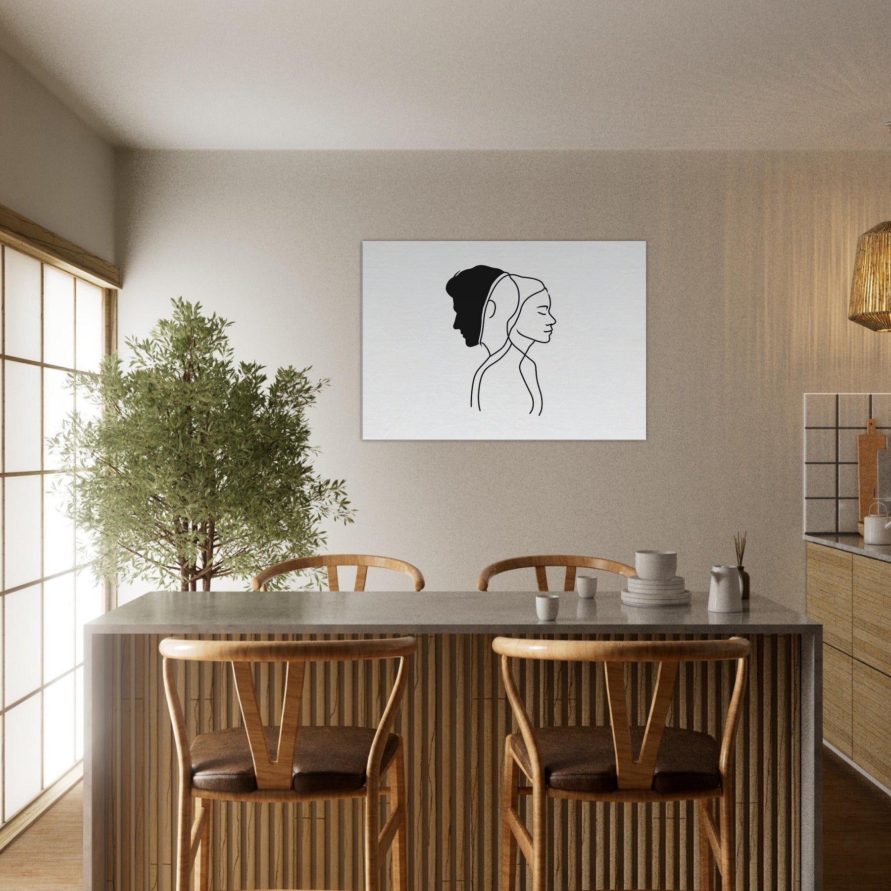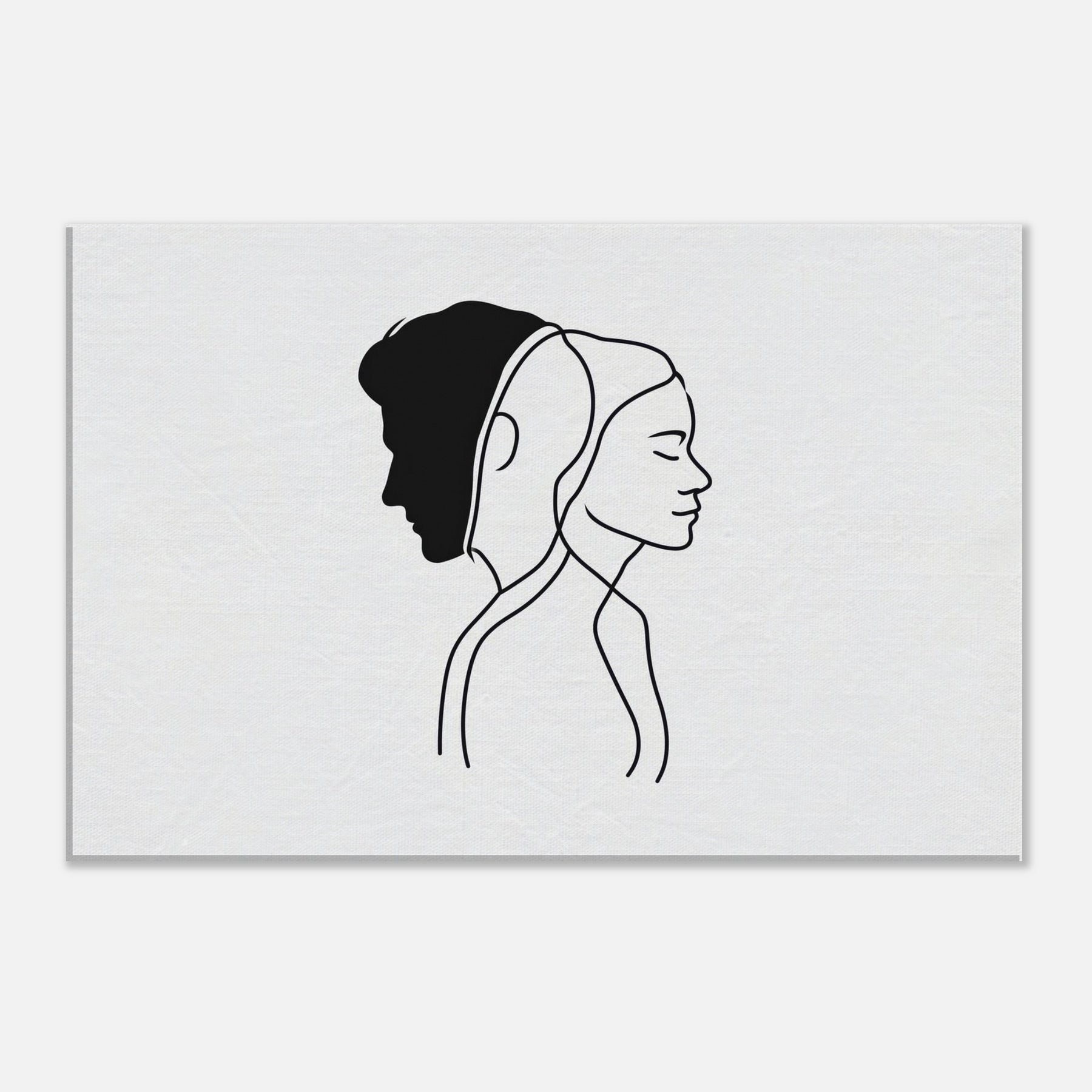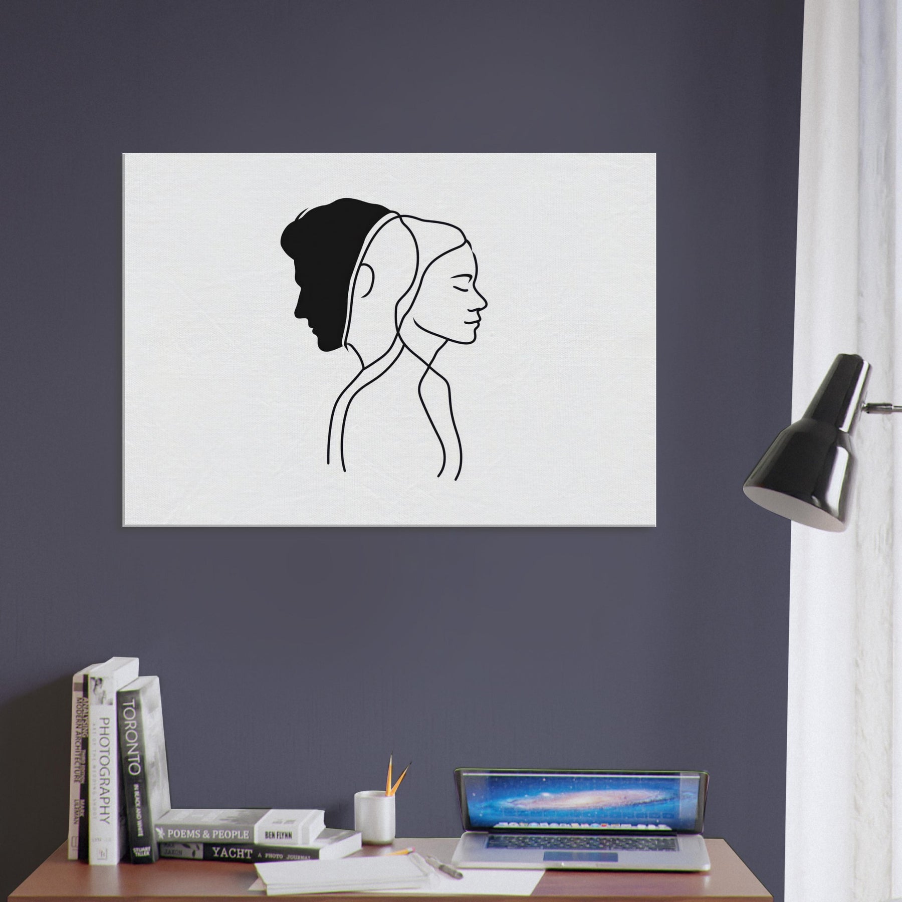 A delicate, continuous line forms a Couple Silhouette, two profiles fused in a shared breath and quiet balance. This intimate image invites calm into your space, where light and shadow meet in elegant simplicity. Hang it in a living room or bedroom to soften edges, spark conversation, and frame daily rituals in a gentle, contemplative mood. The restrained contrast and fluid contours make it a versatile focal point that pairs with neutrals or bold accents alike.