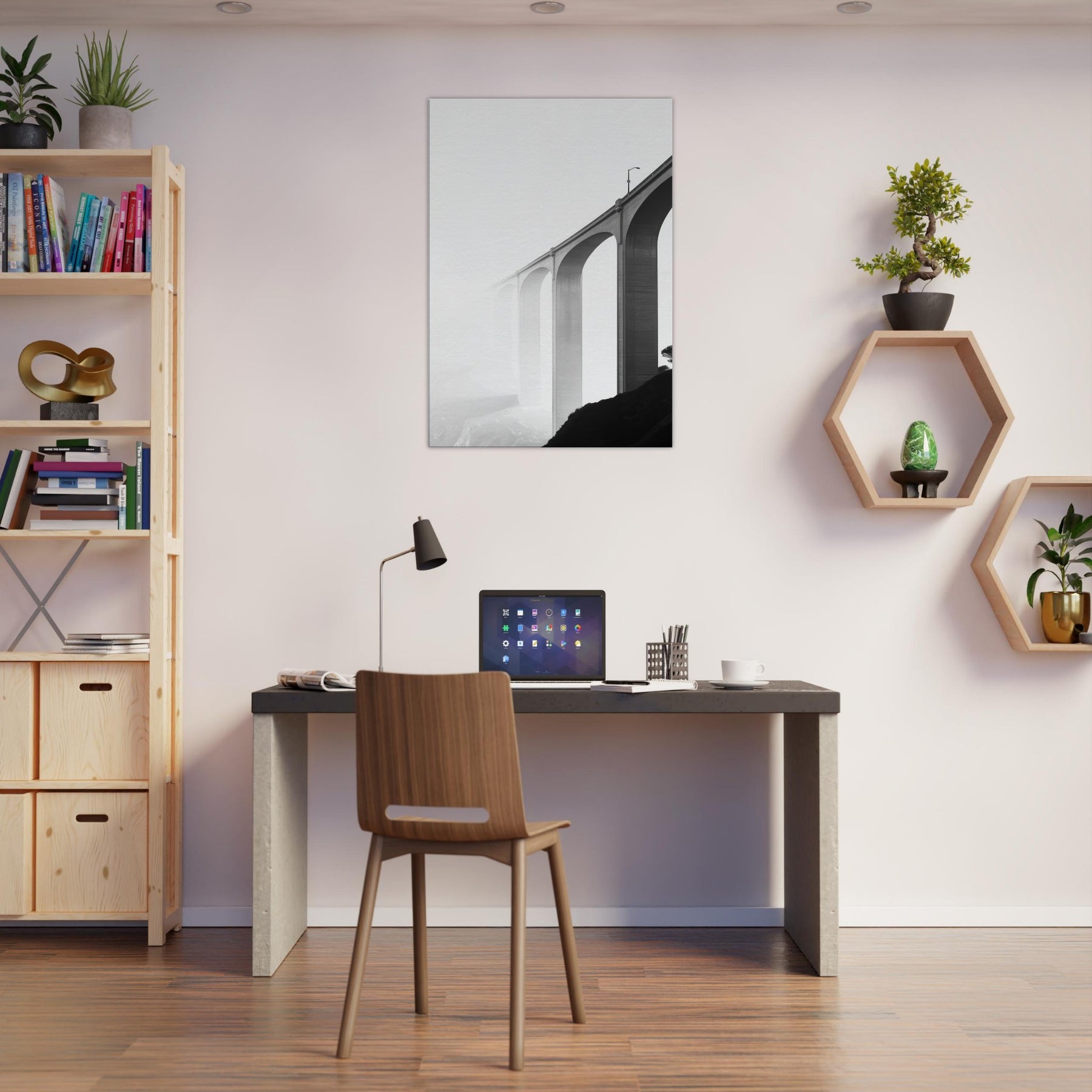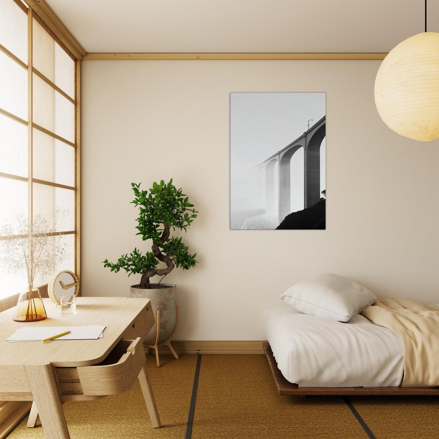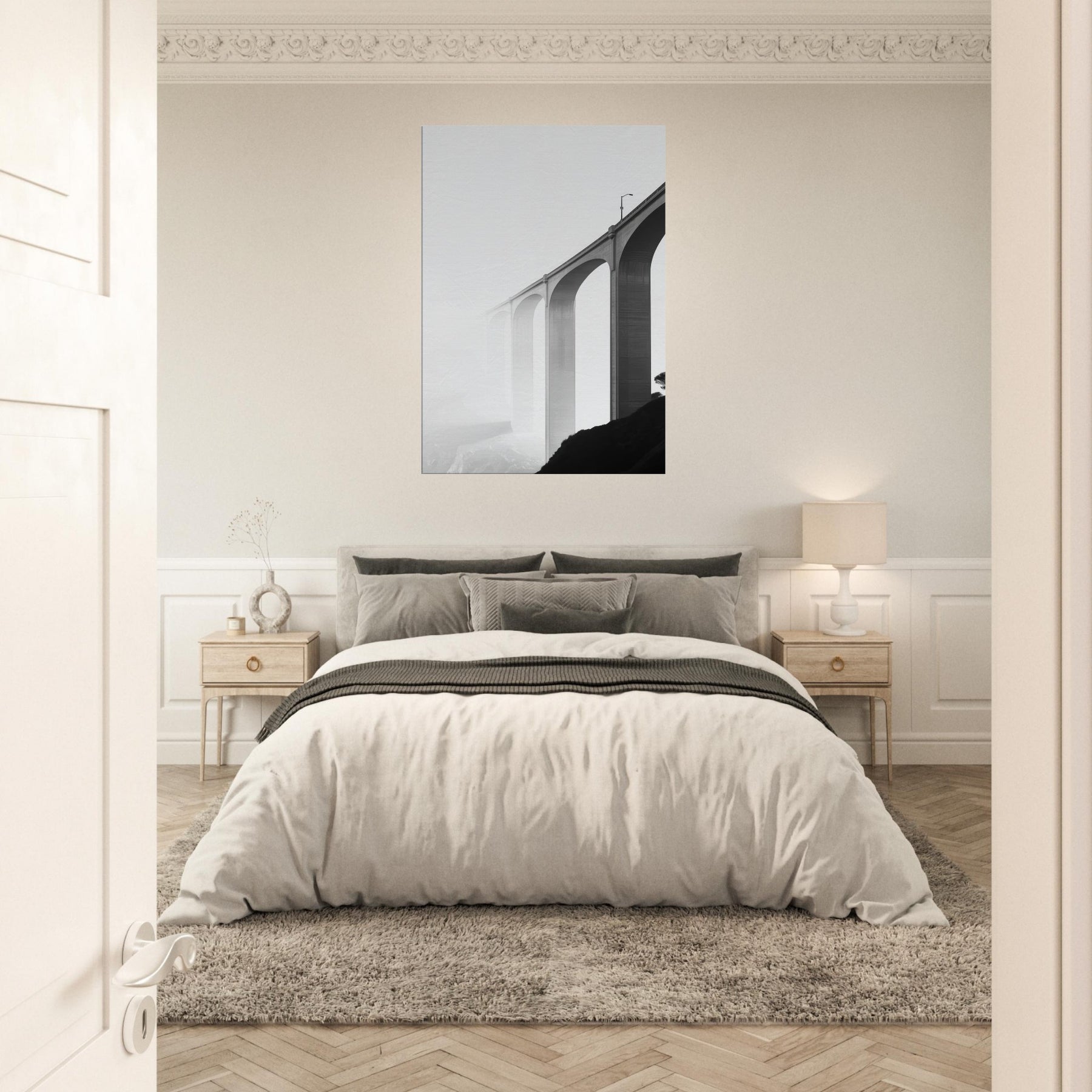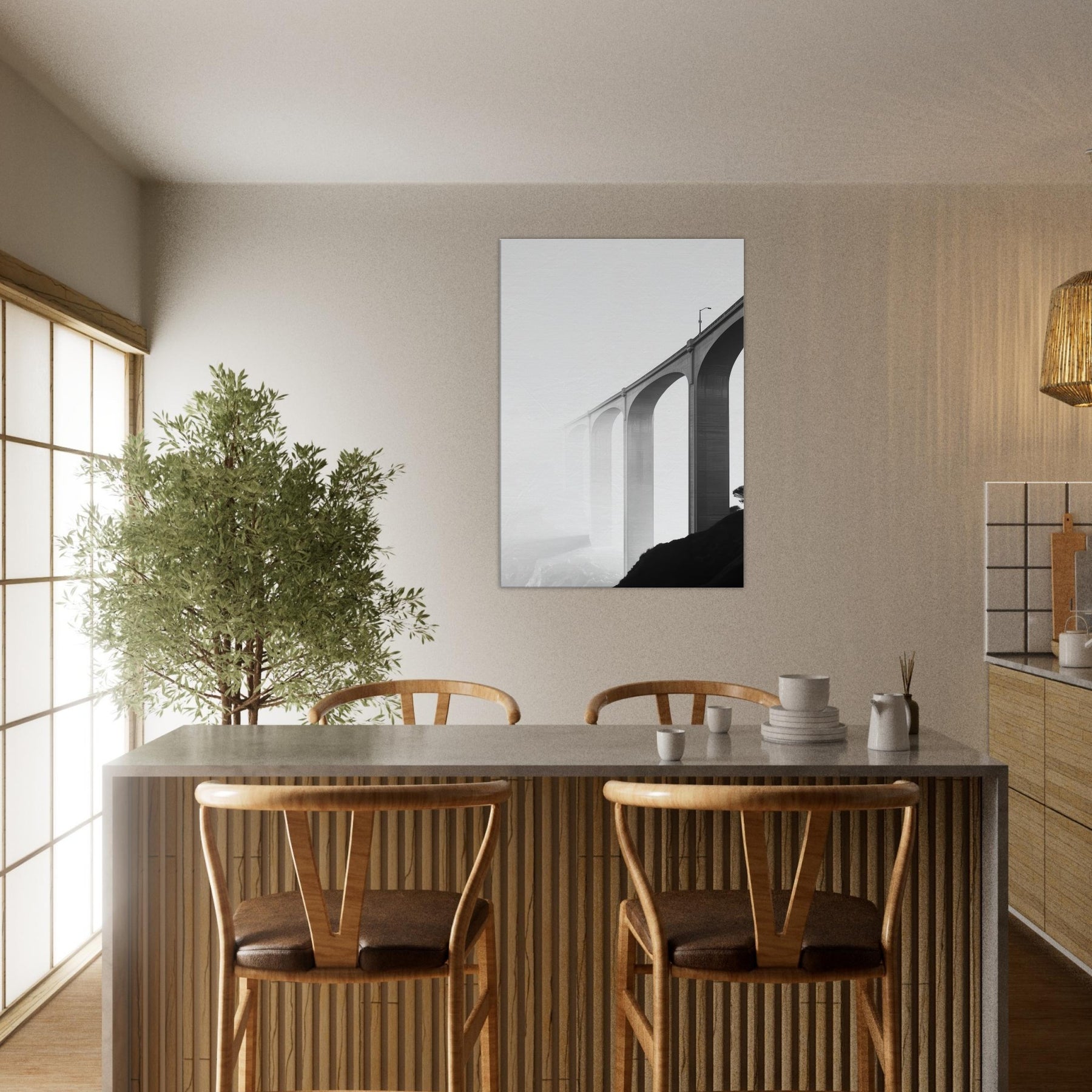 With a hush of fog and the clean line of Arched Stone Bridge rendered in elegant line work, this piece invites stillness into your space. The breath of distant light travels along the arches, framing your room with quiet grandeur and architectural poetry. Perfect for a living area or study, it pairs minimalist lines with atmospheric depth, encouraging slow contemplation and serene conversation. Let the Arched Stone Bridge breathe through your walls, elevating texture, contrast, and daily moments.