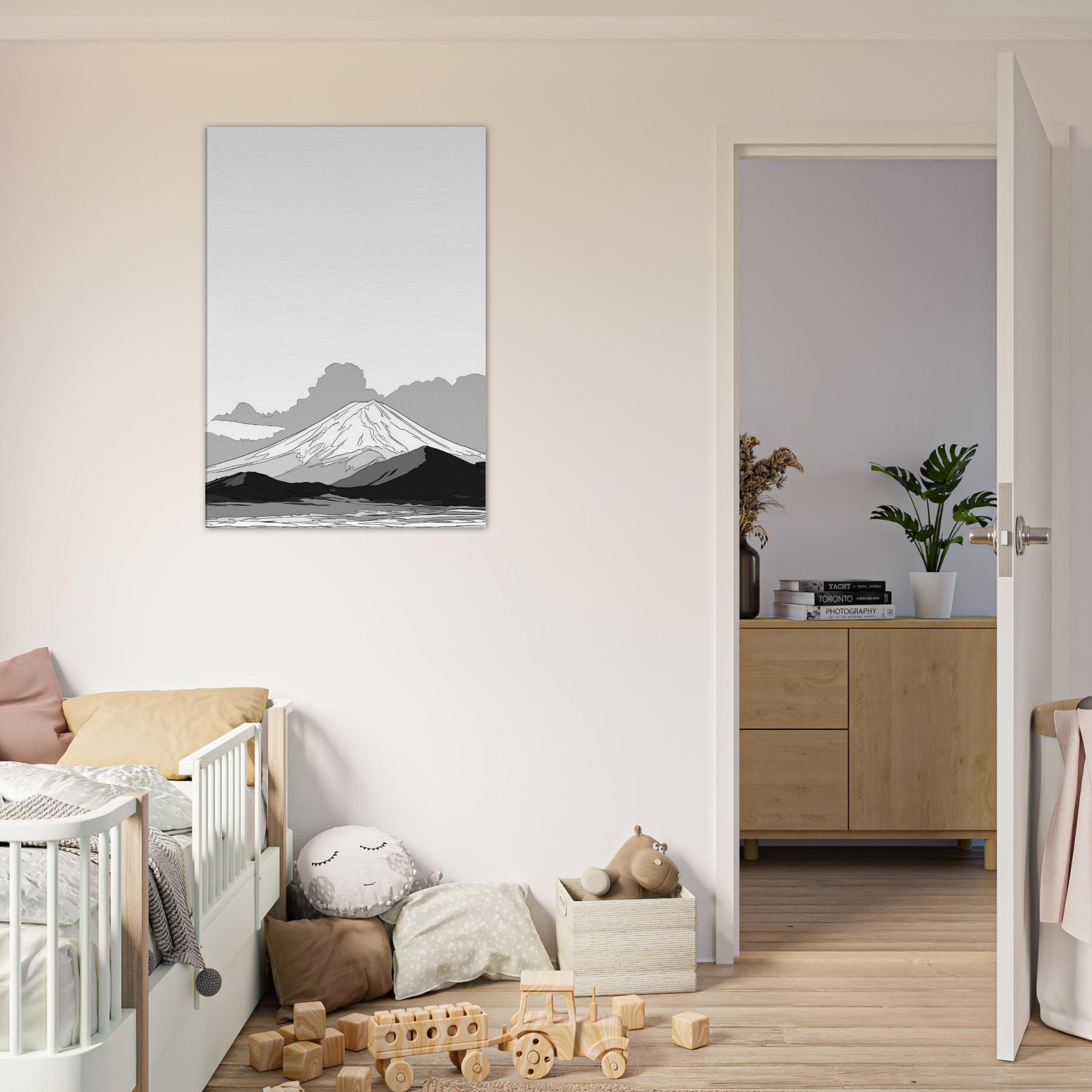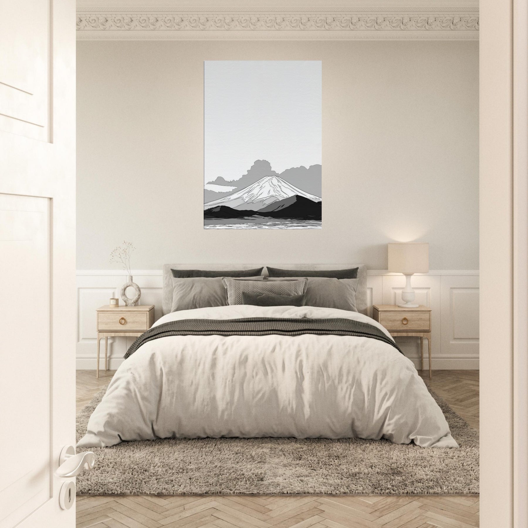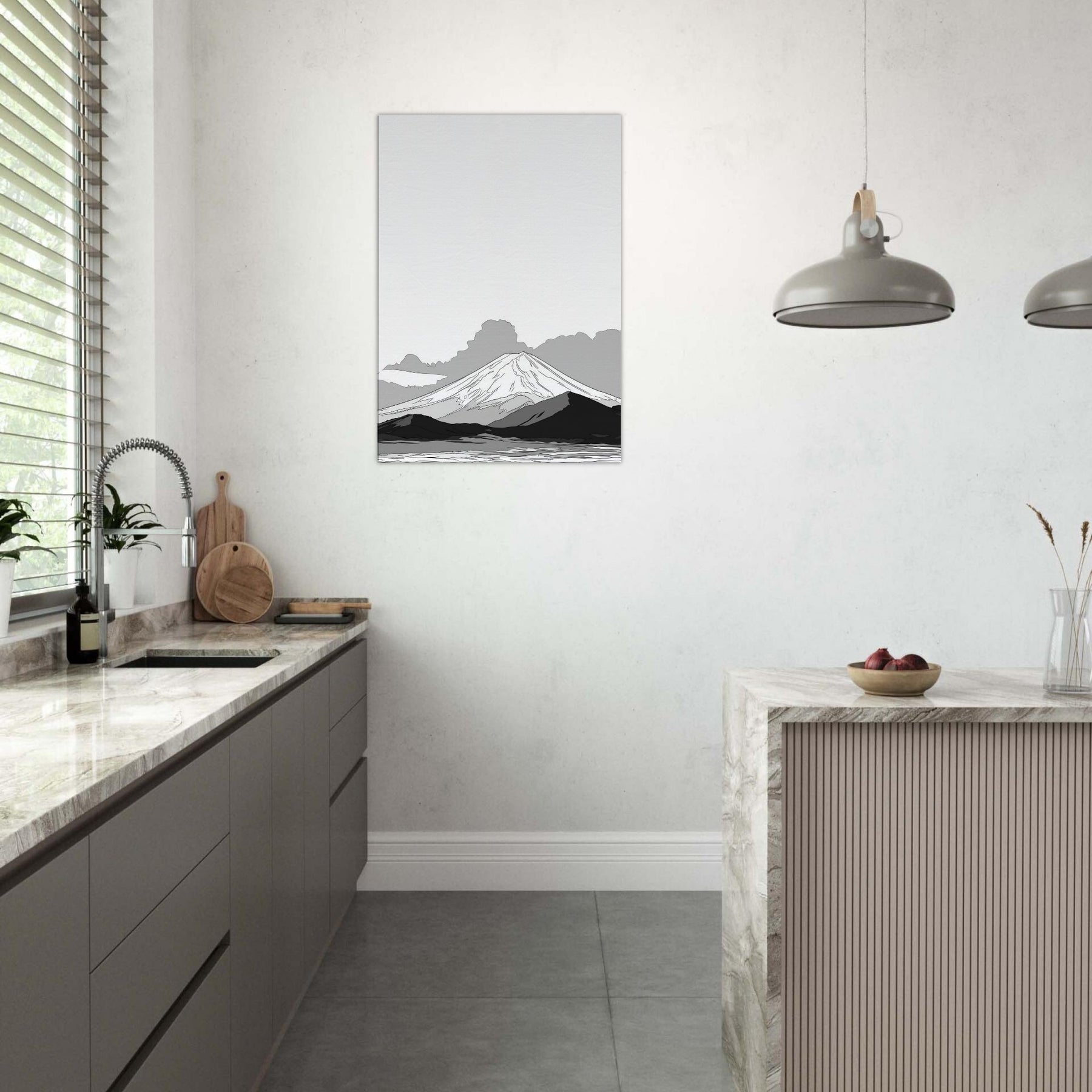 Let Mount Fuji unfold in quiet lines before your eyes, a restrained horizon that invites stillness into the room. This delicate line drawing evokes dawn mist and ancient silhouettes, where soft graphite echoes across a serene valley. The balance of negative space and subtle shading makes the space feel taller, lighter, more contemplative. Hang it in a living room or study to soften harsh corners, spark focus, and turn daily routines into a moment of calm reverie.