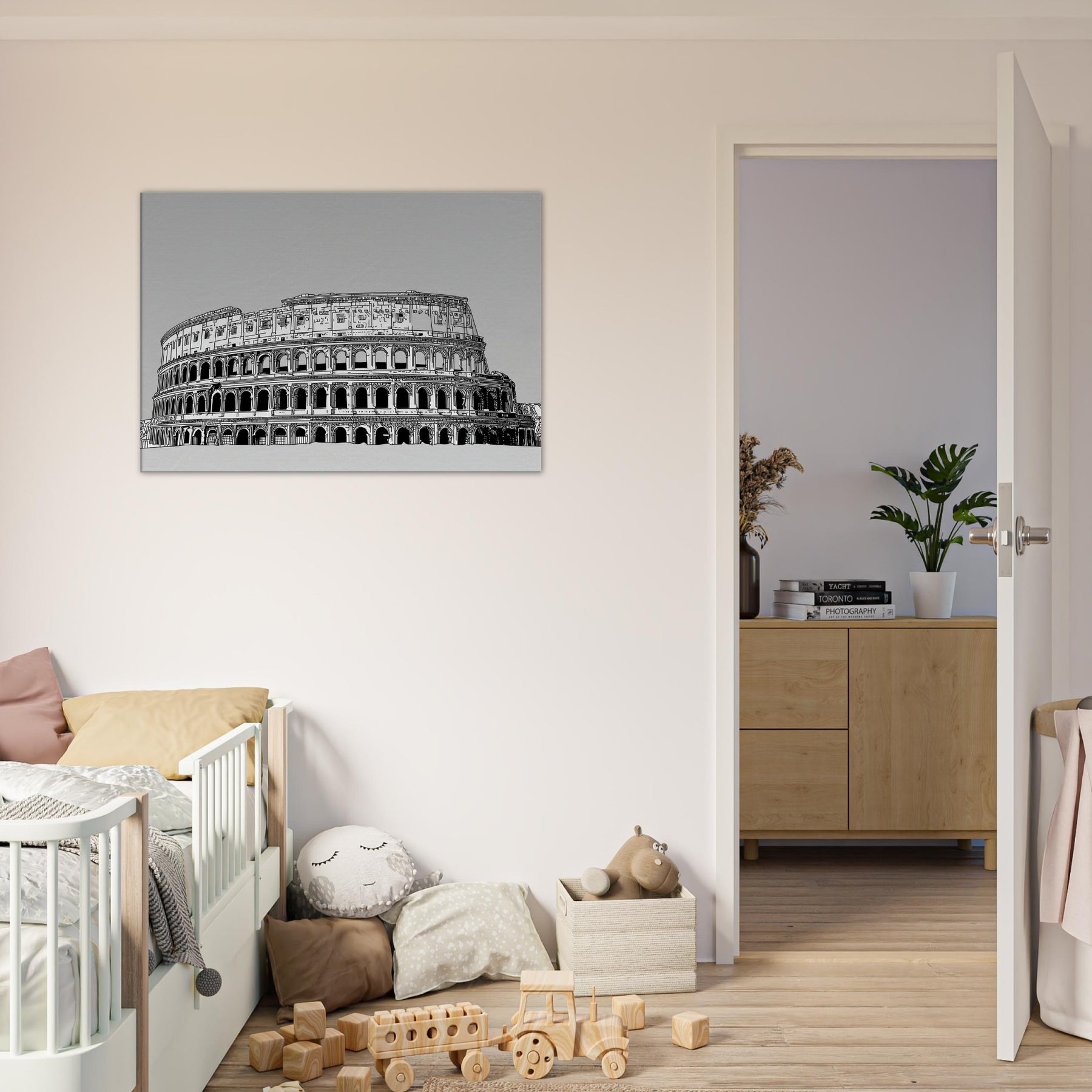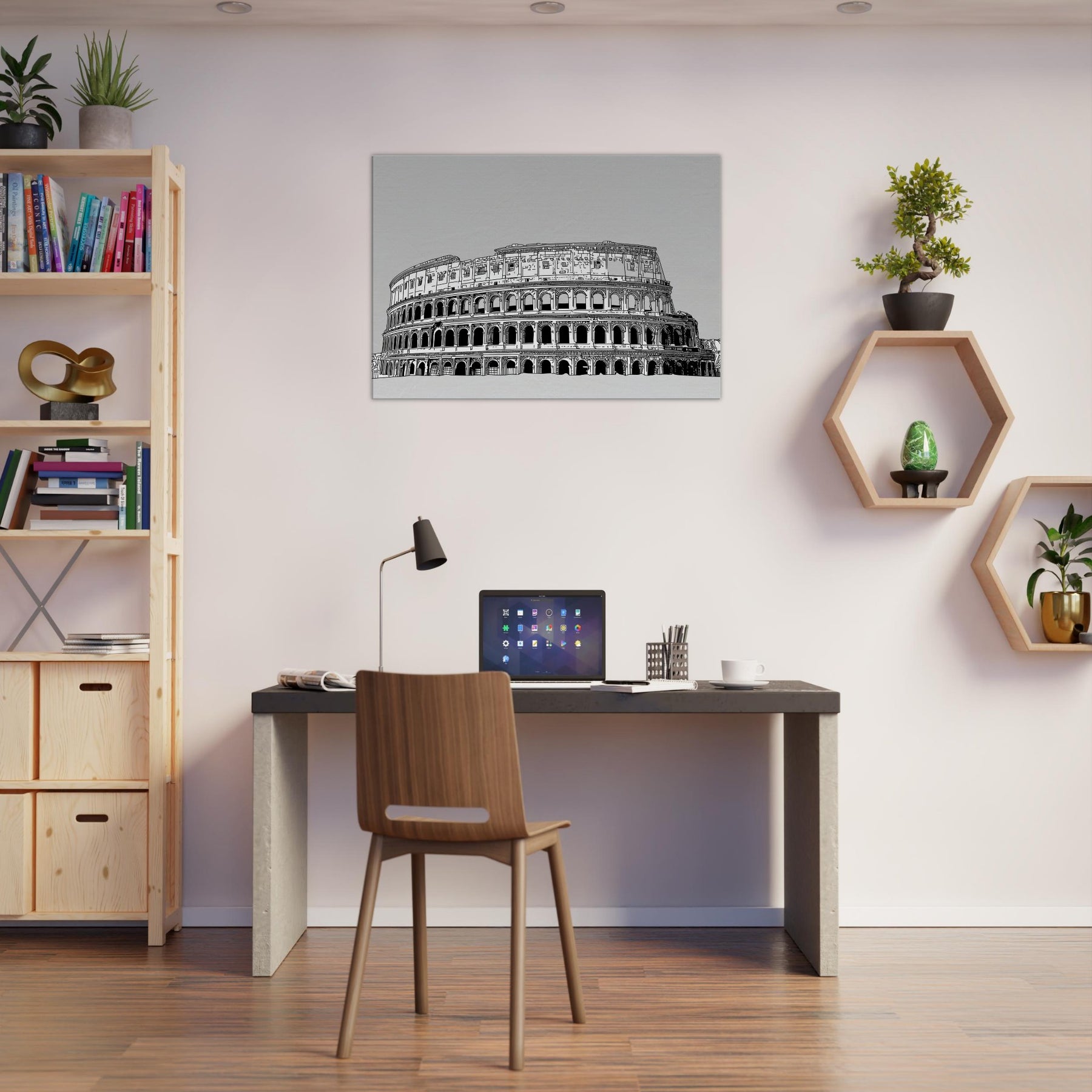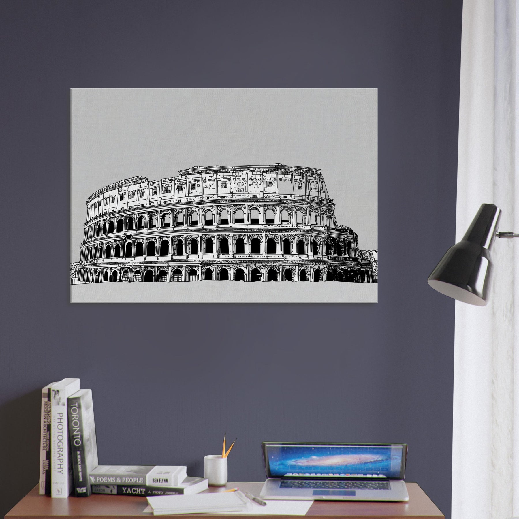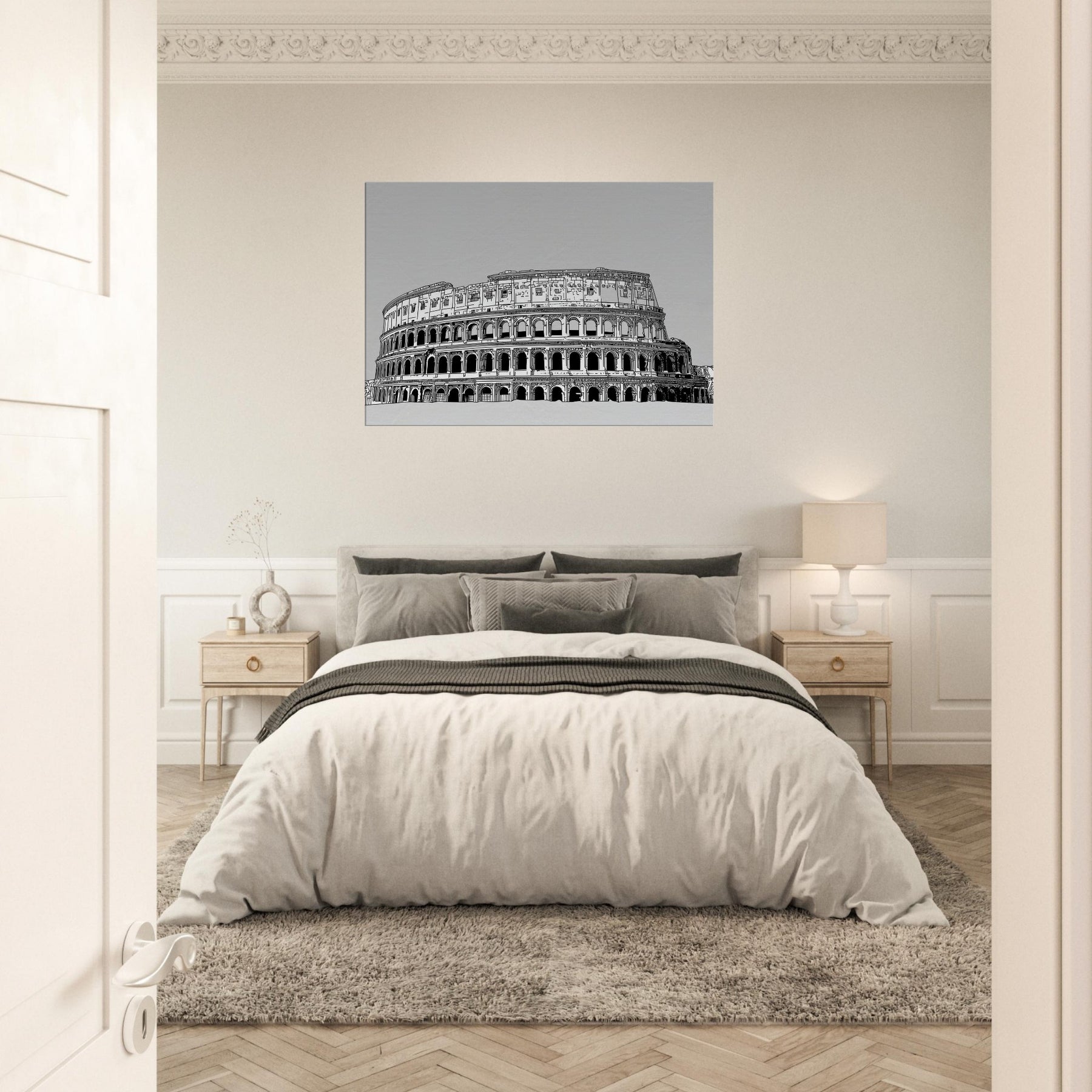 Feel the ancient hush of Rome as your walls echo with the Colosseum's timeless silhouette. This refined line art interpretation invites light to skim along its arches, casting soft shadows that shift with the day. In a quiet grayscale, it anchors a living space with architectural poetry, turning a plain corner into a contemplative gallery. Perfect for modern interiors, it pairs with wood, glass, and texture, offering a focal point that feels both intimate and expansive.