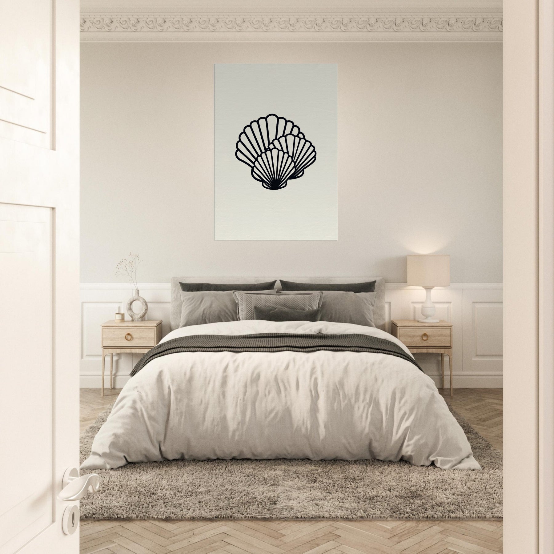 Seashells Trio unfurls in clean, continuous lines that feel like a quiet shoreline sketched in ink. This line art study breathes simplicity into any room, casting a soft, coastal mood without clutter. The trio of shells stacks and overlaps with rhythm, inviting the eye to linger on every curve and contour. Hung above a sofa or beside a lamp, it adds a subtle, meditative cadence a serene focal point that enhances living spaces with character, clarity, and a touch of sea wind calm.