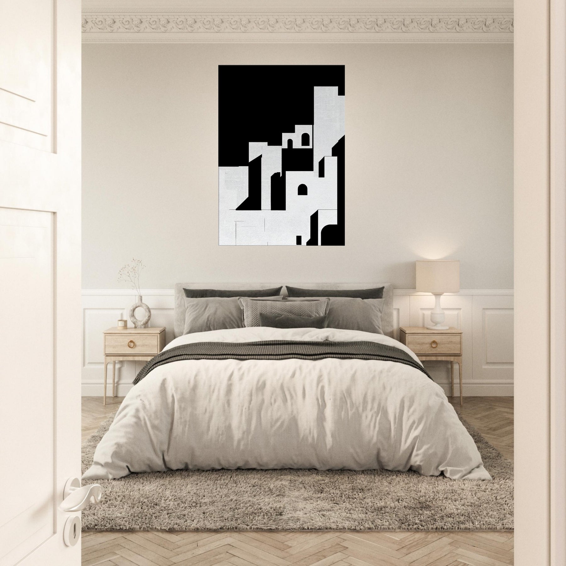 An elegant study in restraint, this line art rendering of a Medieval Castle unfolds in crisp black against a quiet white field. The clean arches and geometric towers invite the eye to wander, evoking centuries of stone and wind without shouting. Framed in a monochrome palette, it brings a sense of calm and architectural clarity to any living space studio, hallway, or study creating a quiet focal point that pairs with minimalist furnishings or a boldly colored backdrop. A timeless addition to your home.