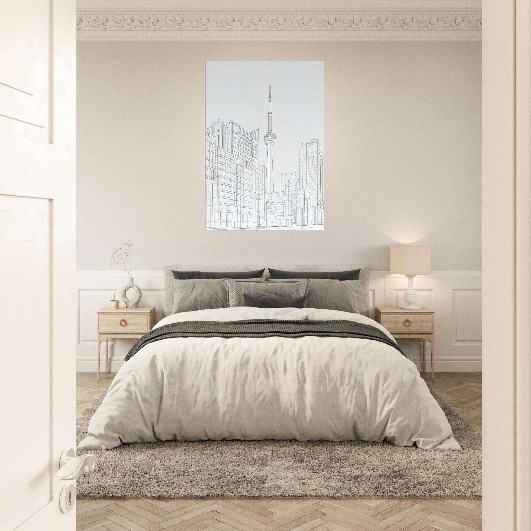A refined line drawing that captures the rhythm of a vibrant city. Toronto rises in delicate contours, its towers and spires reduced to elegant lines that invite contemplation rather than crowd the room. This piece radiates quiet confidence, pairing the cool precision of architecture with a soft, living warmth. Hang it above a sofa or in a hallway to invite guests to trace the skyline with a thoughtful gaze, letting urban energy meet calm space, and elevating your interior with minimal, luminous clarity.
