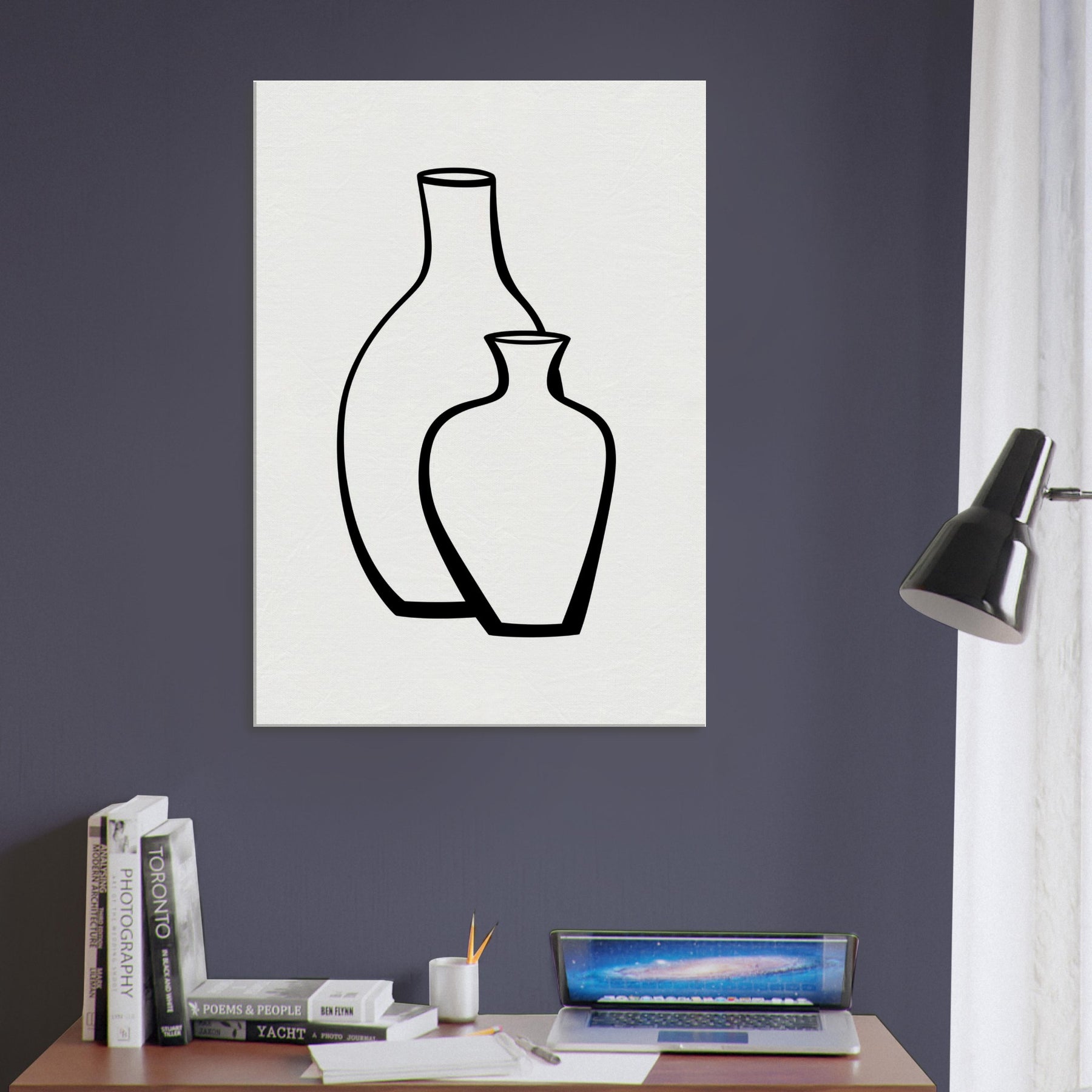 Vase Trio is drawn in confident, unbroken line the essence of restraint and grace. This line art centerpiece turns a quiet still life into an architectural moment, where negative space becomes part of the sculpture. The Primary Subject, Vase Trio, radiates calm on a pale wall, inviting soft light to play along its curves and edges. In a living room or study, its elegant simplicity mingles with natural textures, elevating the atmosphere to one of thoughtful poetry and timeless refinement.