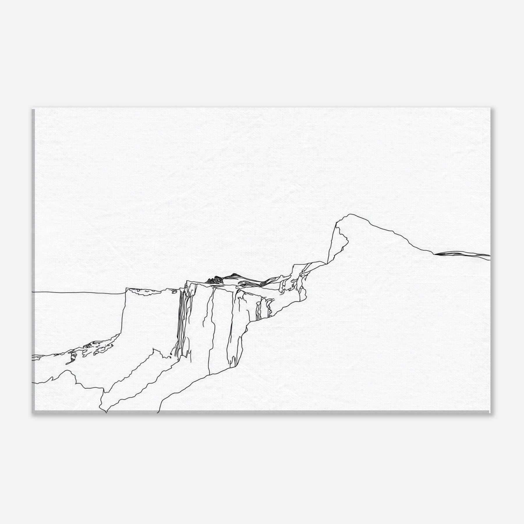 Cliffs rise with a quiet, unspoken command in a single, continuous line. This line art study distills jagged ledges and wind swept edges into a serene, architectural presence. The stark black on white invites reflection, letting space breathe around it while the subject Cliffs speaks of vast horizons and intimate textures. Perfect for a calm corner or gallery like wall, it enhances living rooms with a sense of elevation, clarity, and movement. A subtle centerpiece that pairs with natural woods and soft textiles to slow the day.