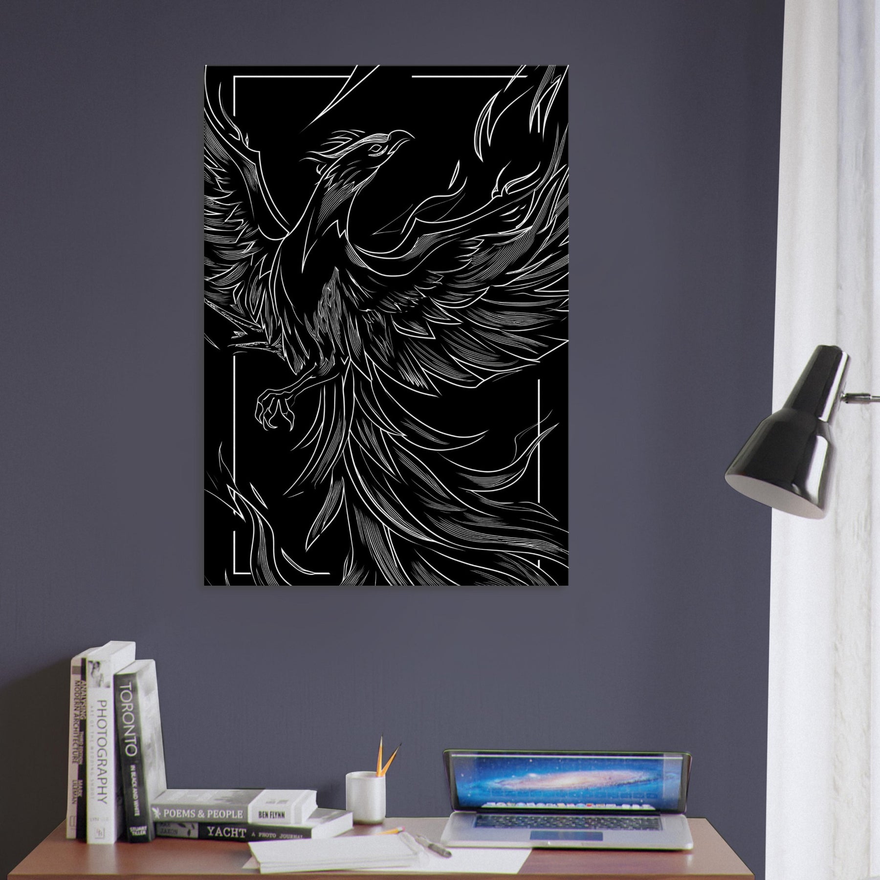 The Fiery Phoenix rises in stark, sweeping lines that feel alive with heat and wind. This line art captures motion without shading, letting negative space glow like embers in a midnight room. Place it where light traces the crest of its wings to awaken a warm, inviting atmosphere that sparks conversation. A luxurious monochrome centerpiece, it fuses mythic energy with contemporary minimalism, elevating any living space into a daily ritual of drama and grace.