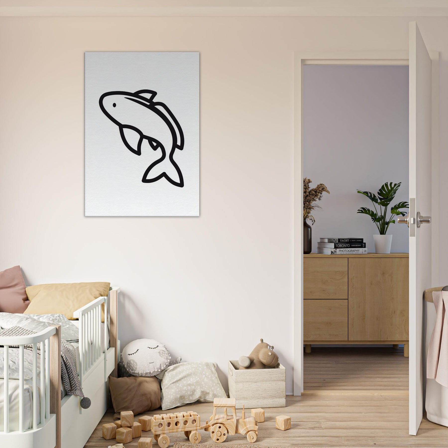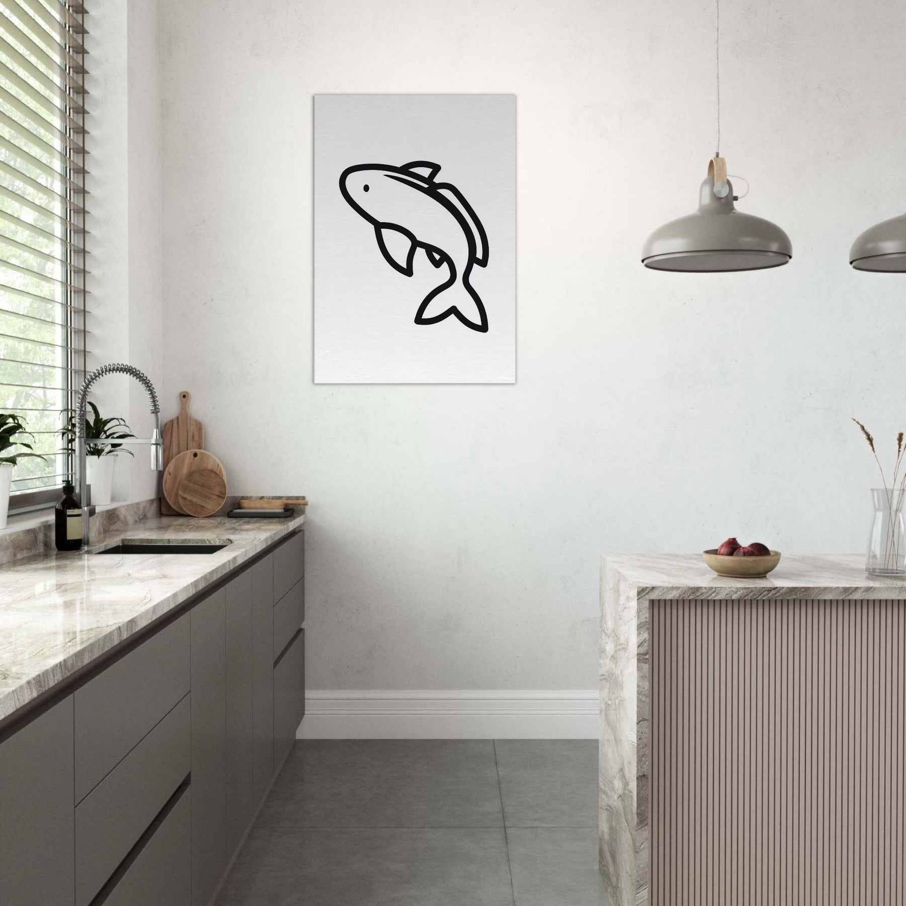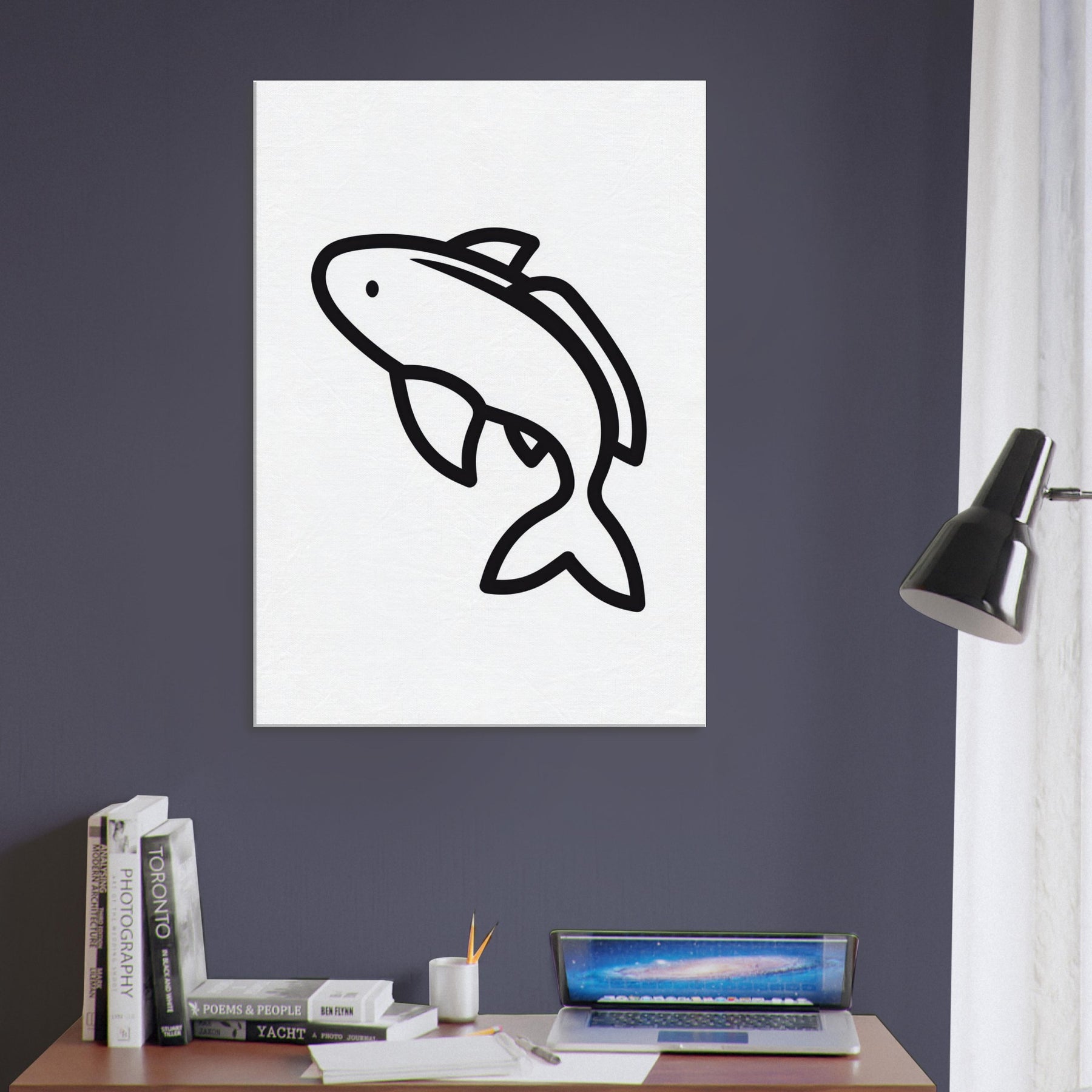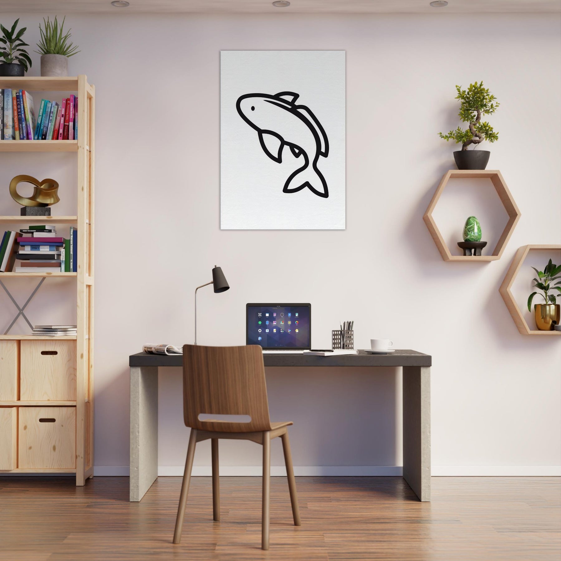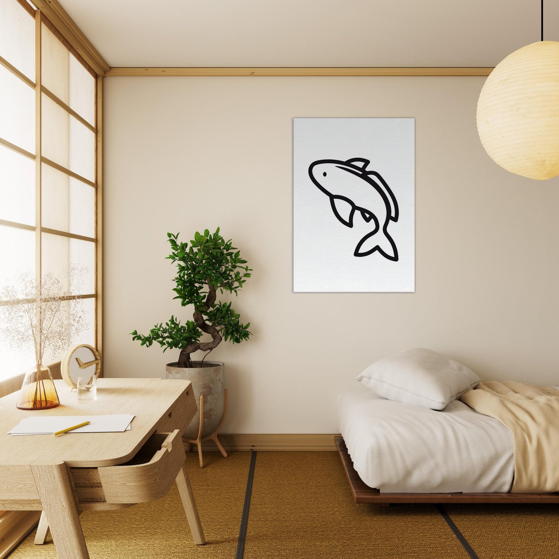 A single, confident line traces the arc of a Koi Fish as if sketched in a quiet moment of breath. This line art invites the eye to follow its graceful curves, turning any wall into a harbor of calm. The stark black on white creates a breathing space, echoing tranquil water and disciplined movement. Ideal for a serene living room, study, or hallway, it pairs with natural textures and soft lighting to elevate minimalism into poetry.