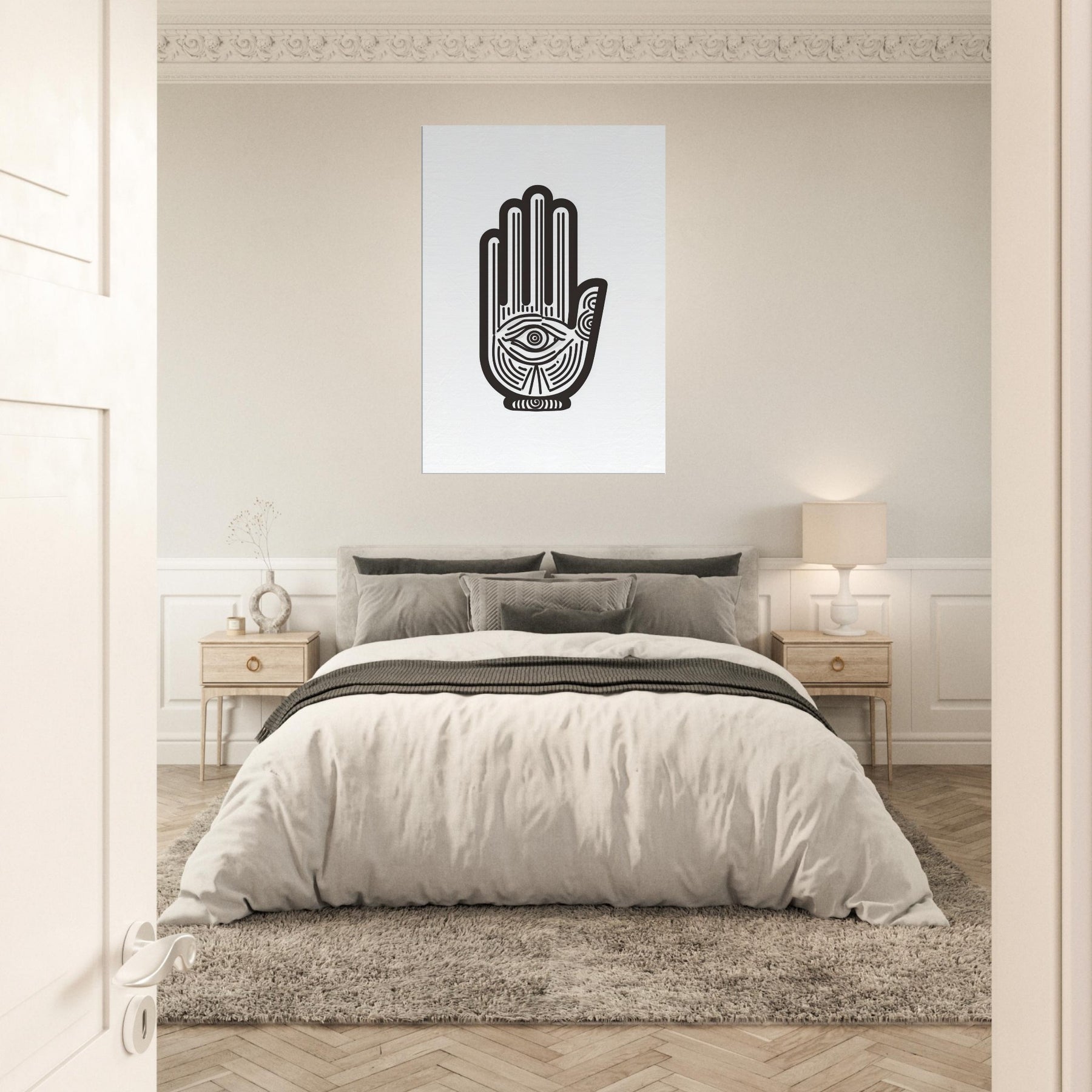 Foregrounded as the Primary Subject: Palmistry Hand, this line art study traces the curves of fate along a stylized palm, with an all seeing eye at its core and rhythmic, incised lines that glow in shadow and light. The piece breathes restraint and mystery, pairing perfectly with modern interiors that crave subtle drama. Hang it in a living room or study to spark curiosity, invite conversation, and soften hard edges with a touch of mystic calm.