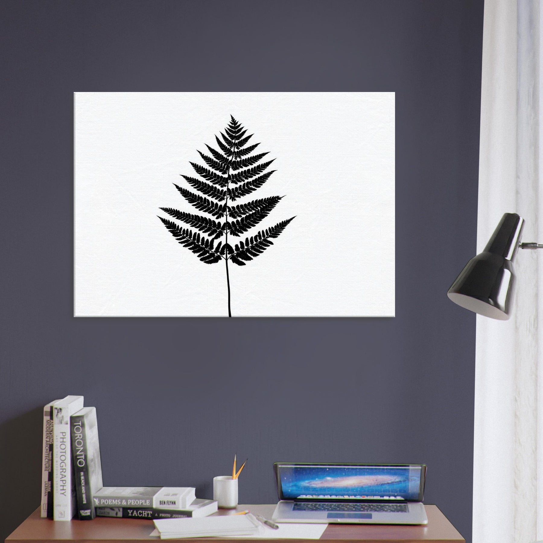 Fern unfurls in elegant black silhouette against a quiet white field. This Fern is not a botanical study but a whisper of nature, capturing movement in a single, continuous stroke. The result is a serene focal point that breathes calm into a living space, inviting soft light to play along its slender silhouette. Perfect above a sofa or by a bedside, it lends modern sophistication and a timeless sense of organic refinement.