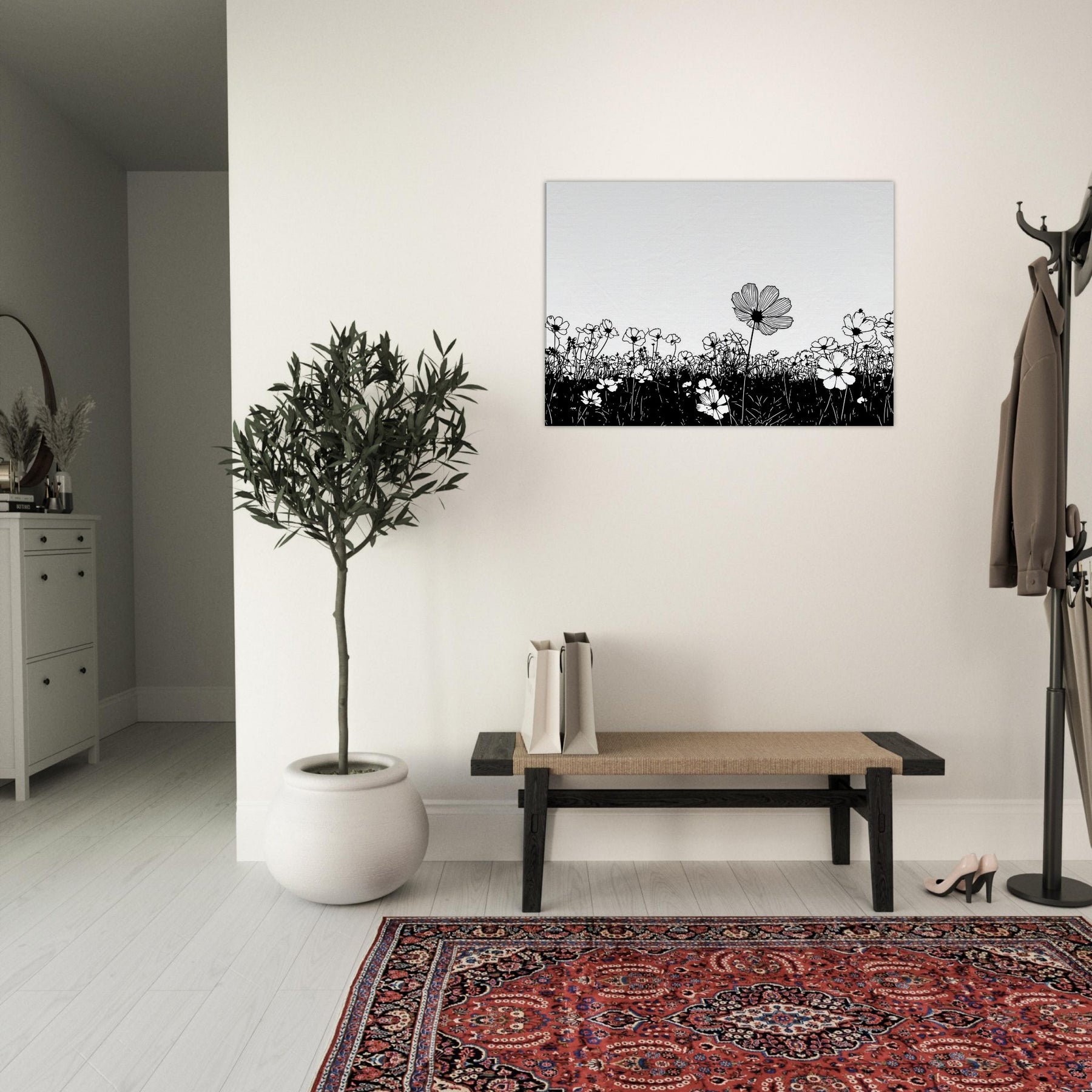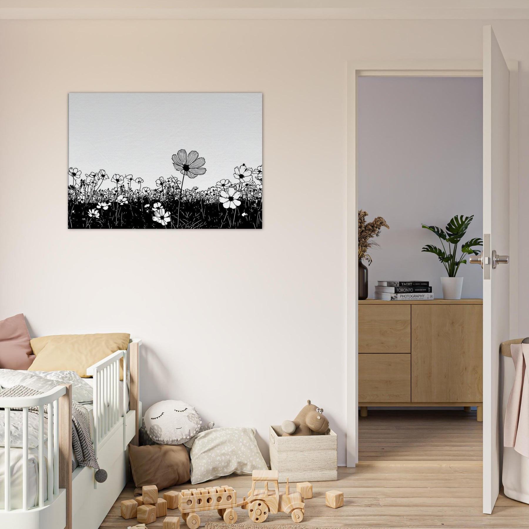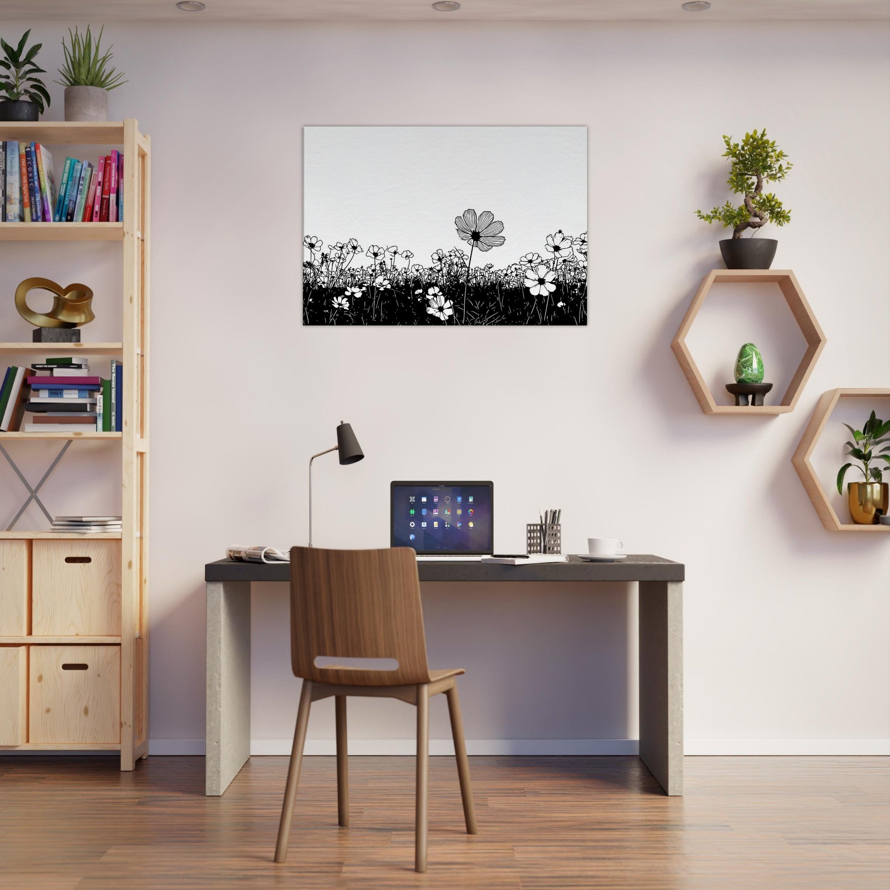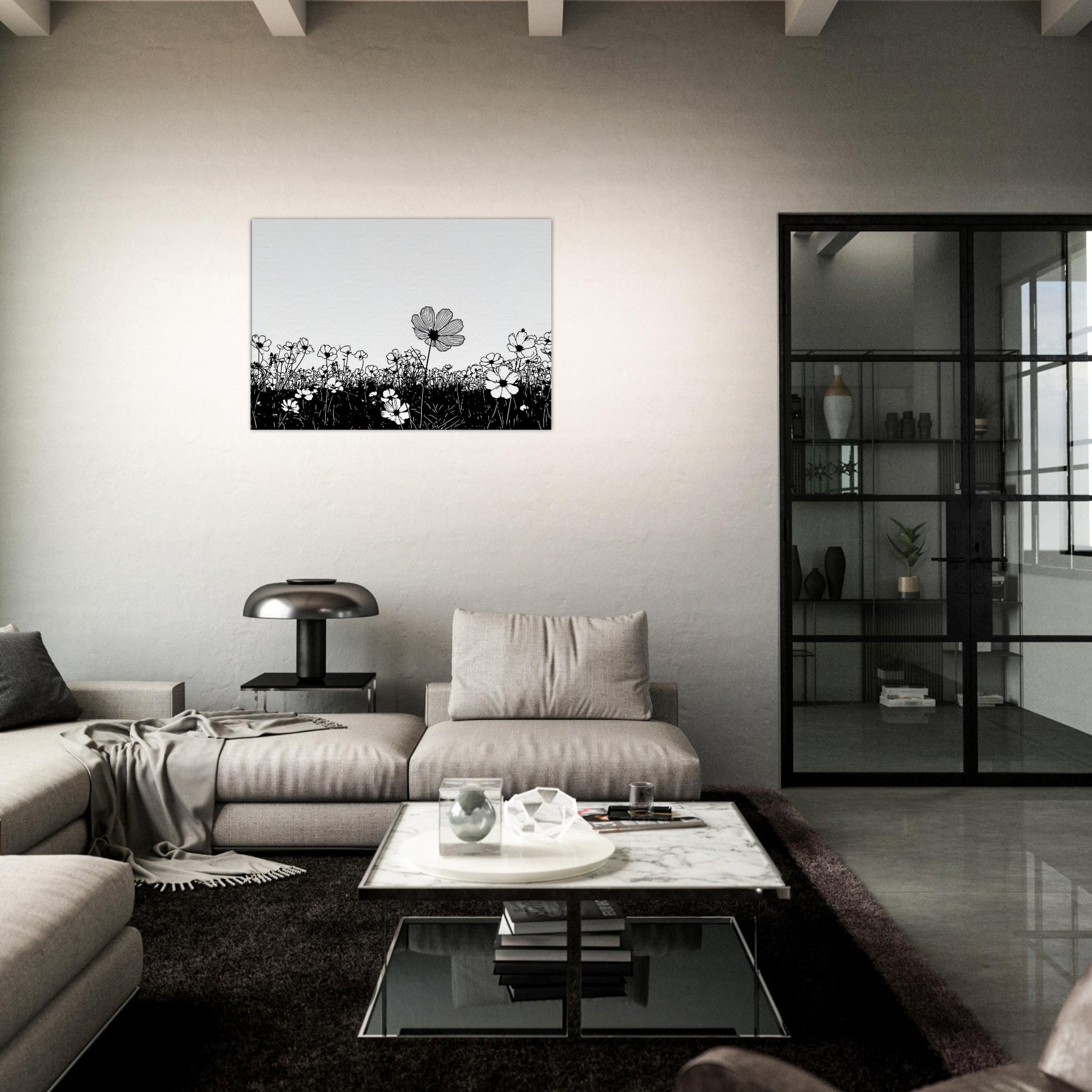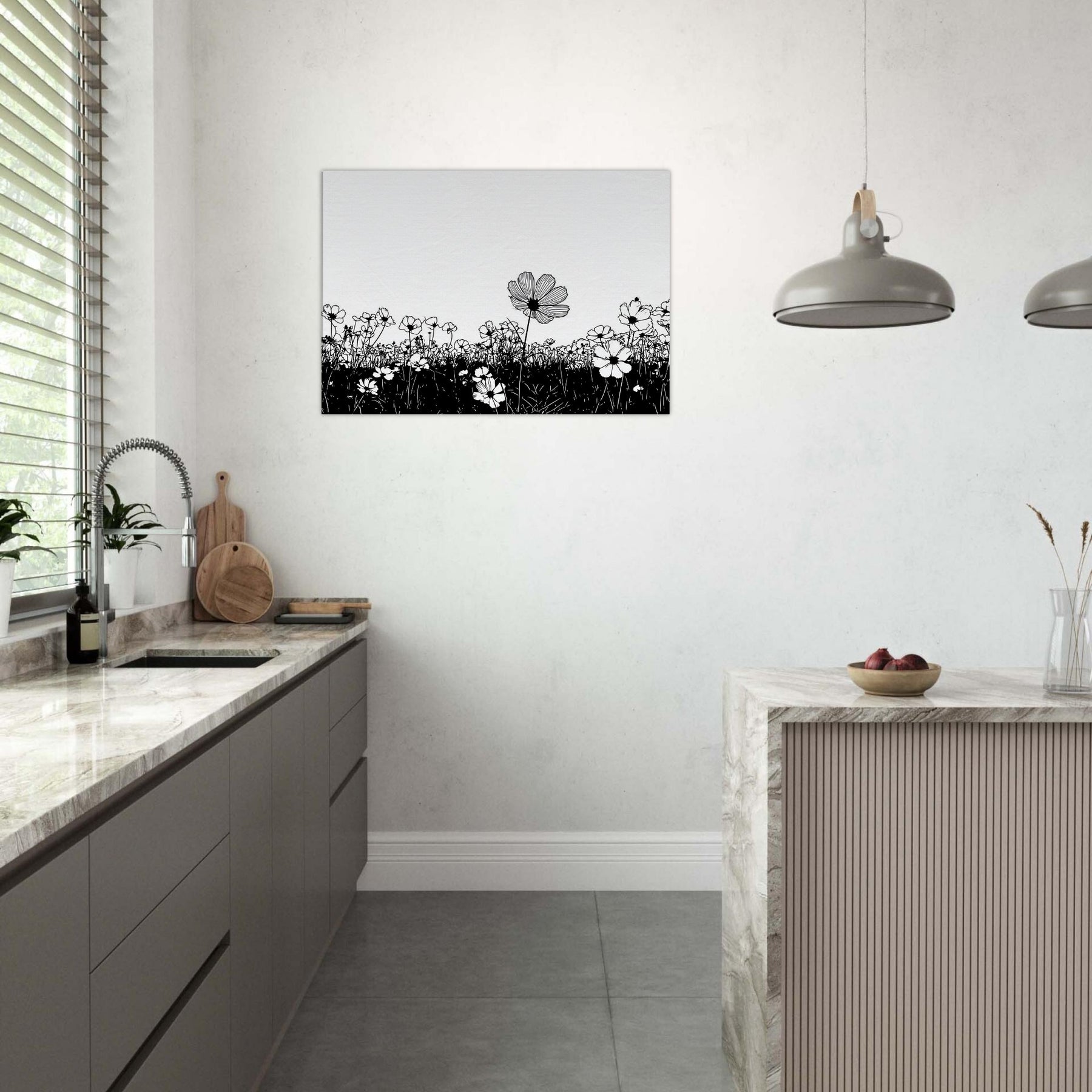 Like a breath drawn across a quiet horizon, this Flower Field in line art captures nature with delicate grace. The slender black outlines rise from a ink dark meadow, surrendering to unspoken light that fills the page. It elevates a room with calm, contemporary rhythm, inviting contemplation and everyday wonder. Perfect above a sofa or in a quiet corner, it pairs minimal contrast with generous air, turning walls into a serene field where memory and garden breeze mingle.