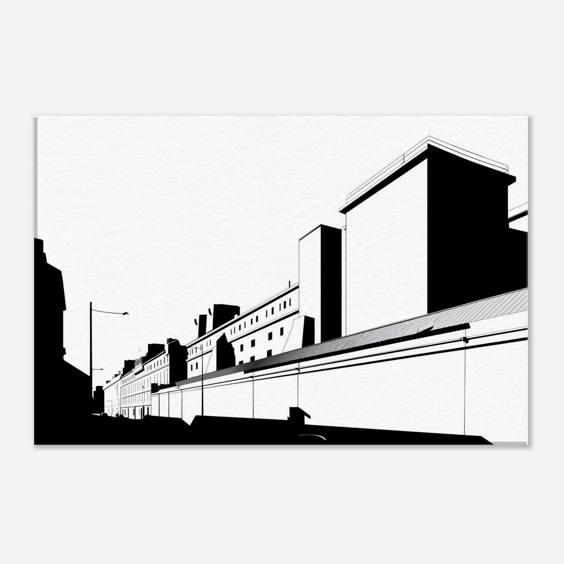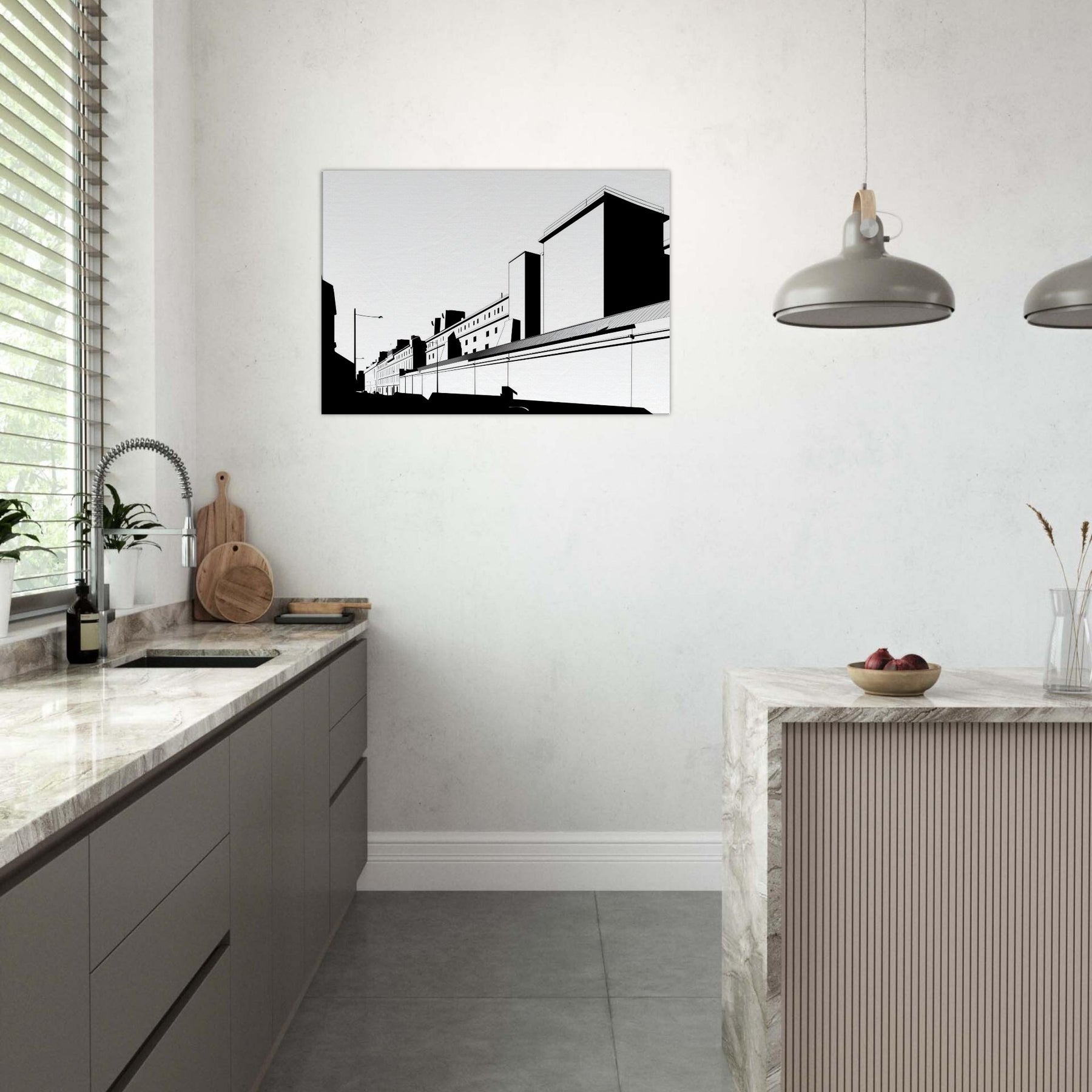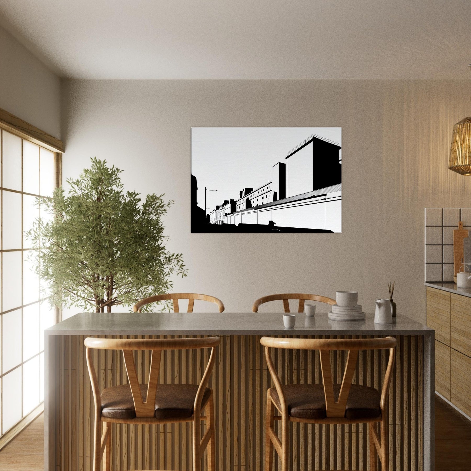 Fortress rises in clean, continuous lines, a cityscape distilled to essential form. This line art tableau invites quiet contemplation, where every edge and shadow carries the weight of ancient walls and modern streets. The Fortress anchors a room with a graphic calm the stark black outlines against pristine white space evoke dusk in a timeless square. Hang it in a living room or study to add architectural grace, urban poise, and a narrative of strength.