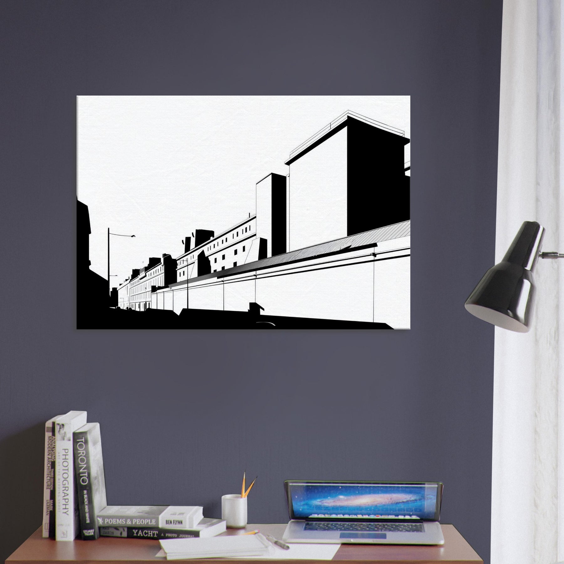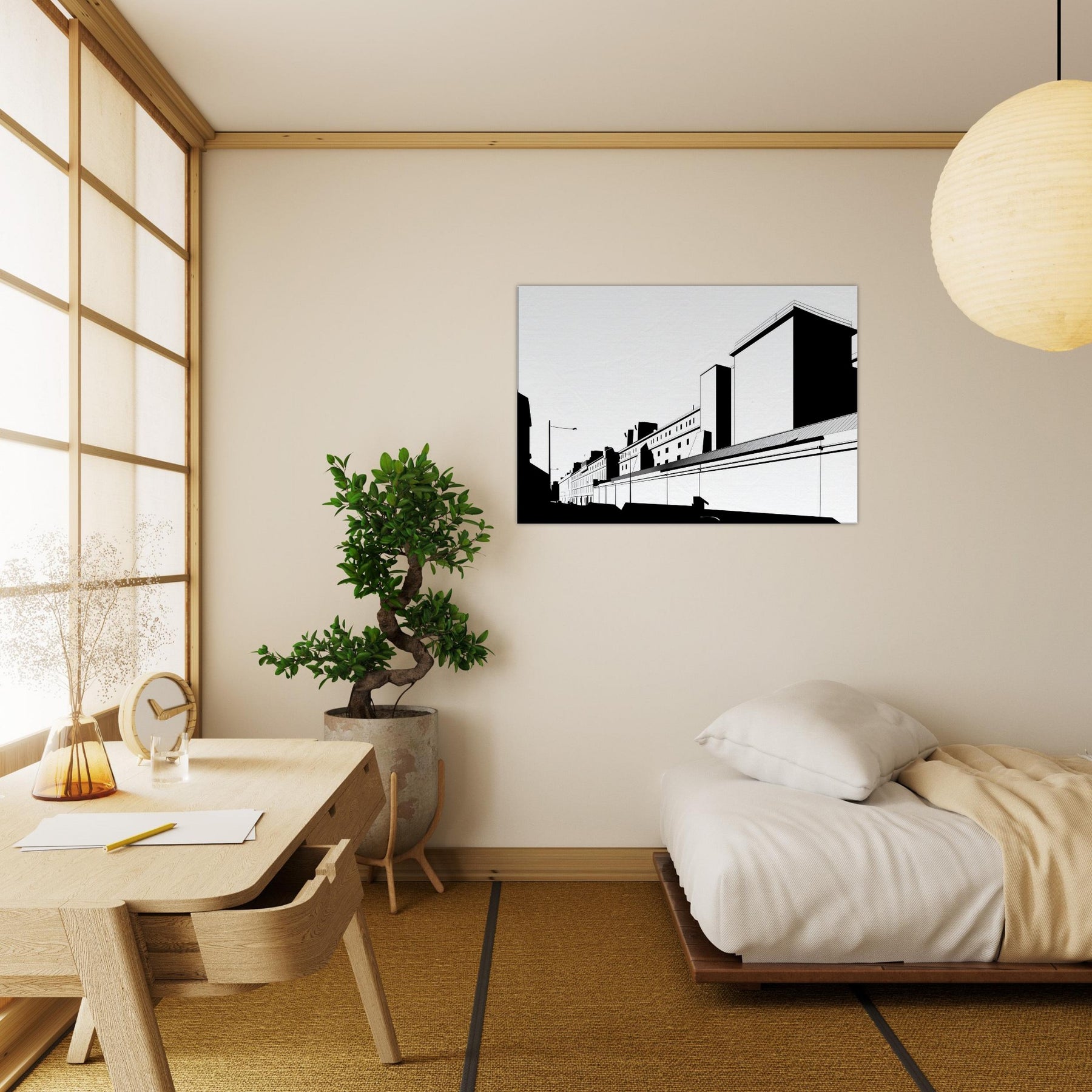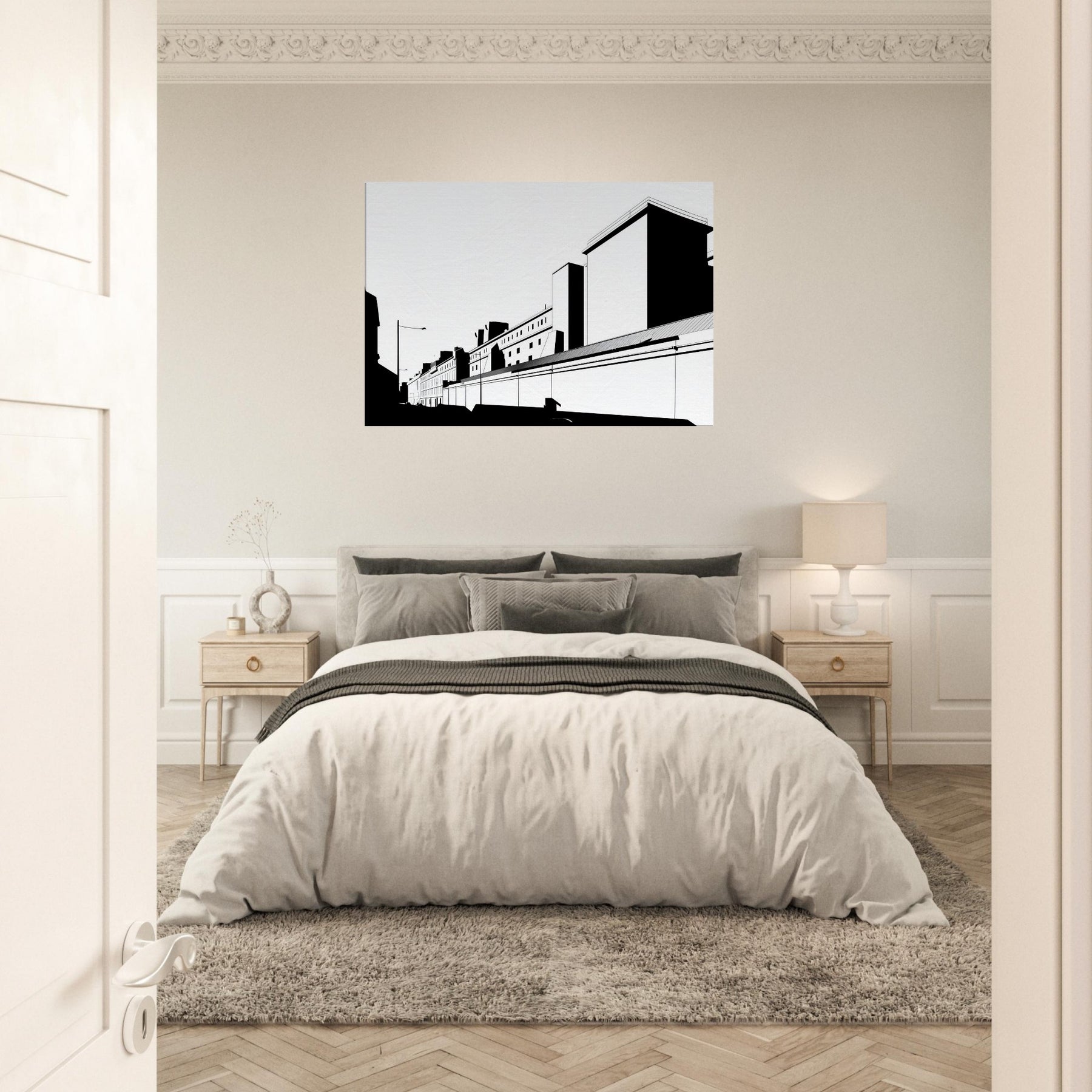 Fortress rises in clean, continuous lines, a cityscape distilled to essential form. This line art tableau invites quiet contemplation, where every edge and shadow carries the weight of ancient walls and modern streets. The Fortress anchors a room with a graphic calm the stark black outlines against pristine white space evoke dusk in a timeless square. Hang it in a living room or study to add architectural grace, urban poise, and a narrative of strength.
