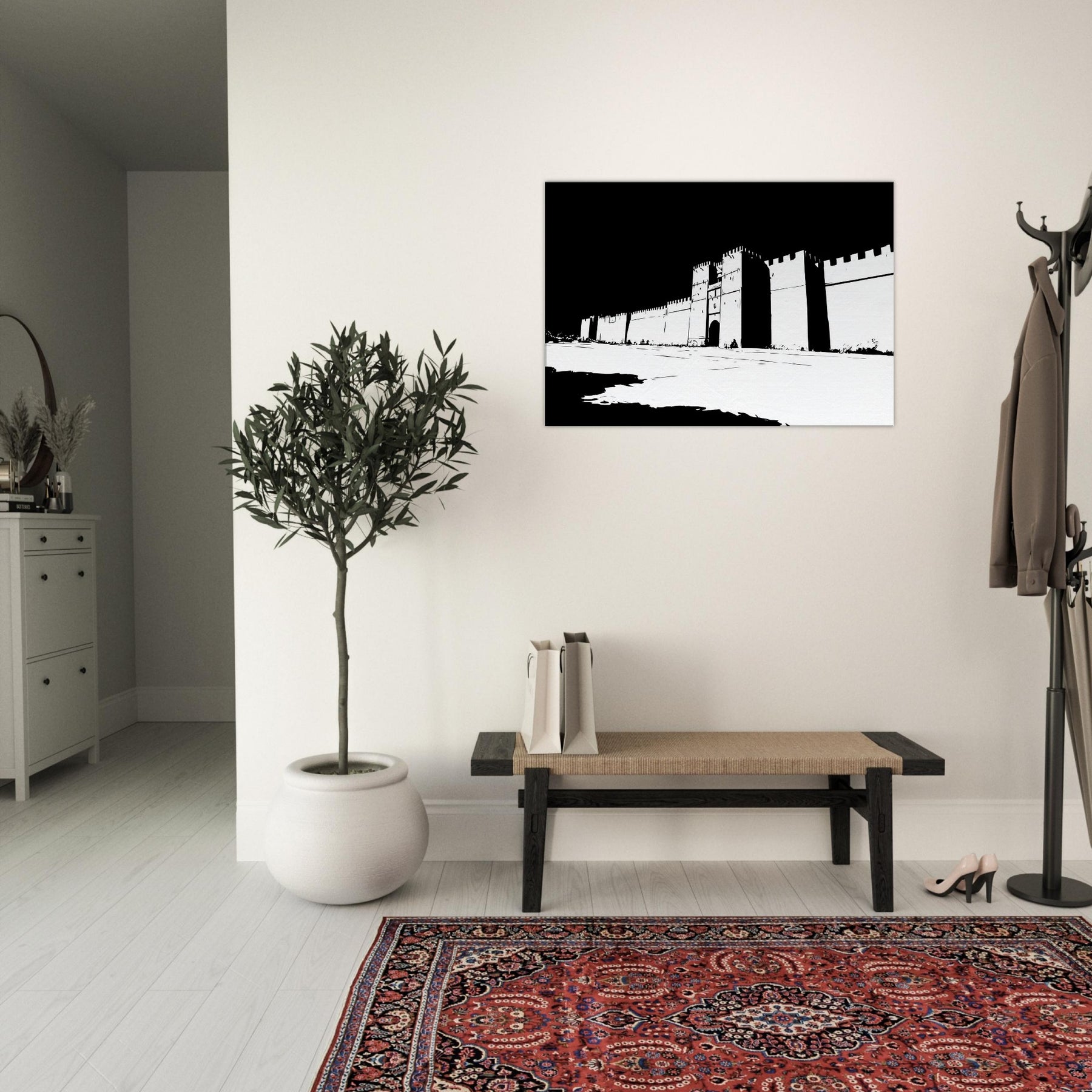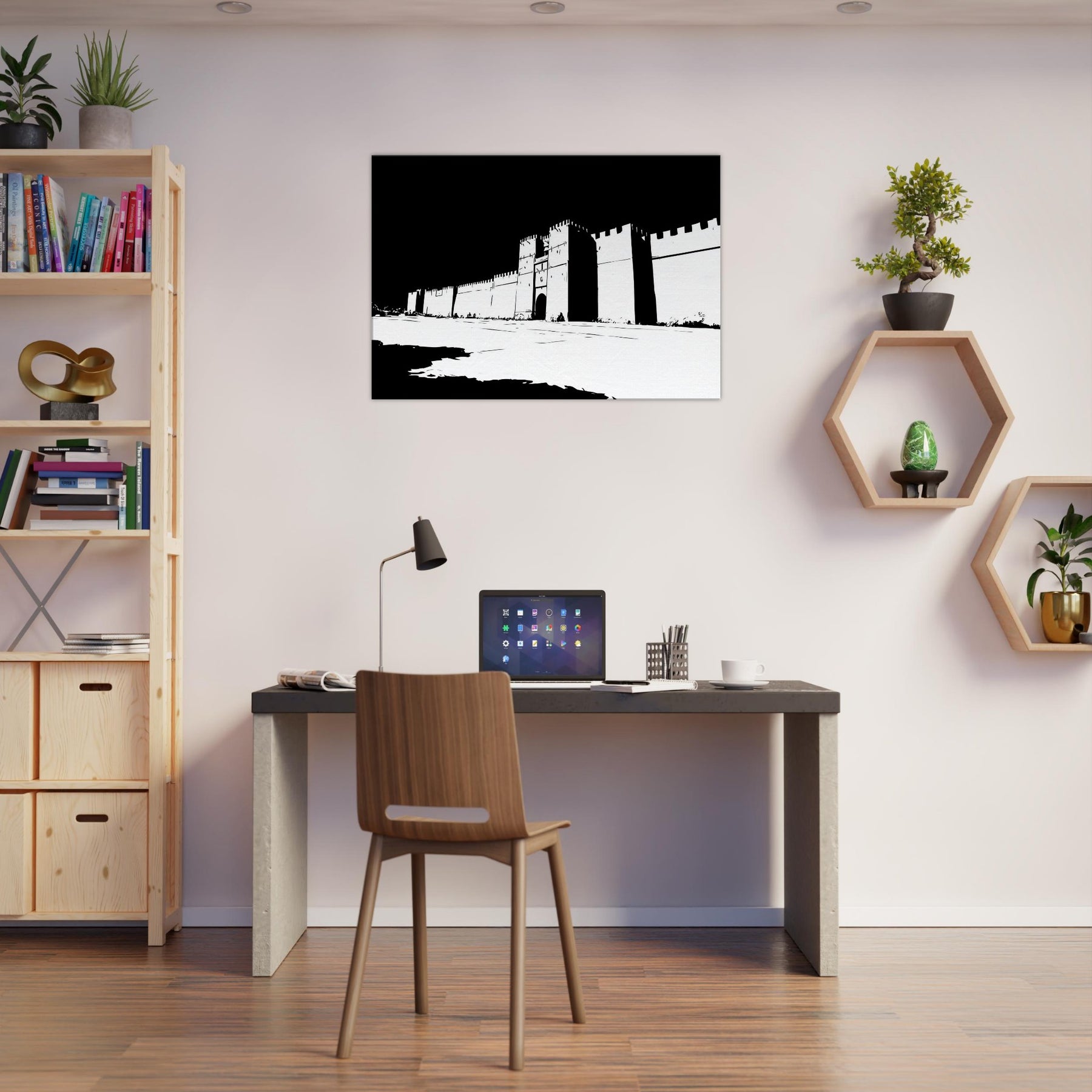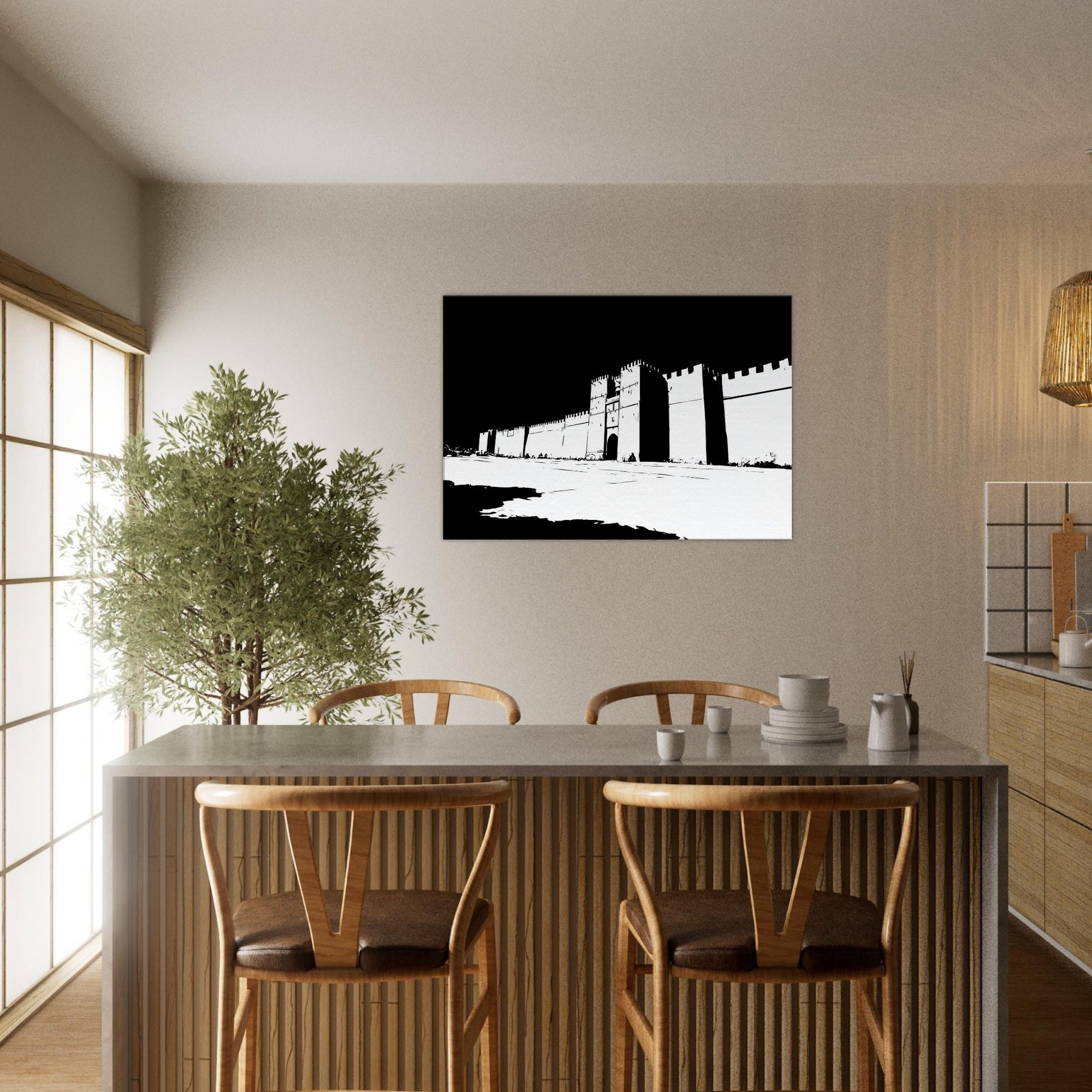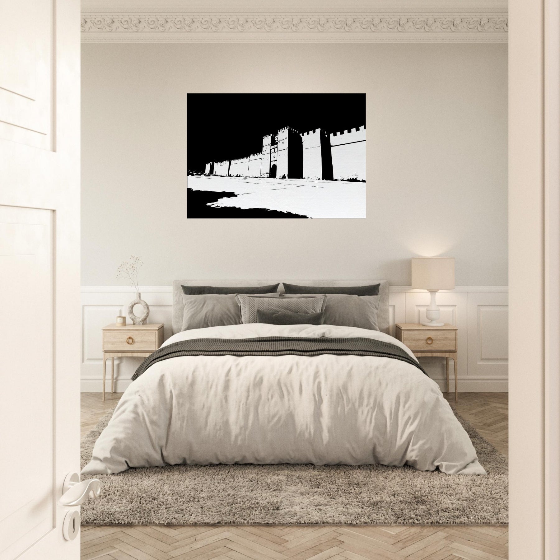 Enter a quiet horizon where a Fortress stands in elegant restraint. This wall art unfolds with clean, unbroken lines that sketch a timeless rampart in living room scale, inviting calm and focus rather than noise. The stark contrast of black and white creates a sculptural presence a reminder that quiet strength can shape a room as surely as stone. Hang it over a sofa or console to anchor a modern space with atmosphere, memory, and a whisper of distant battlements.