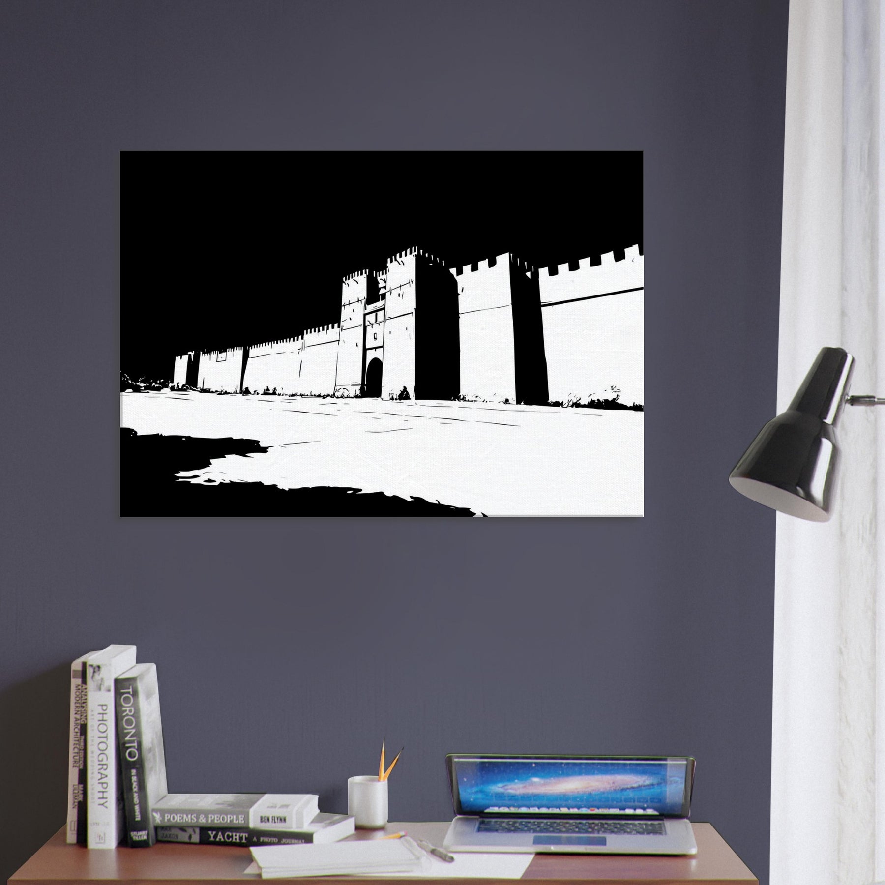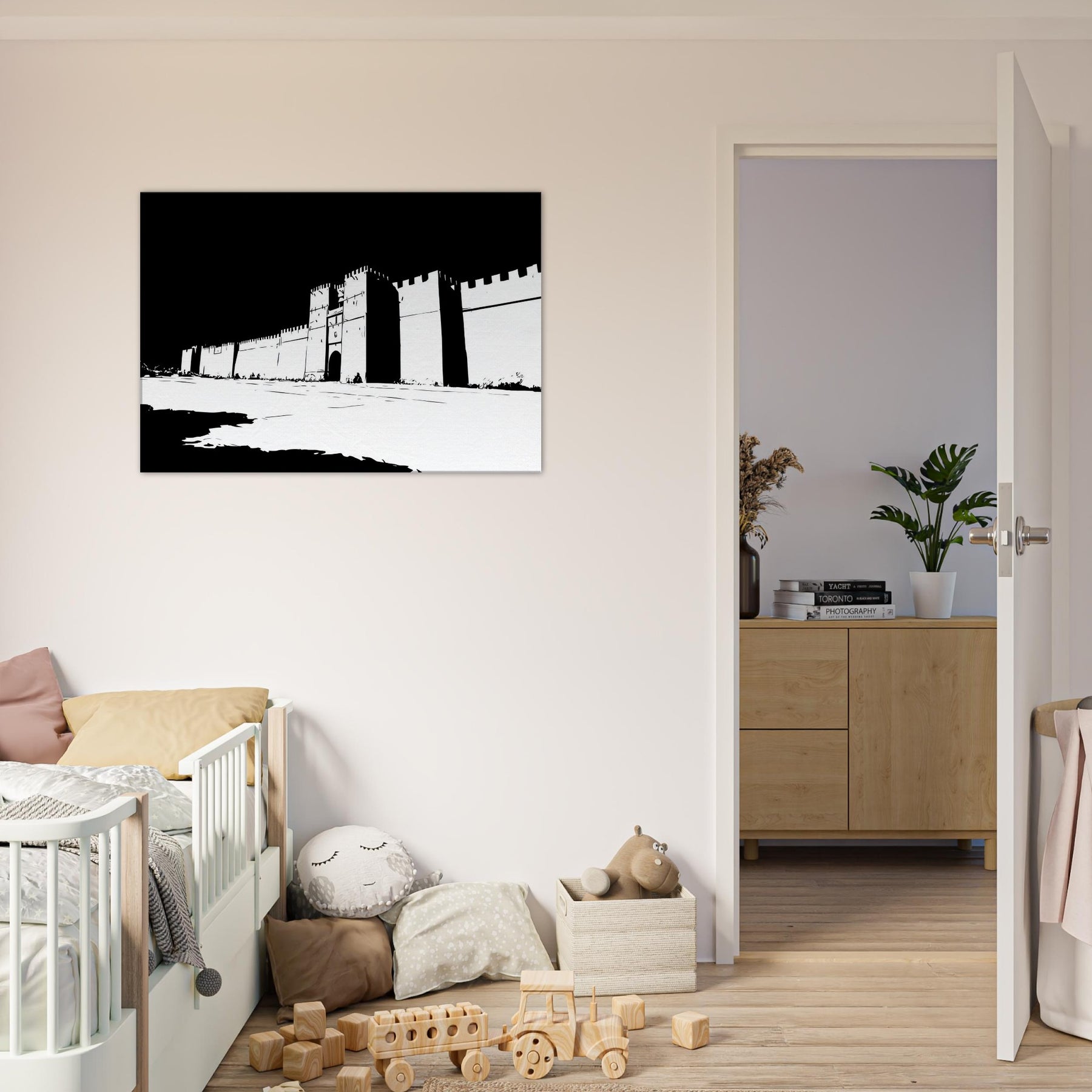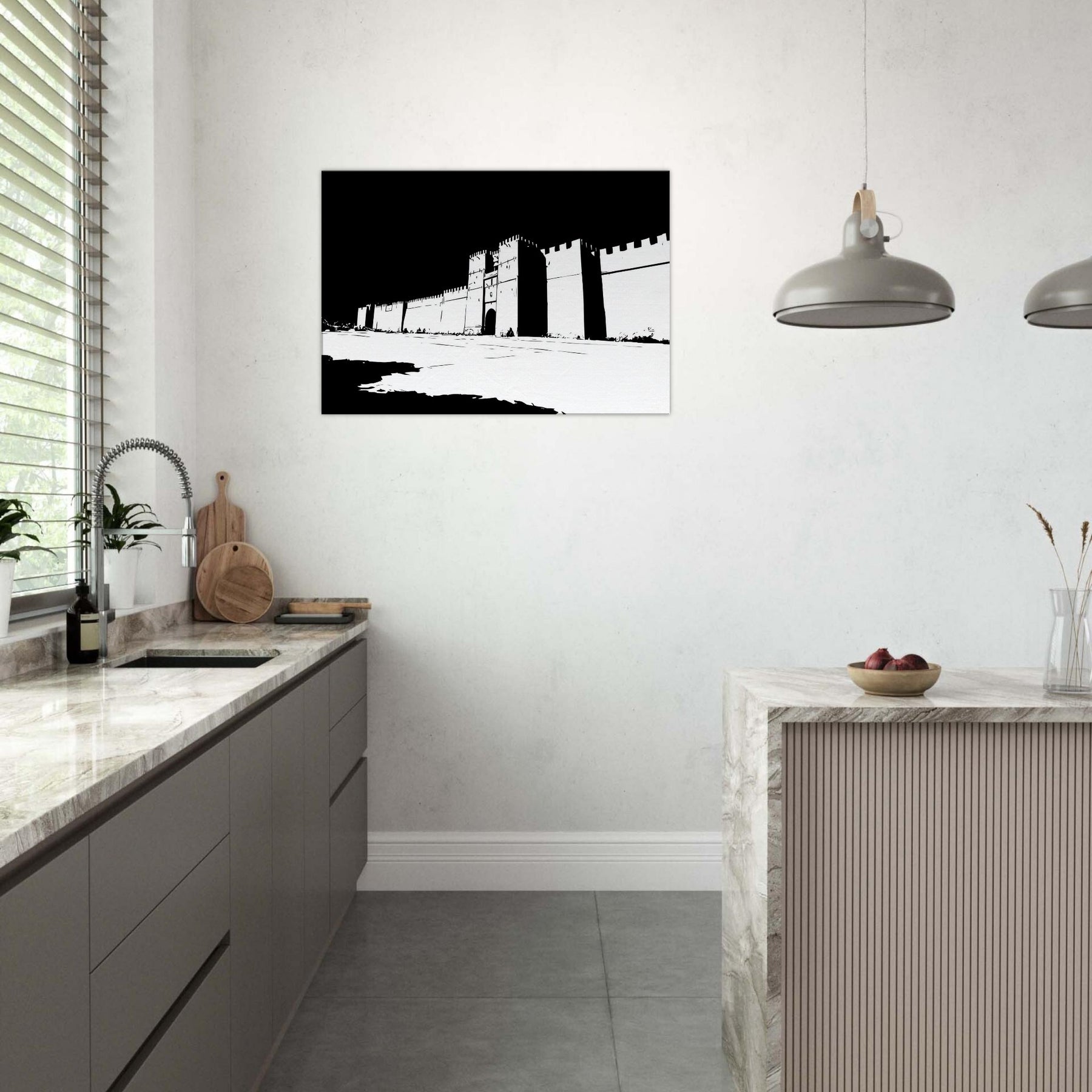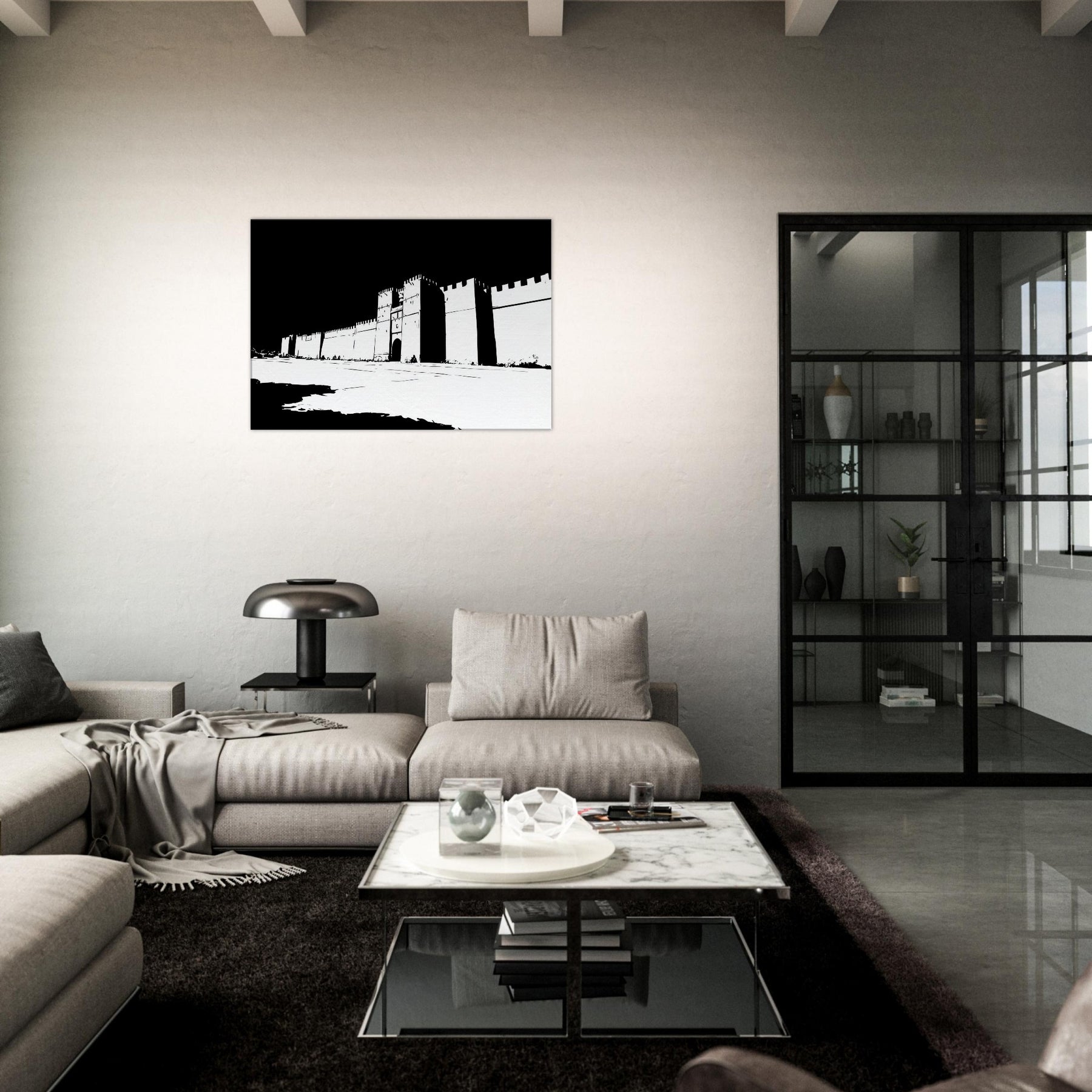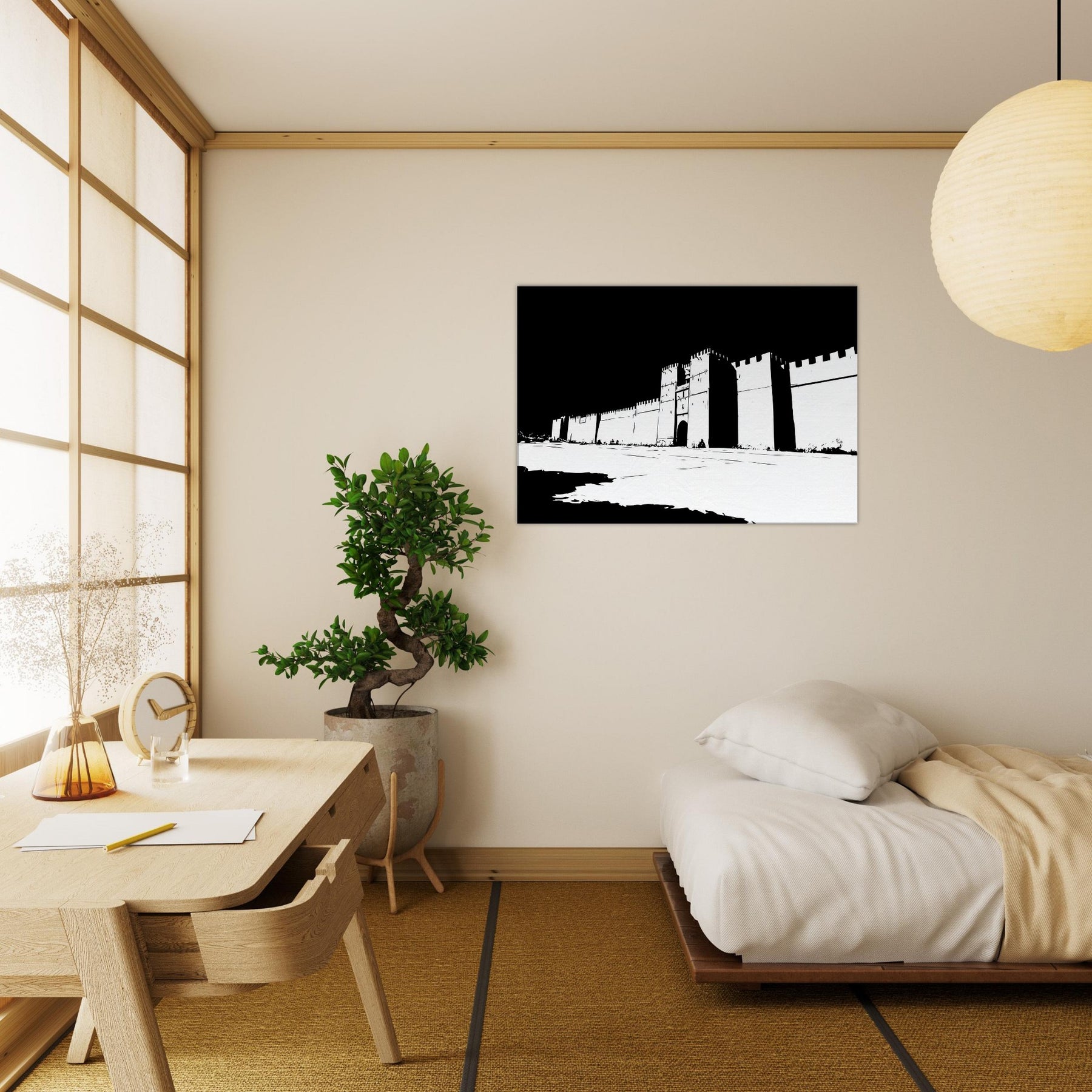 Enter a quiet horizon where a Fortress stands in elegant restraint. This wall art unfolds with clean, unbroken lines that sketch a timeless rampart in living room scale, inviting calm and focus rather than noise. The stark contrast of black and white creates a sculptural presence a reminder that quiet strength can shape a room as surely as stone. Hang it over a sofa or console to anchor a modern space with atmosphere, memory, and a whisper of distant battlements.