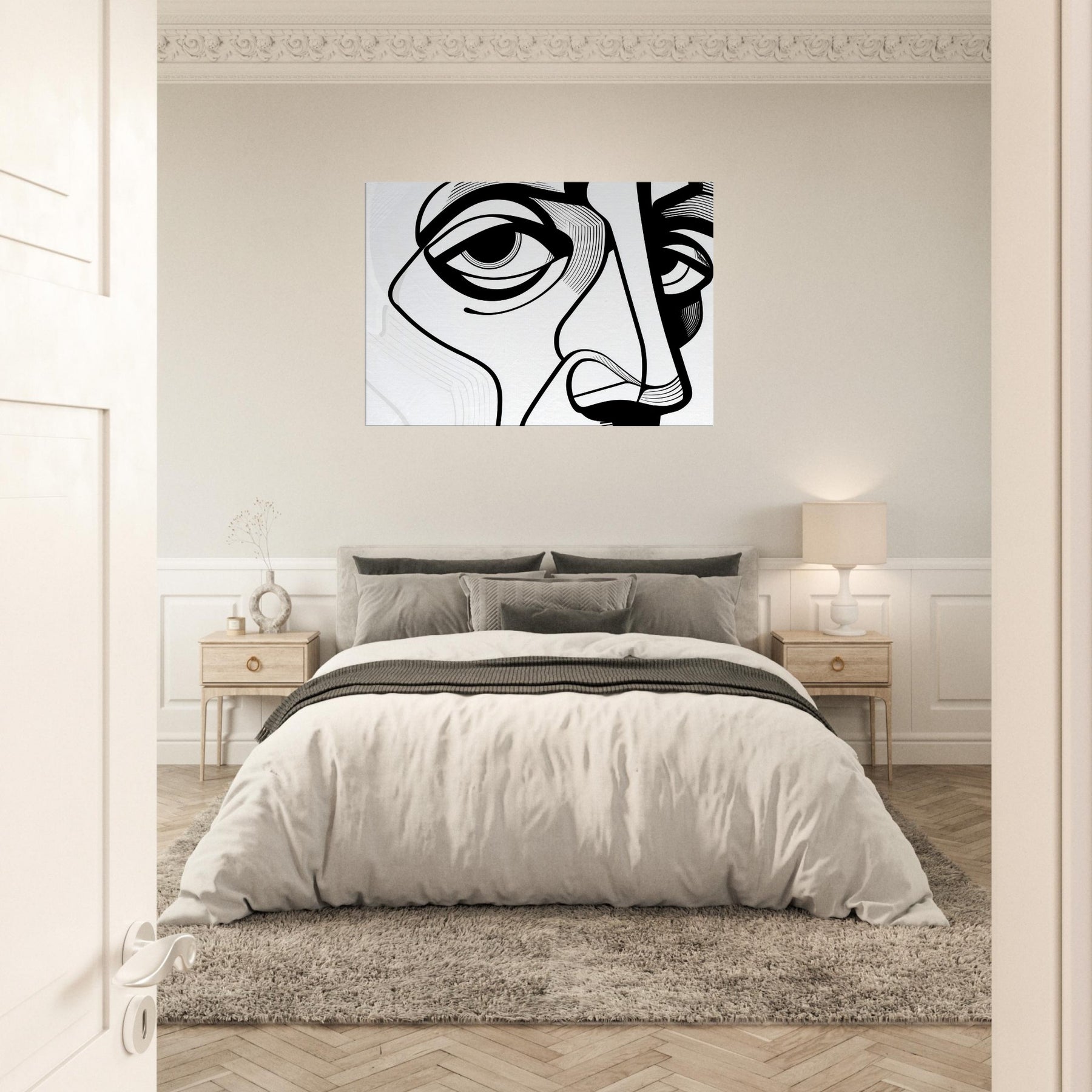 Through crisp line art, the Cubist Face unfolds in a rhythm of curves and angles, inviting quiet study and playful interpretation. The bold black contours carve space within white, shaping a living room into a gallery of memory and moment. Fragments of a profile converge into a singular, timeless gaze, offering a thoughtful counterpoint to soft fabrics and warm light. This piece breathes with you dynamic, intimate, and endlessly modern perfect for adding drama and harmony to your most used room.