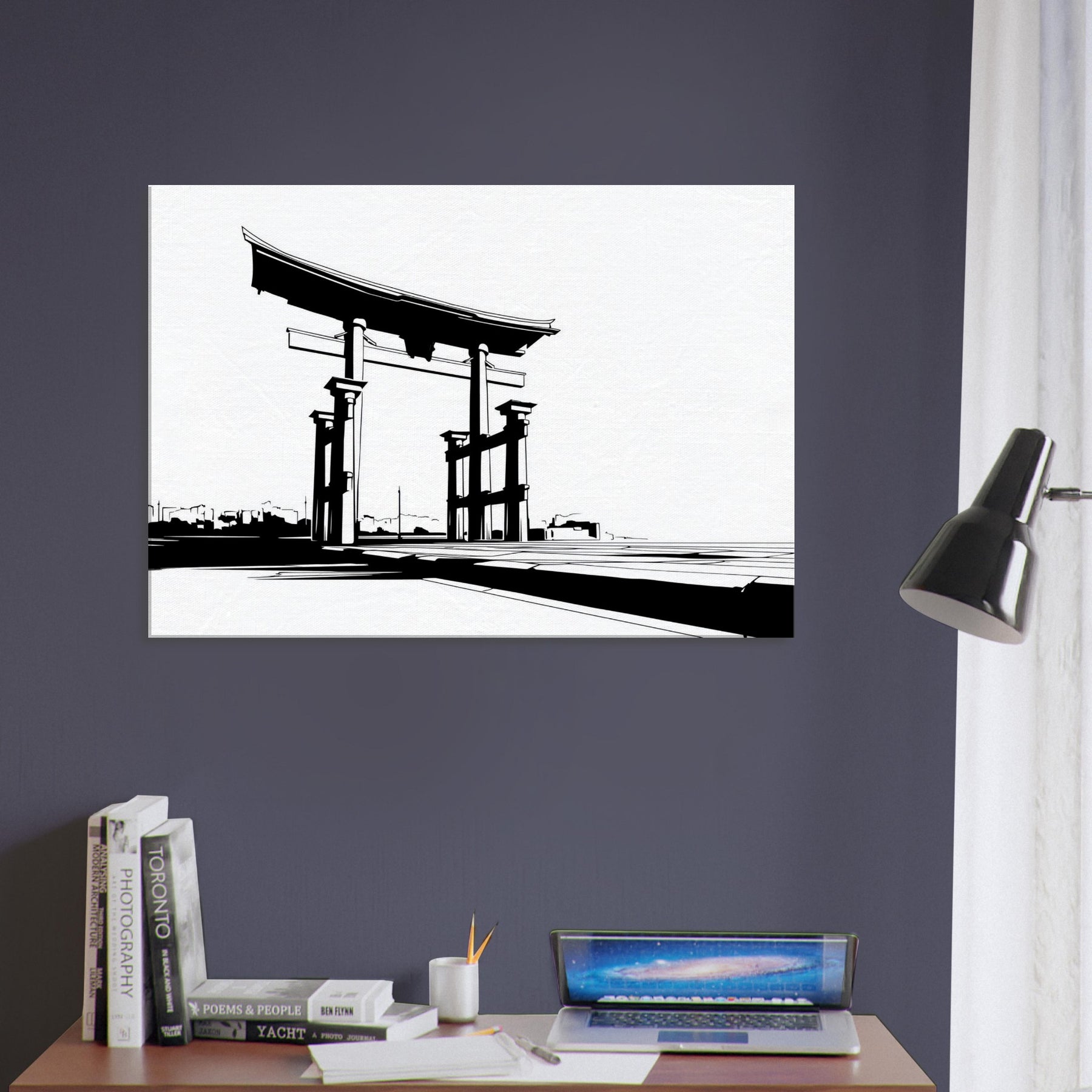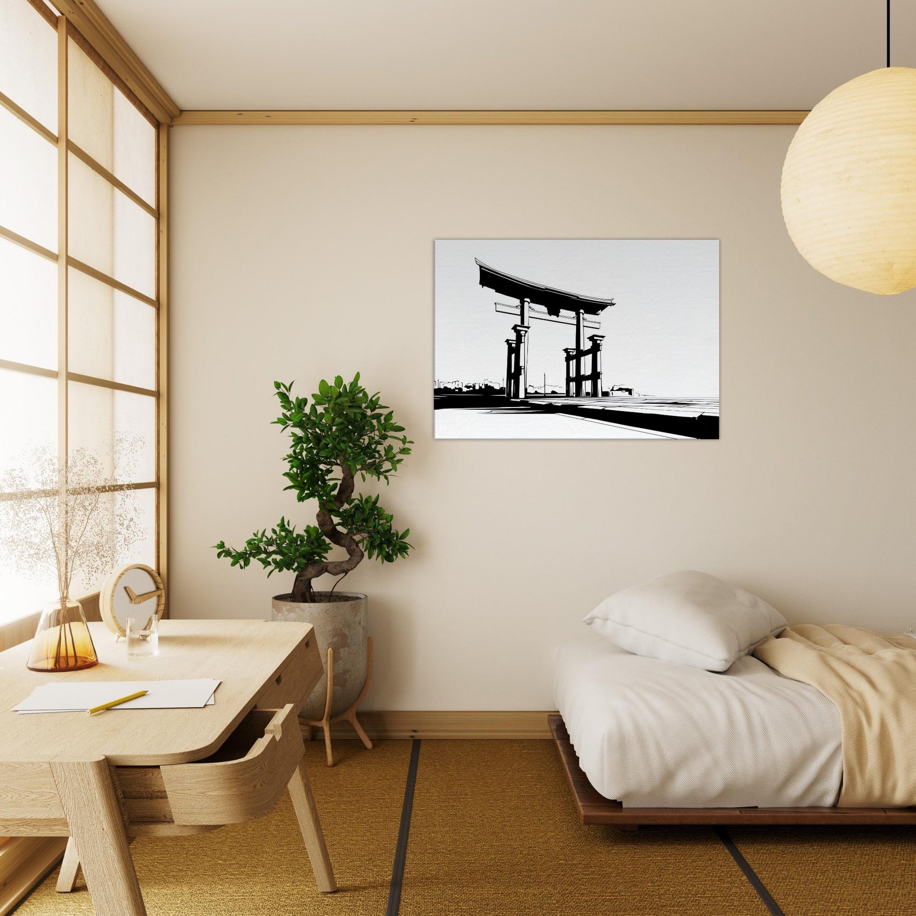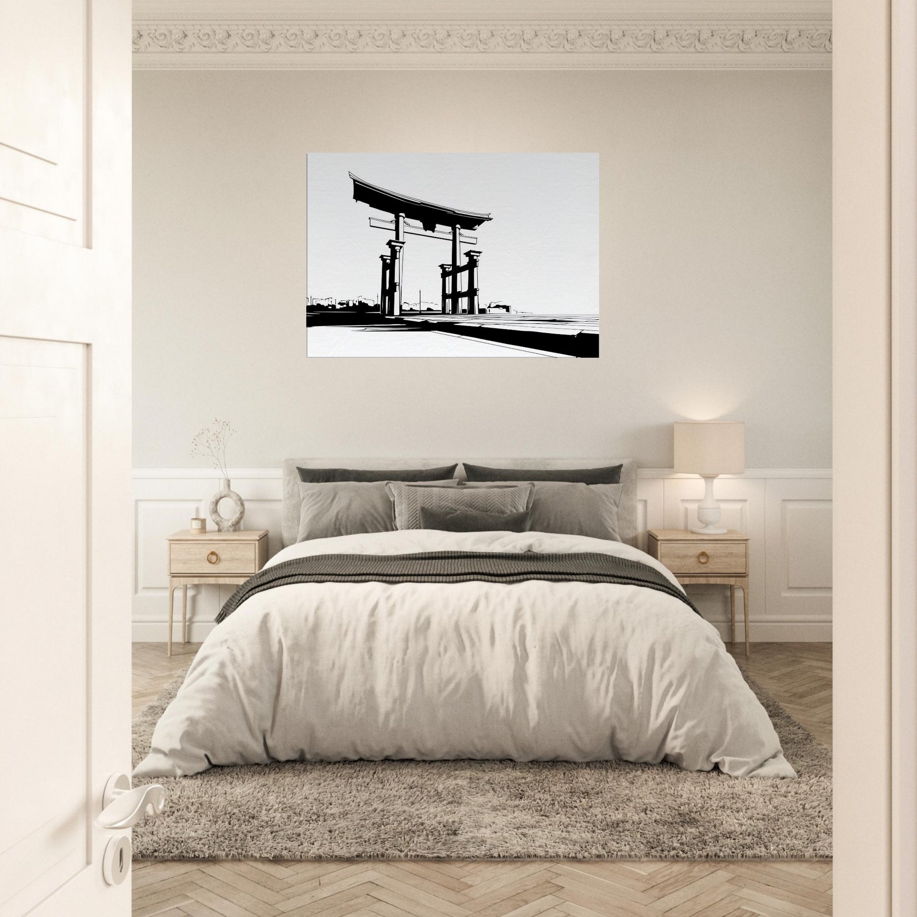 Torii Gate stands as a quiet arc between memory and modern living. This line art composition strips the city to essential form, letting shadow and light converse across your wall. The bold, clean strokes create a contemplative silhouette that feels both distant and present, inviting stillness after the day’s bustle. Hang it in a living room or entryway to invite focus, balance, and space to breathe each glance nudges you toward a threshold where architecture becomes poetry.