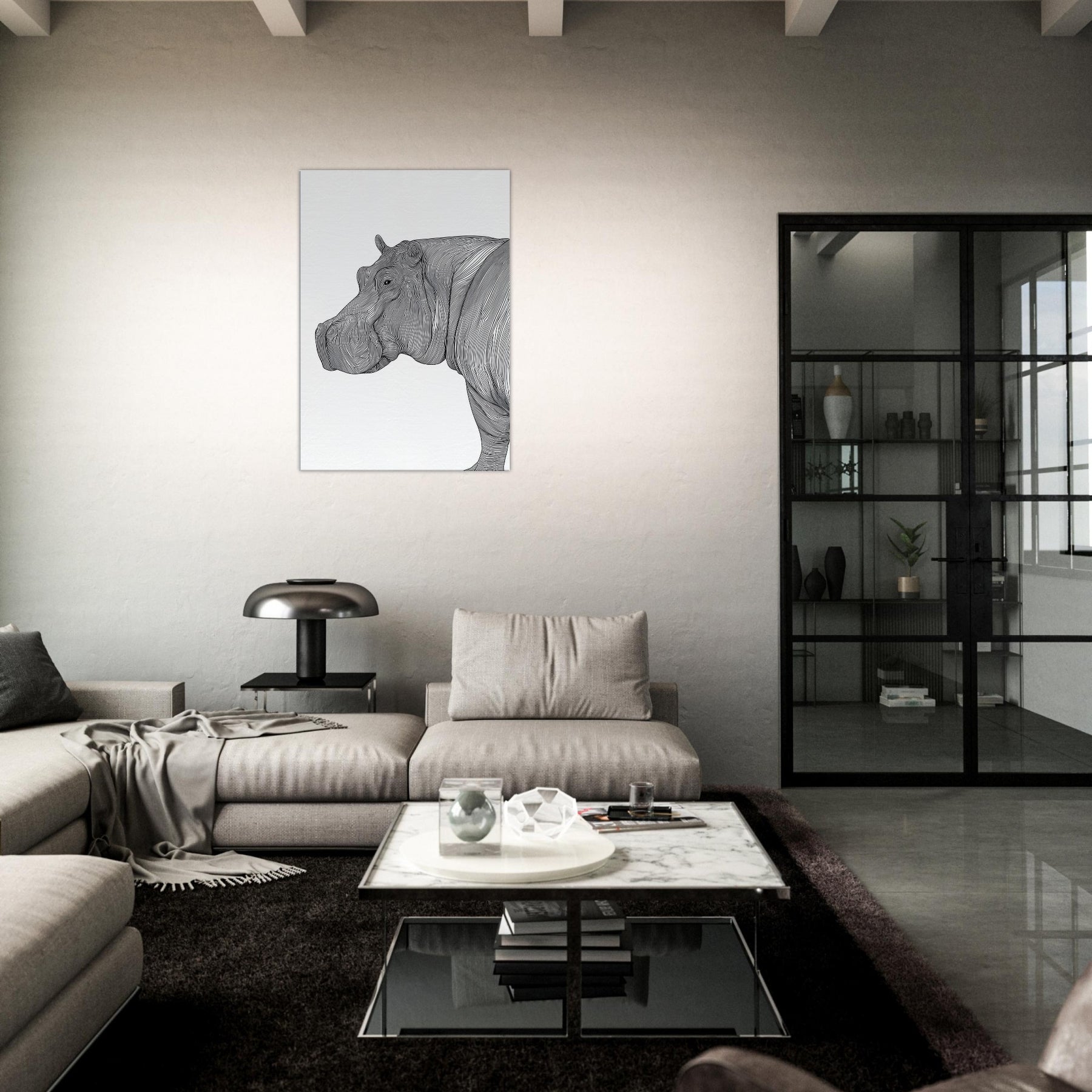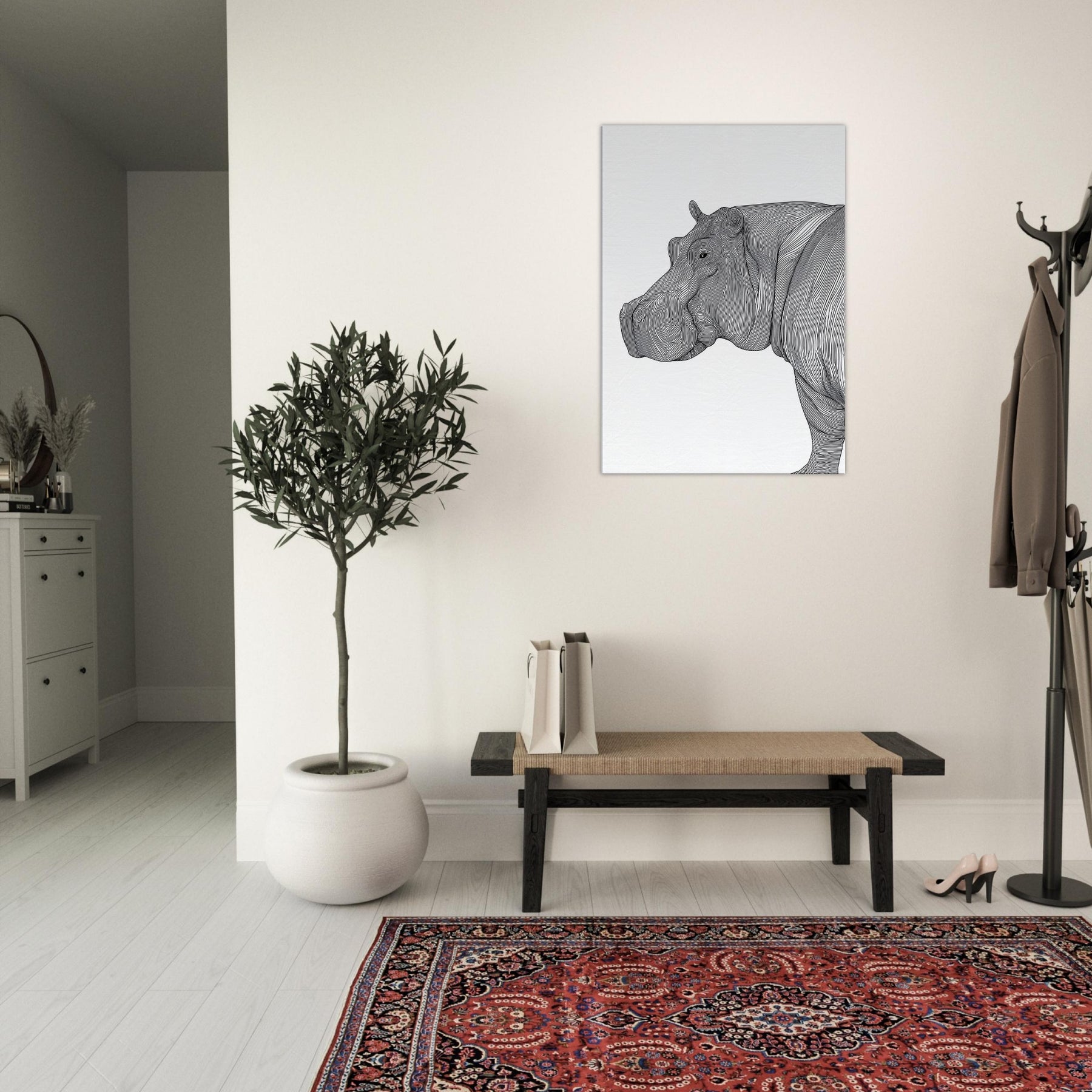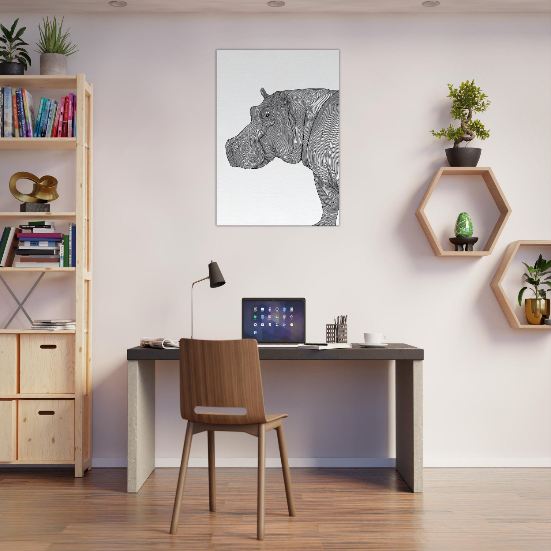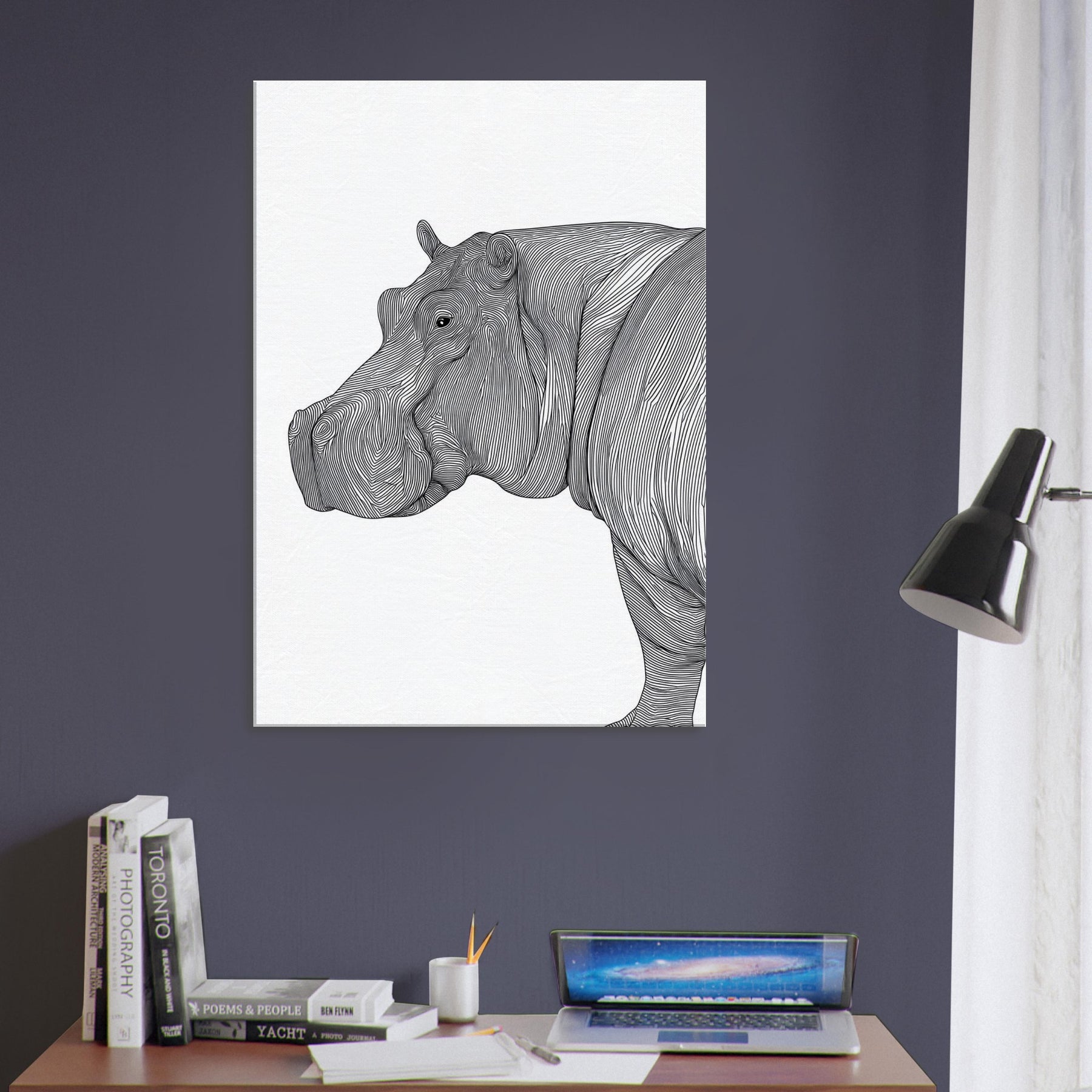 Poised in quiet repose, this minimalist line drawing captures the Hippopotamus with a chorus of tactile curves. The dense, continuous contours melt into negative space, conjuring the hush of a sunlit riverside at dawn. Printed on crisp white, it invites soft, reflective light into the room and pairs effortlessly with a calm color palette charcoal, ivory, and warm woods. A singular focal point, it bestows modern grace and a whisper of wilderness, making any living space feel grounded, serene, and infinitely chic.