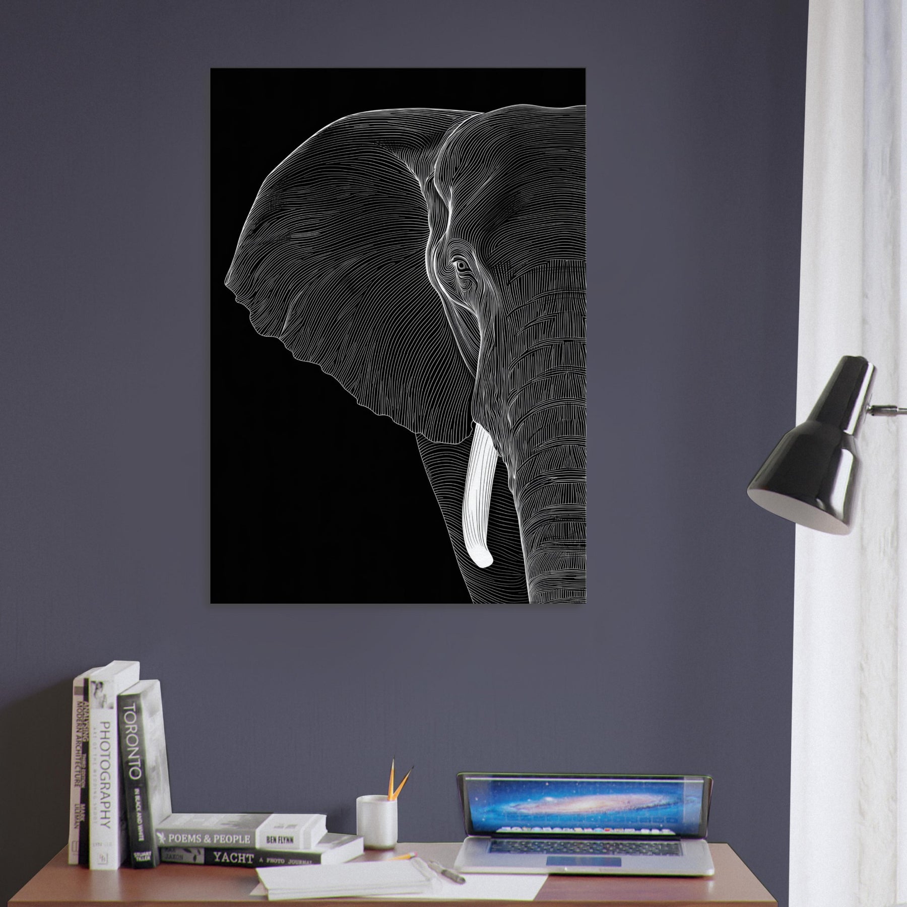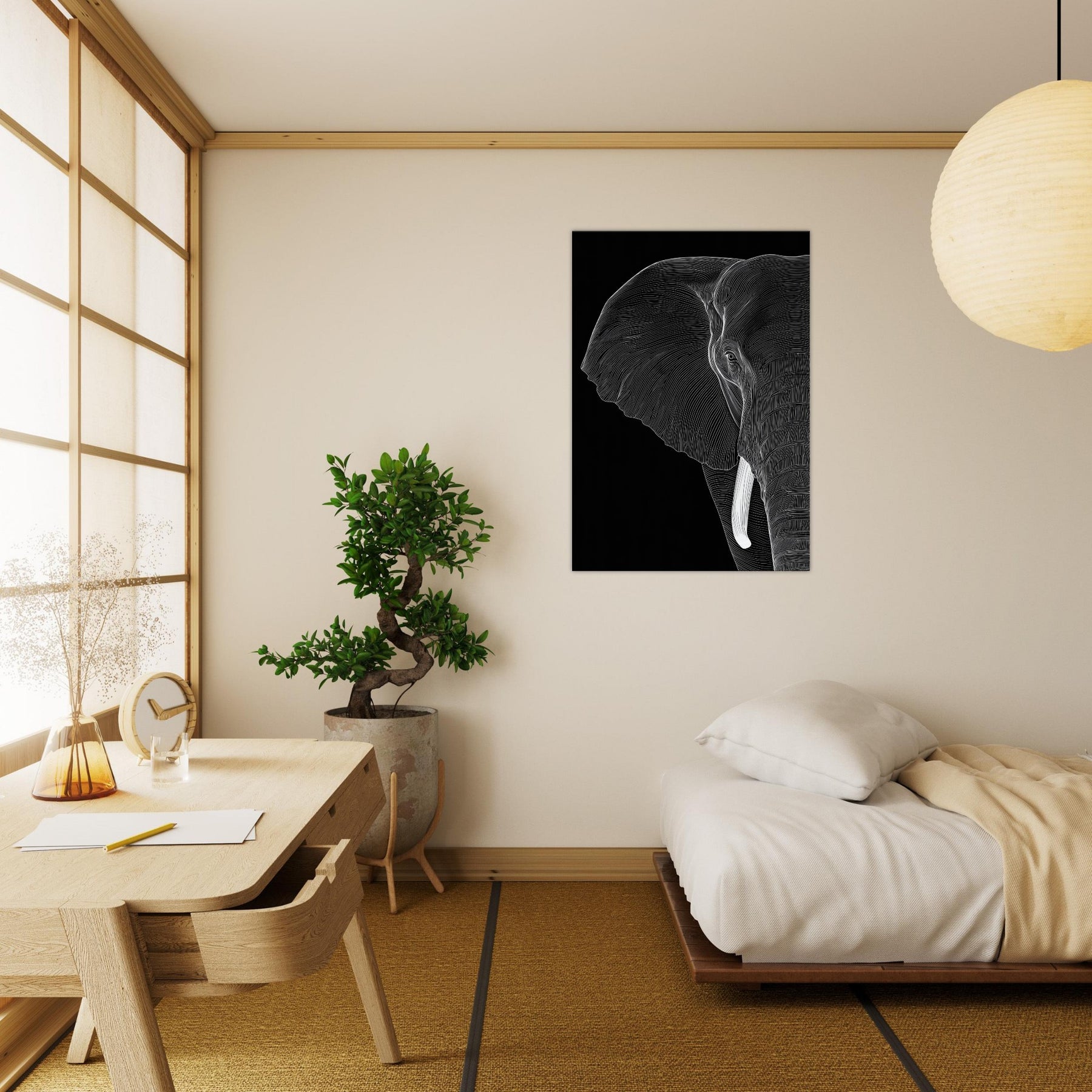 This minimalist Elephant study rests with quiet dignity, crafted from a single chorus of delicate lines that sketch volume and grace on a black field. The effect is soft, airy, and surprisingly tactile, inviting contemplation. Hang it in a living room or entryway to lend calm, focus, and a touch of refined wildlife artistry. It pairs beautifully with natural textures and muted tones, turning everyday space into a serene, artful retreat.