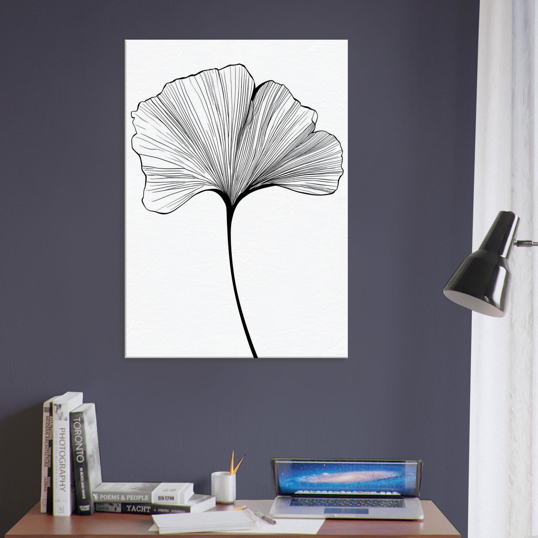 With the Ginkgo Leaf captured in precise line art, this piece exhales quiet clarity into any room. The slender stem rises into a fan of radiating veins, a gesture of resilience and grace. Its monochrome palette and airy composition invite soft shadows and contemplative calm, making it ideal for a serene living room, bedroom nook, or home office. The artwork breathes sophistication without clutter, pairing beautifully with wood, glass, or botanical textures as sunlight shifts, revealing new shadows and a timeless, nature inspired mood.