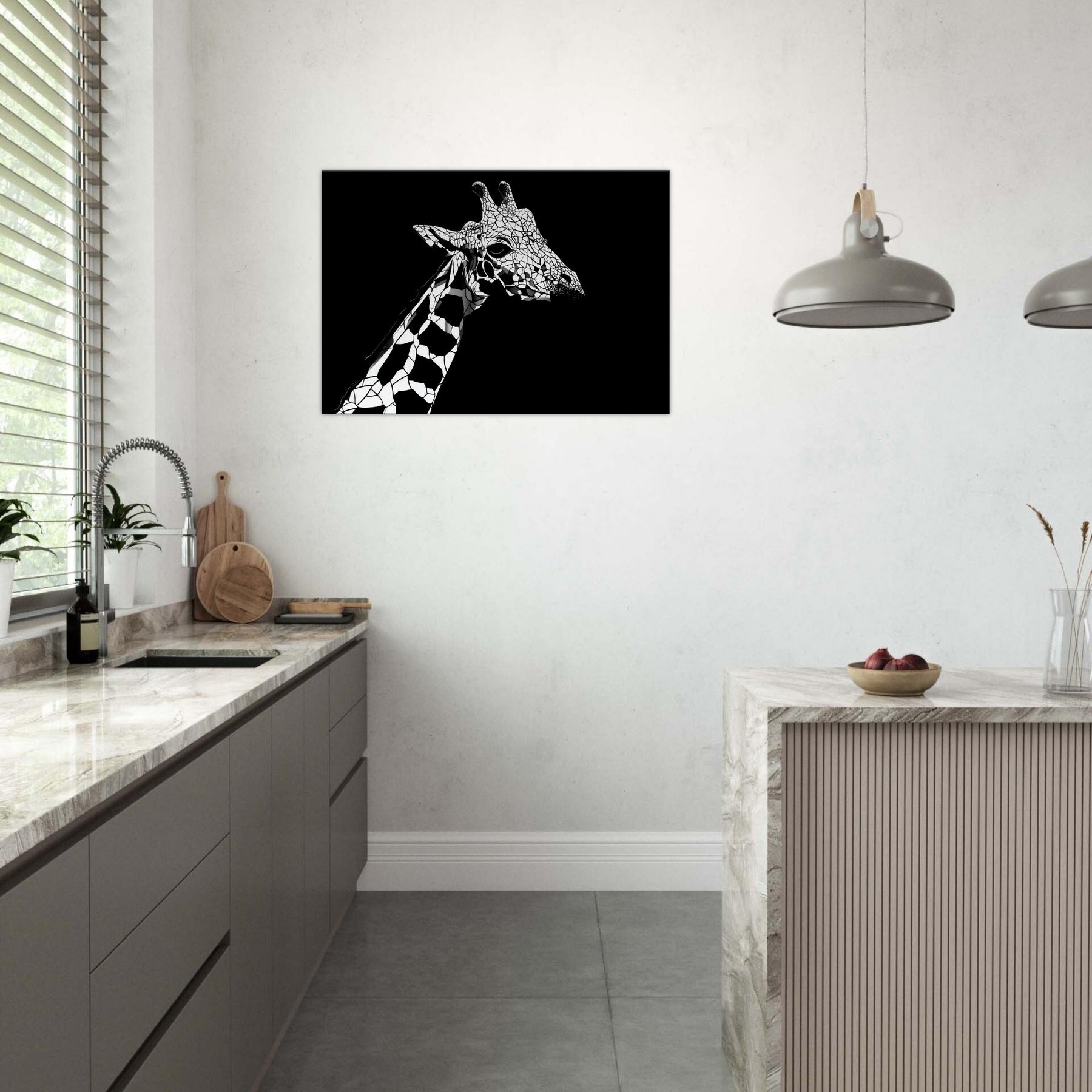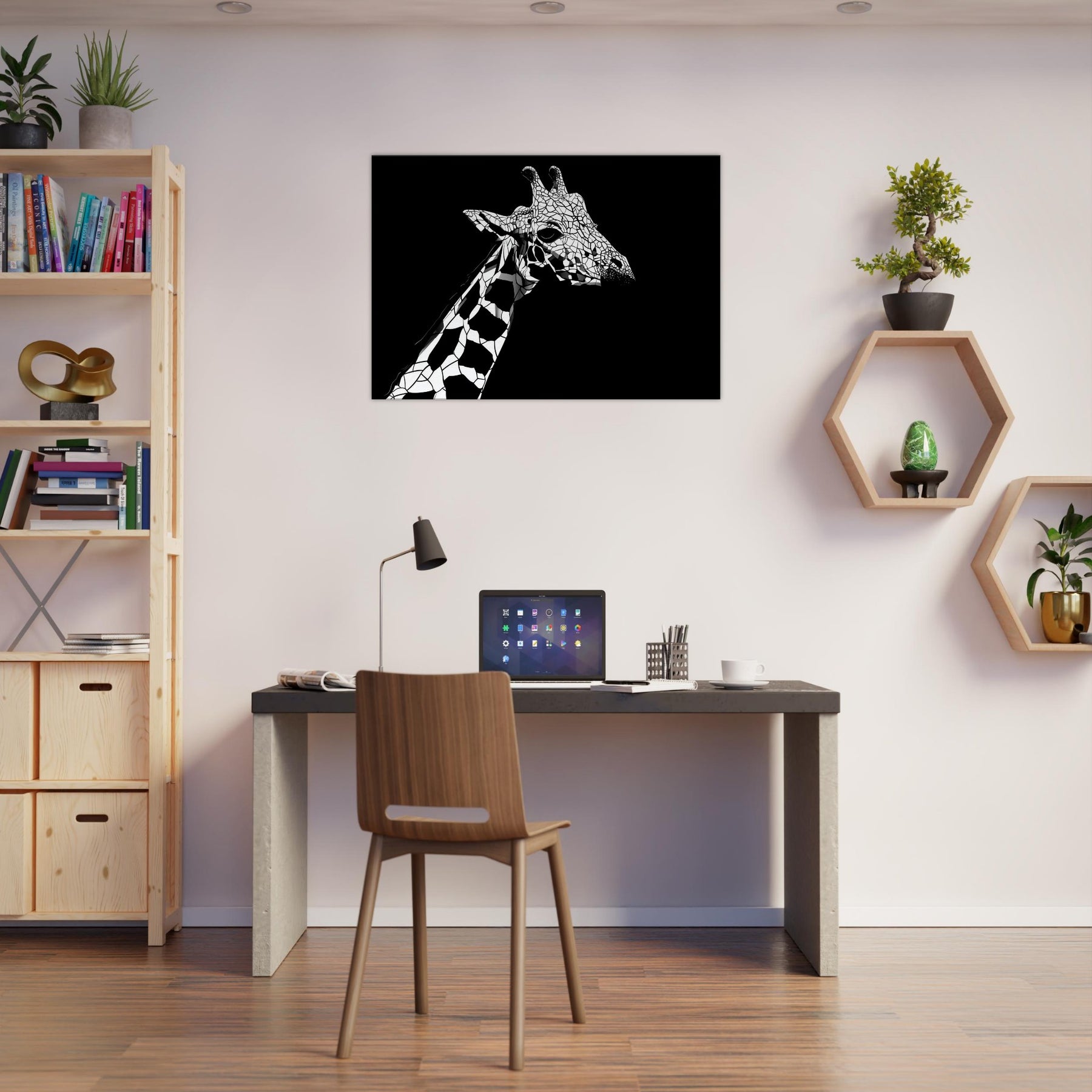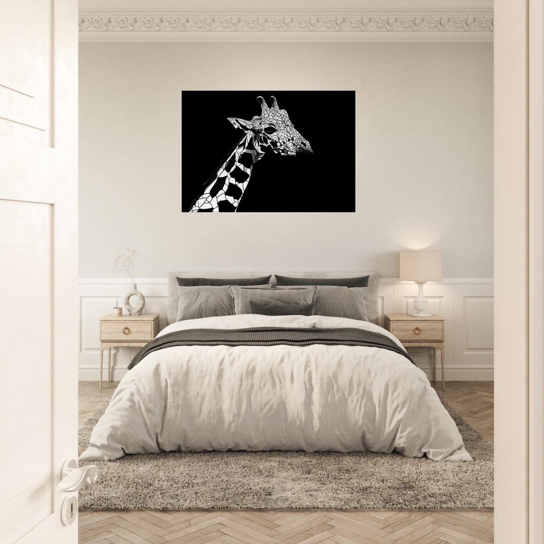 Let this black and white line art giraffe glide into your living space as a quiet focal point. The elongated neck becomes a sculpture of suggestion, built from graceful, interlocking lines that echo the rhythm of light and shadow. Its minimalist contrast invites calm, while the tactile intricacy of the mosaic like strokes adds depth to a modern room perfect over a sofa, in a hallway, or above a bedside table. A moment of elegance that makes a space feel larger and more thoughtful.