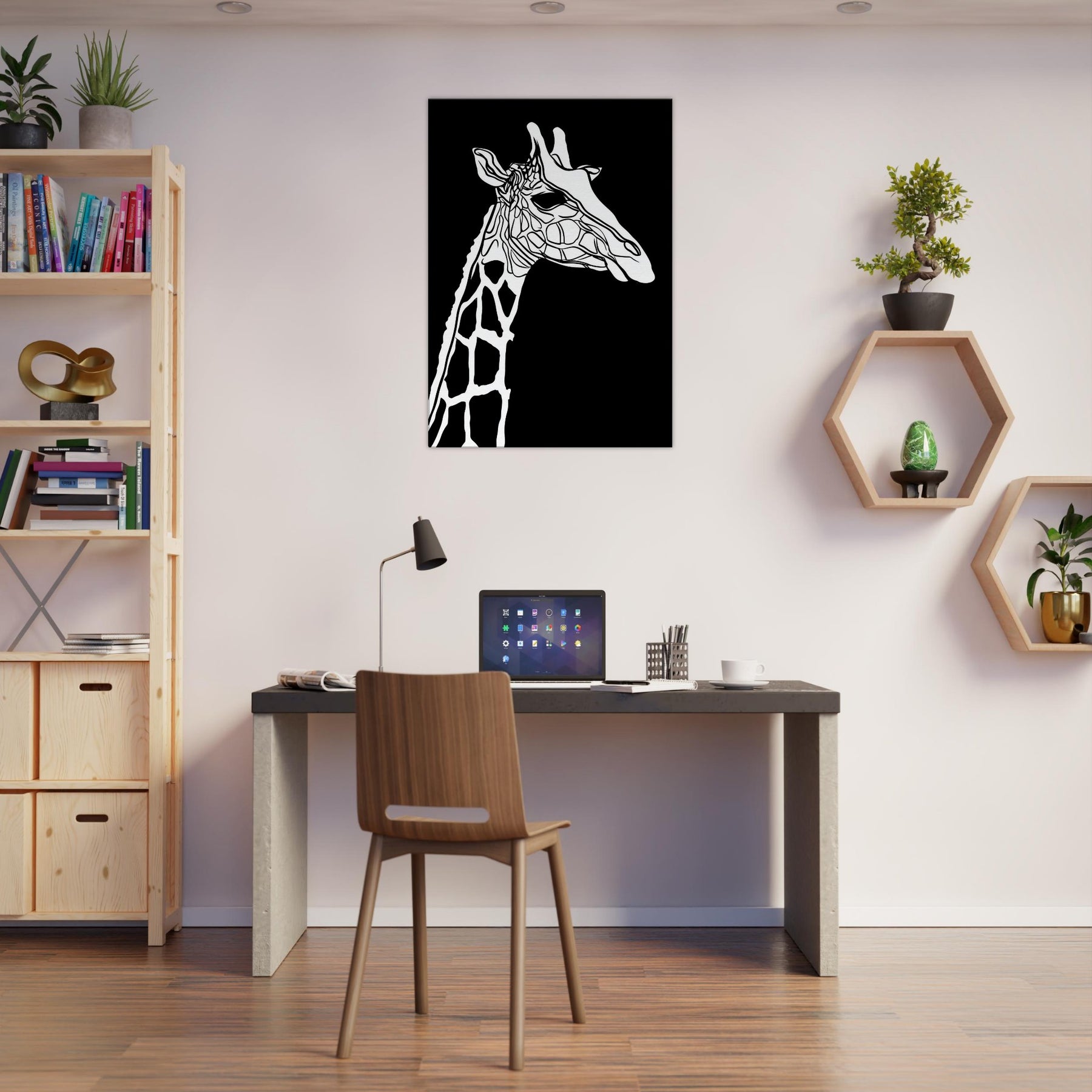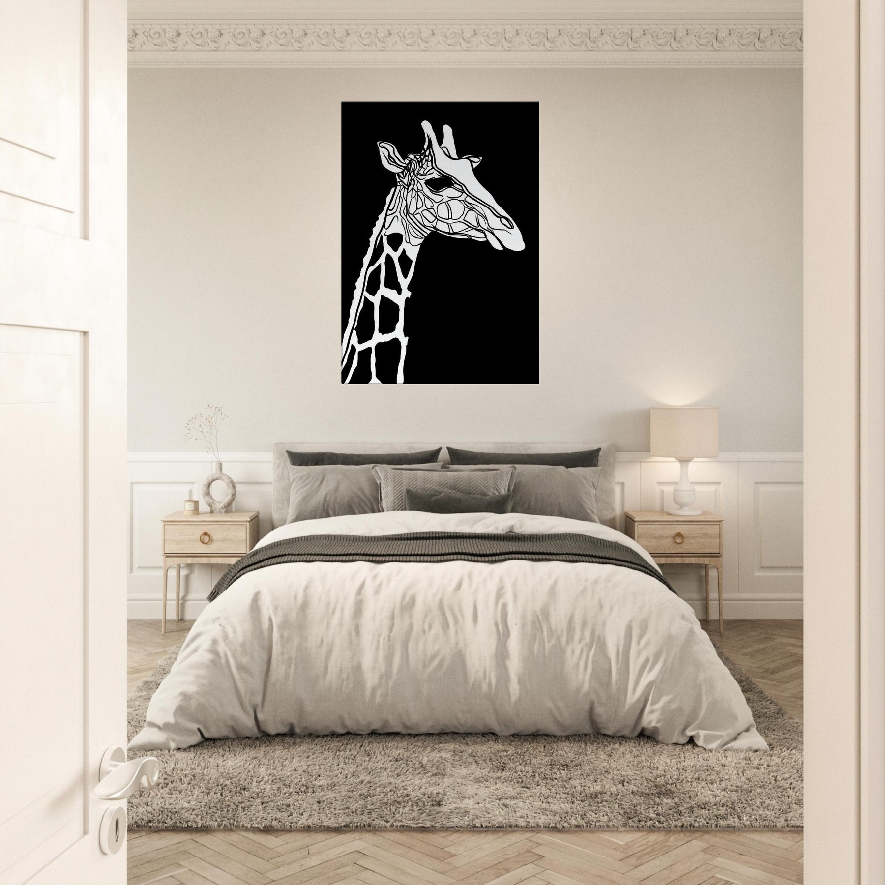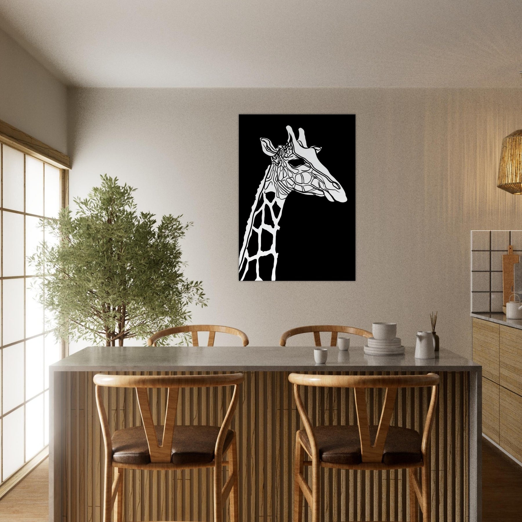 An elegant silhouette traced in precise, continuous lines, this Giraffe in Lines print brings a quiet, architectural grace to any room. The stark black and white contrast invites the eye to wander along the giraffe’s sculpted neck and delicate facial features, turning walls into a gallery of calm. Place it above a sofa for a focal moment, or in a hallway to guide the senses. Its understated rhythm complements warm woods and soft textiles, adding a contemporary, timeless atmosphere.