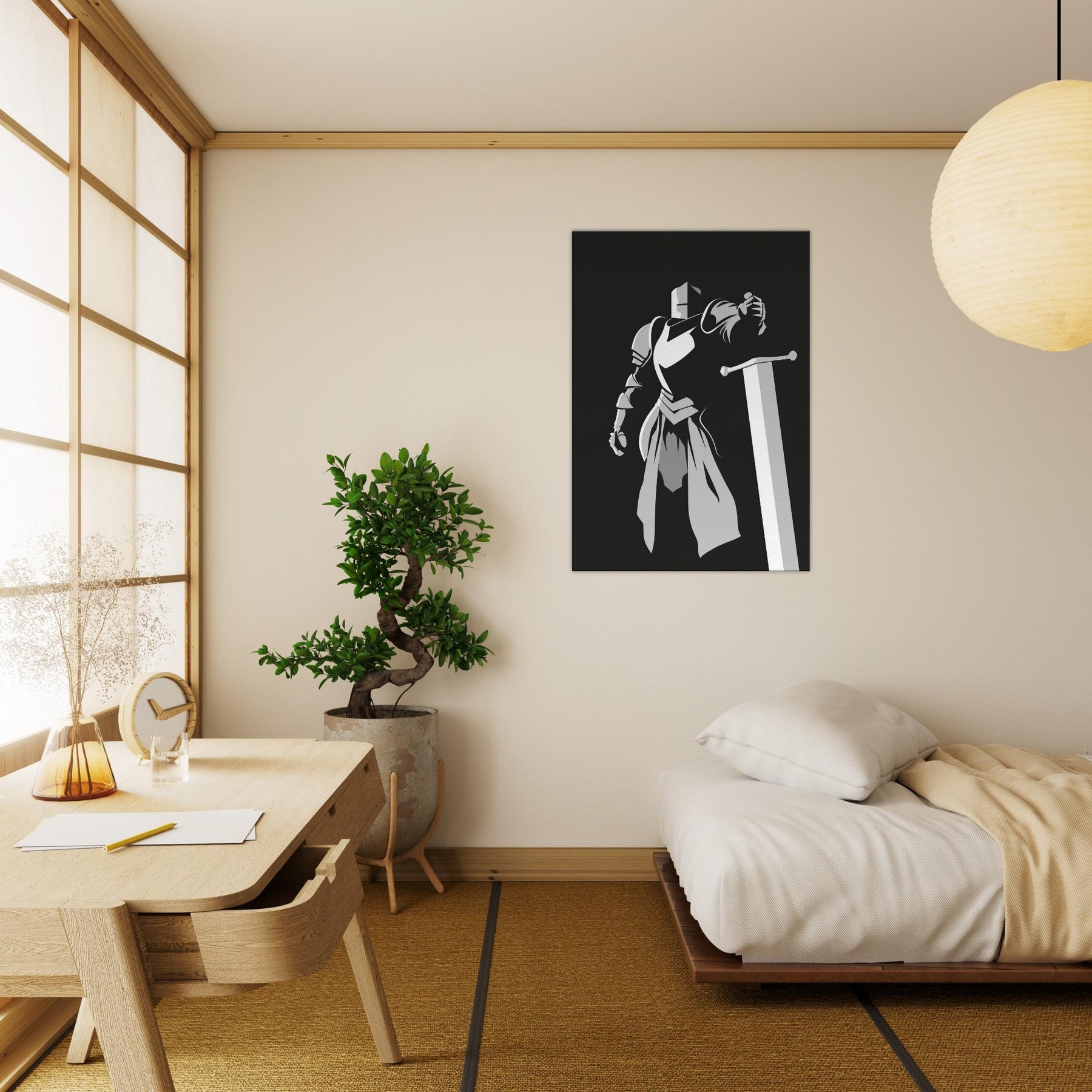 Enter a realm where light cuts through shadow and lines become myth. This line art captures the Gallant Knight in Shining Armor, bold and poised, with a sweeping cloak and a sword that anchors the composition. The stark contrast and generous negative space invite quiet reflection, turning a wall into a harbor of courage and legend. Perfect for a living room or study, it infuses disciplined calm and a spark of adventure into everyday living.