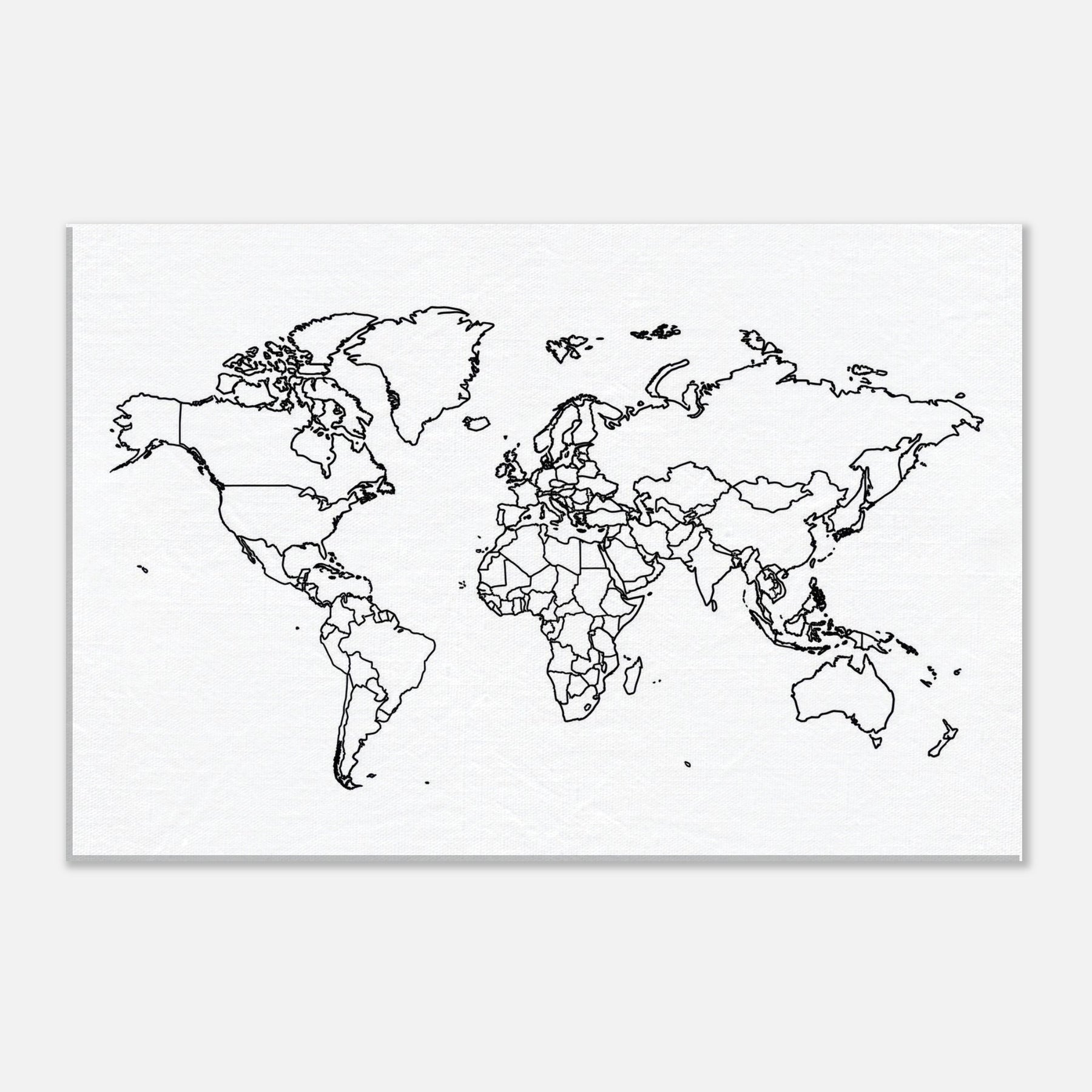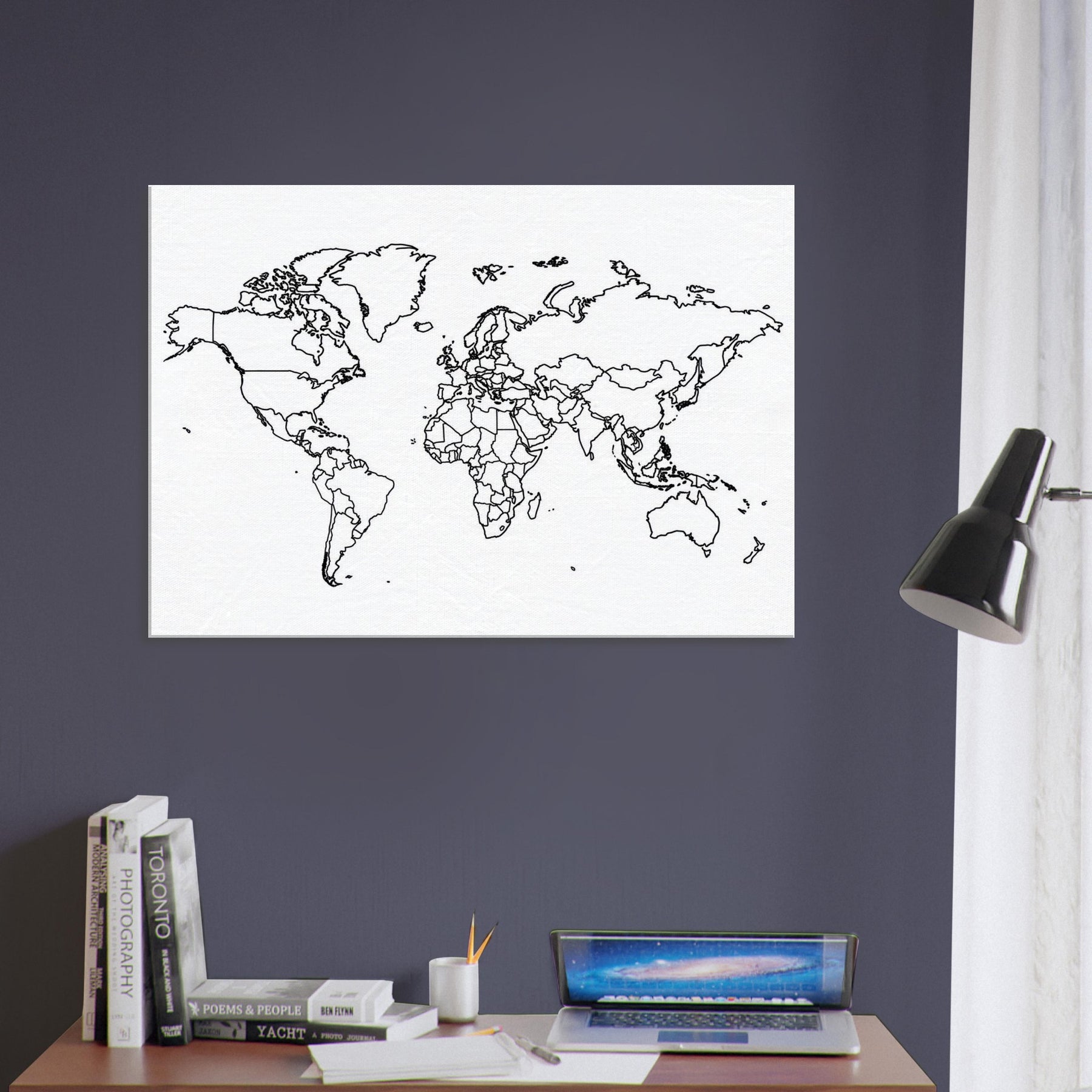 Transport your living space into a quiet orbit with this World Map Outline rendered in clean line art. The continuous black contour against crisp white invites curiosity without shouting, pairing well with wood tones and soft textiles. Its delicate geography evokes travel, memory, and possibility, while the minimalist strokes keep a room feeling open and calm. Perfect for a study, entryway, or lounge, this piece adds a subtle, architectural grace that anchors conversations and widens the sense of your world within your walls.