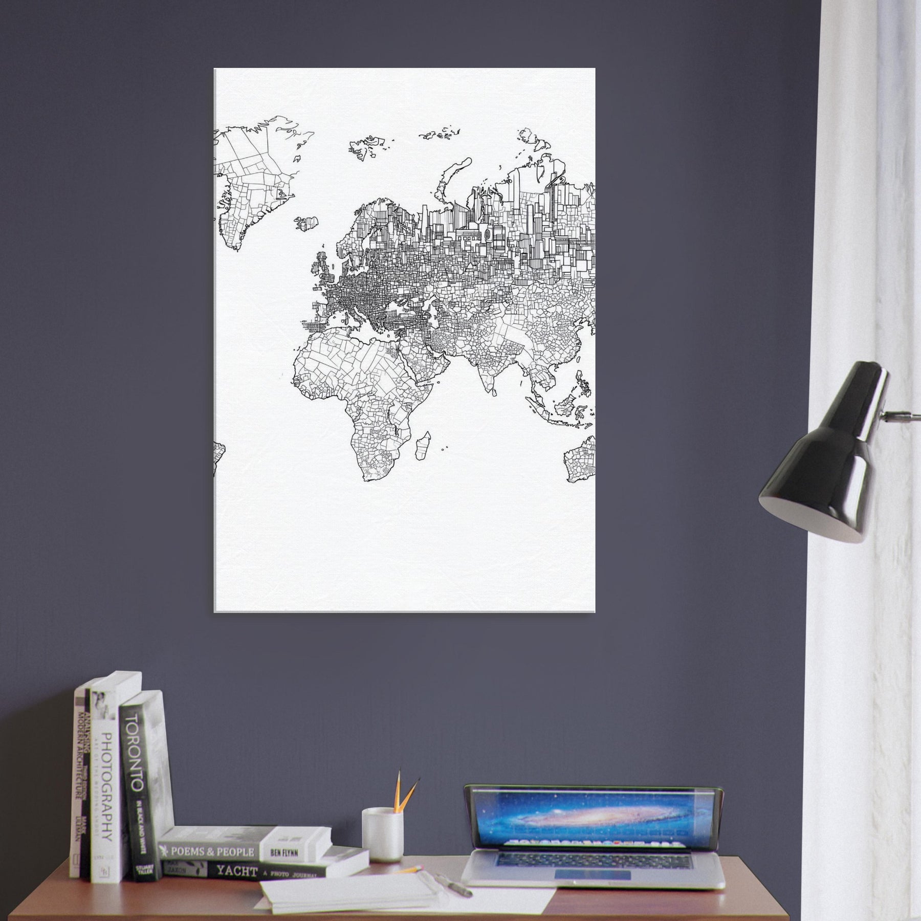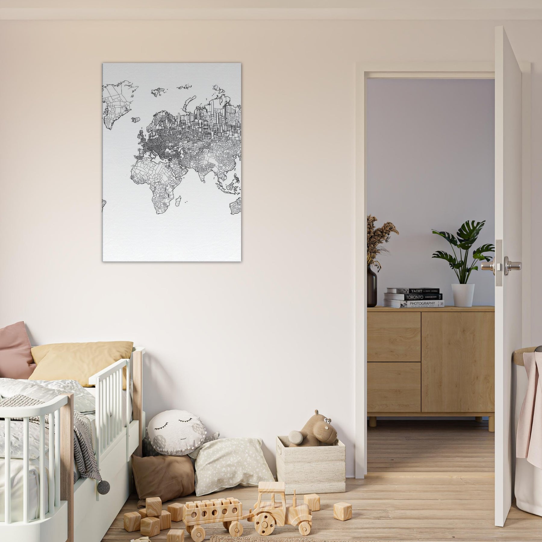 An elegant line drawing of a World Map Outline unfurls across the wall, turning travel into a living ambiance rather than a destination. The continuous black lines offer a calm, meditative rhythm, like a map you can live in subtle, refined, and endlessly suggestive. In a sunlit living room or a study at dusk, it adds global sophistication and a sense of motion to the space, pairing well with natural textures and soft metals, and inviting everyday wanderlust into your home.