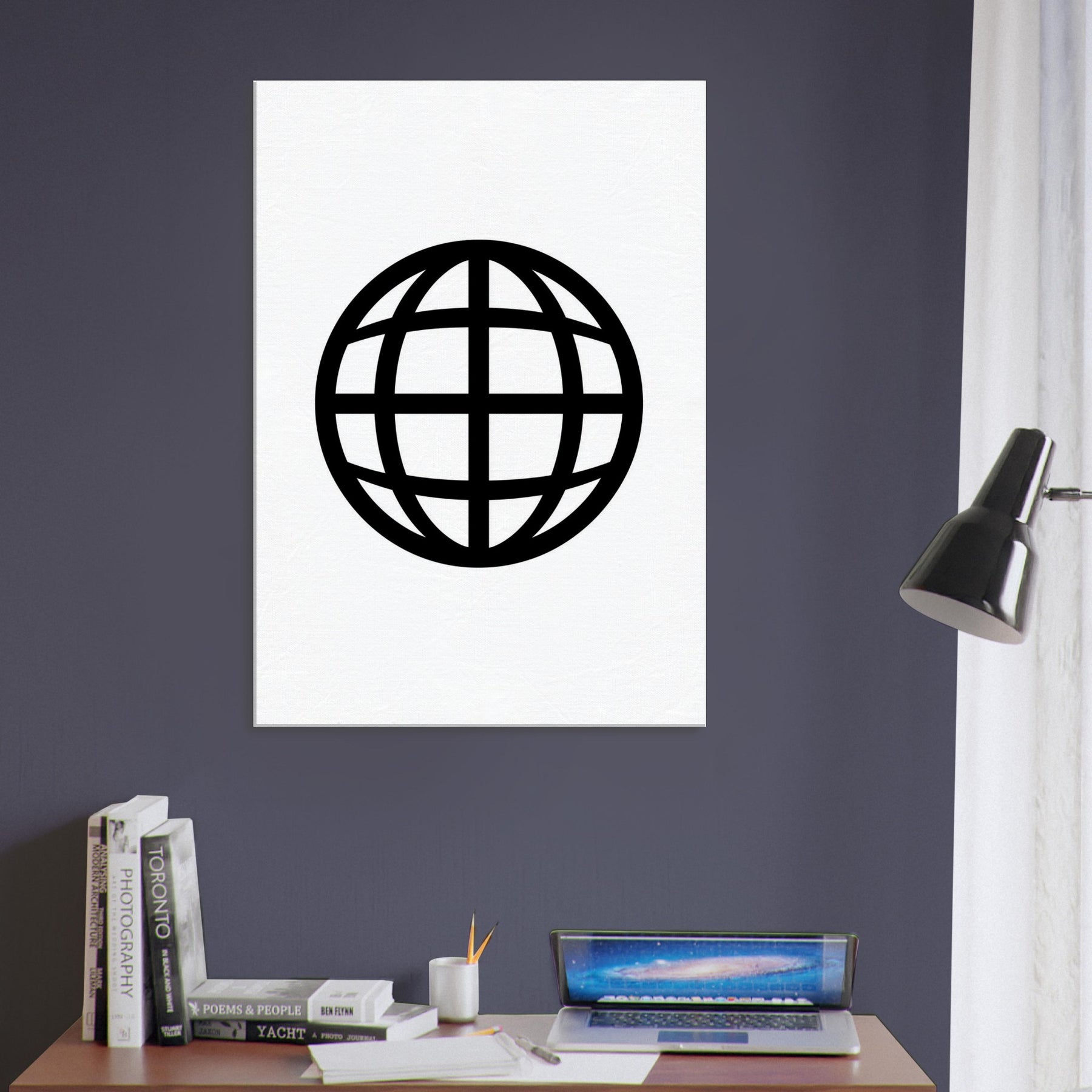 Globe Silhouette unfurls as a subtle orbit of lines, a poised centerpiece that slows the pulse of a busy room. The bold black contours carve a quiet map against a clean white field, inviting slow contemplation and effortless elegance. This modern piece awakens the senses with its balanced geometry, enhancing a living space with a sense of global perspective, quiet sophistication, and everyday wonder. Perfect above a sofa or in a study, it pairs with soft textures and brass accents.