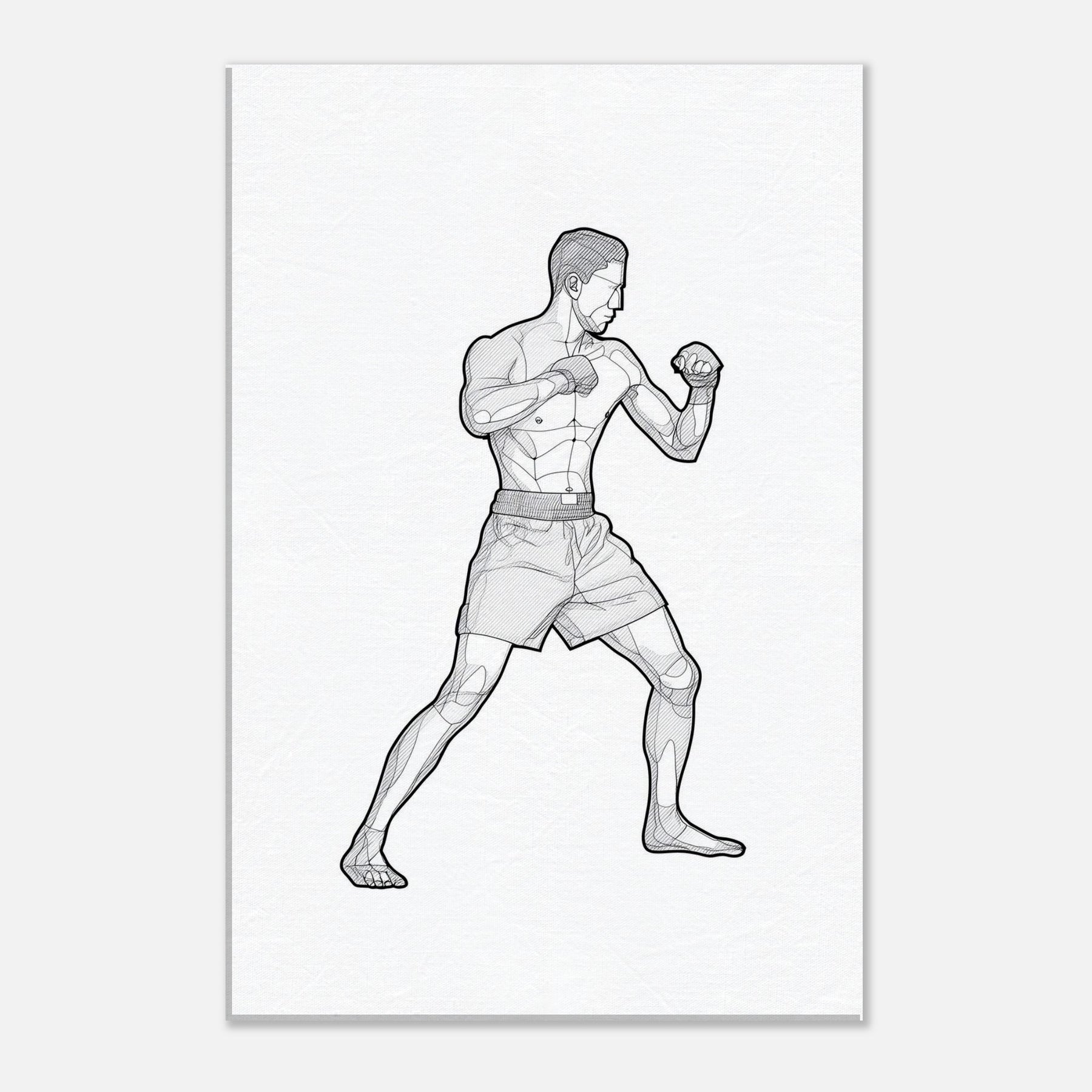 Boxer Guard Stance emerges in a clean line drawing, a study in focus and breath. The unbroken contours trace tension with quiet grace, turning kinetic energy into still, tactile form. This minimalist piece brings a crisp, sculpted mood to a living room or studio, inviting guests to pause and feel the air move around it. Hung above a sofa or in a reading nook, it anchors the space with refined strength and contemporary elegance, a constant reminder of discipline in daily life.