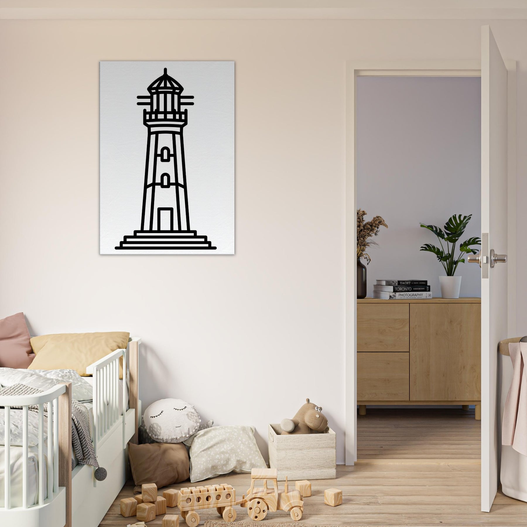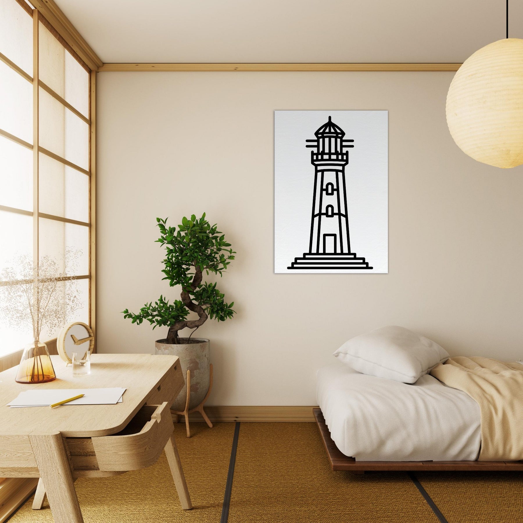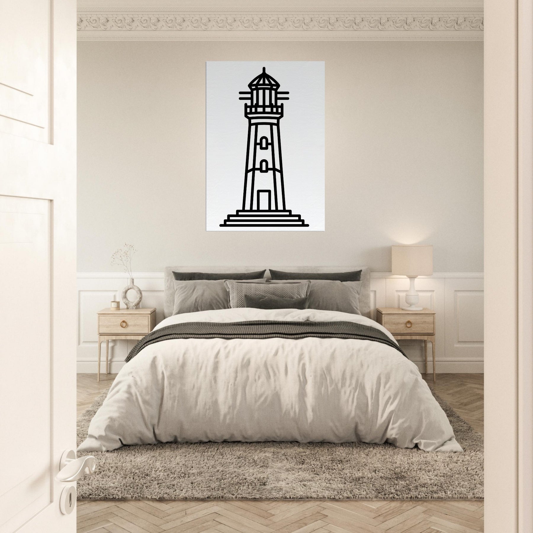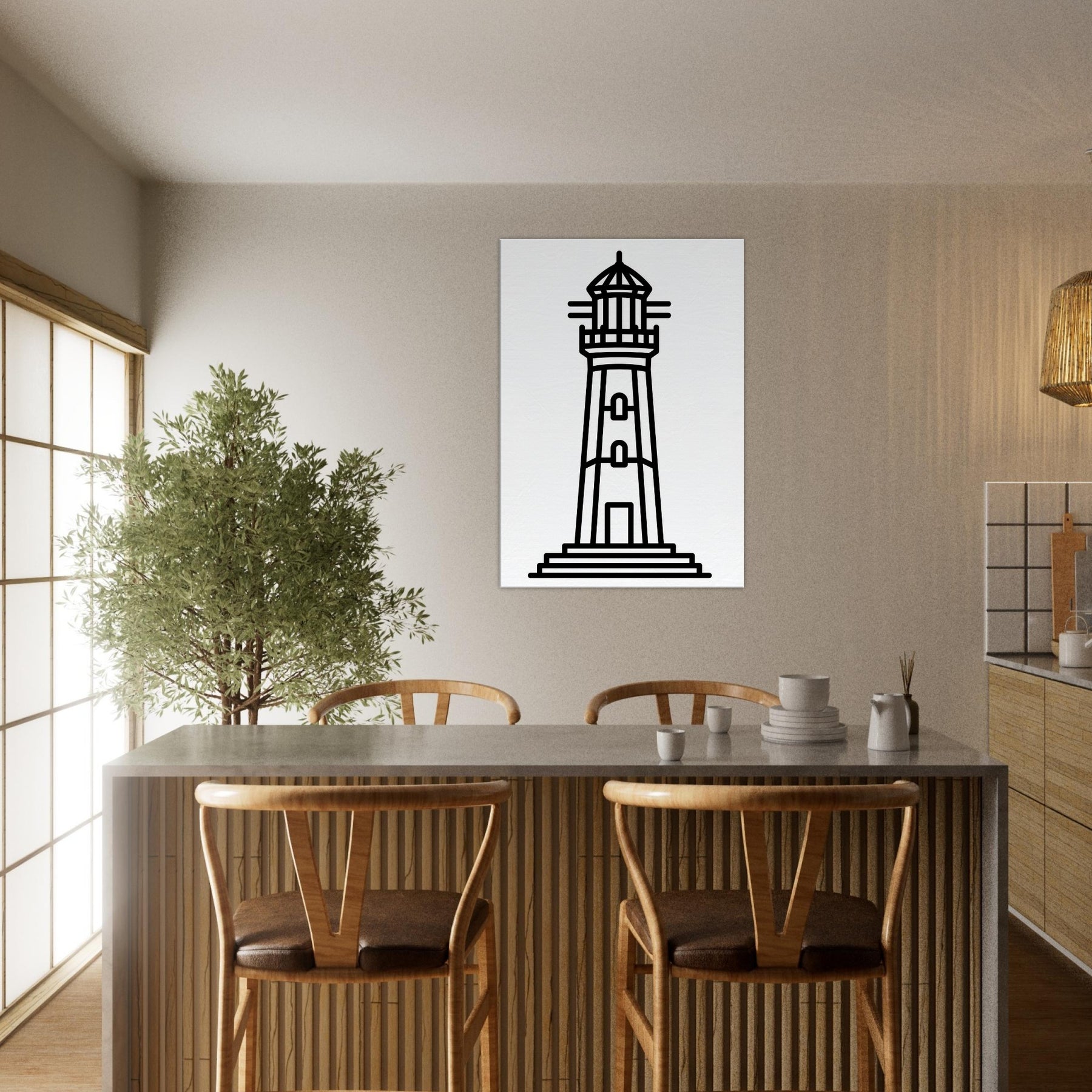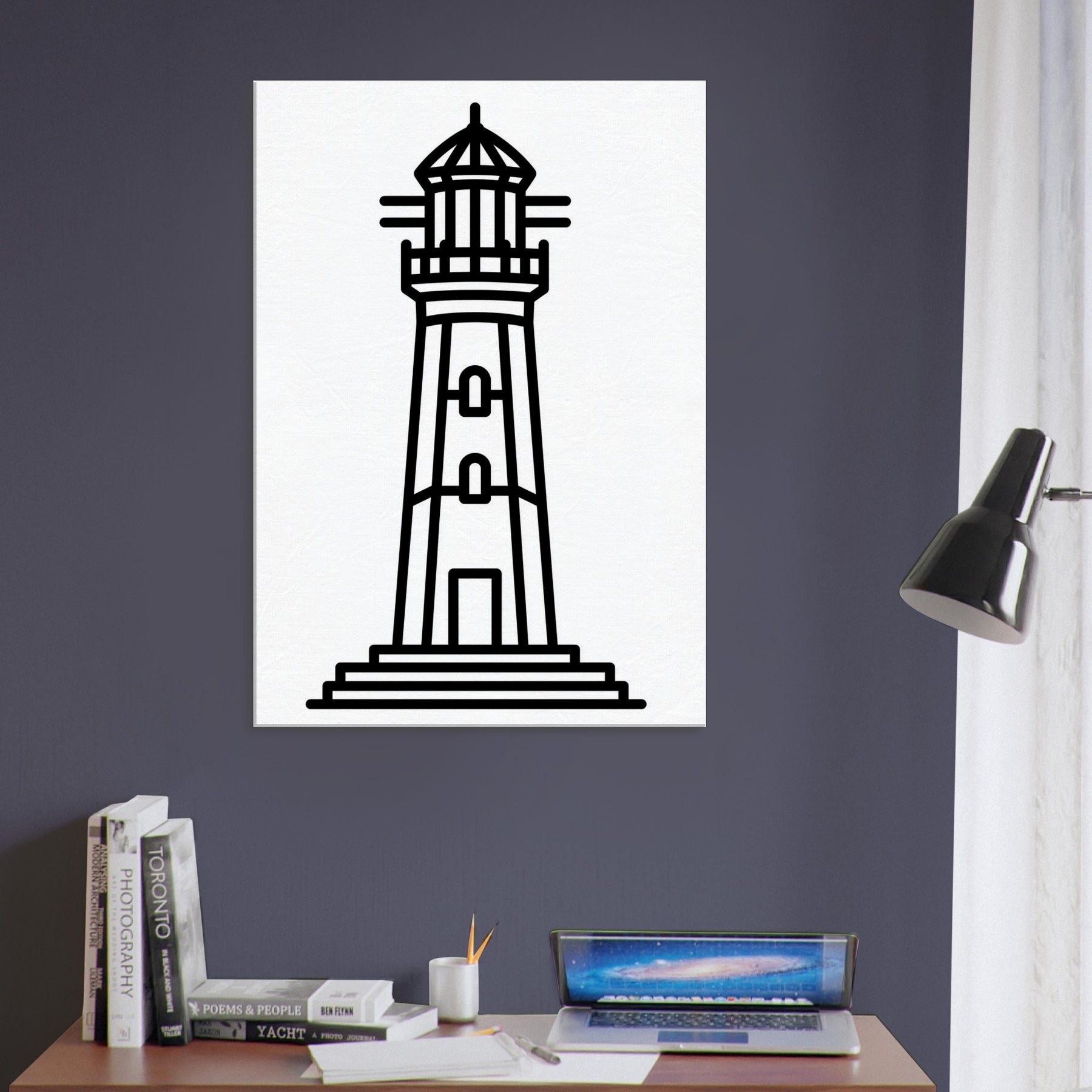 This lighthouse line art captures the quiet drama of a coastal beacon with bold, clean strokes that feel both timeless and modern. The stark silhouette exudes calm, like a steady harbor after a long day, filling your living space with maritime clarity and gentle rhythm. Its pared back design invites focus, enhancing walls without shouting. Place it above a sofa or entryway to anchor a palette of neutrals or navy, and let the simple lines guide the eye toward serenity. A subtle, memorable statement that makes every room feel more spacious and refined.