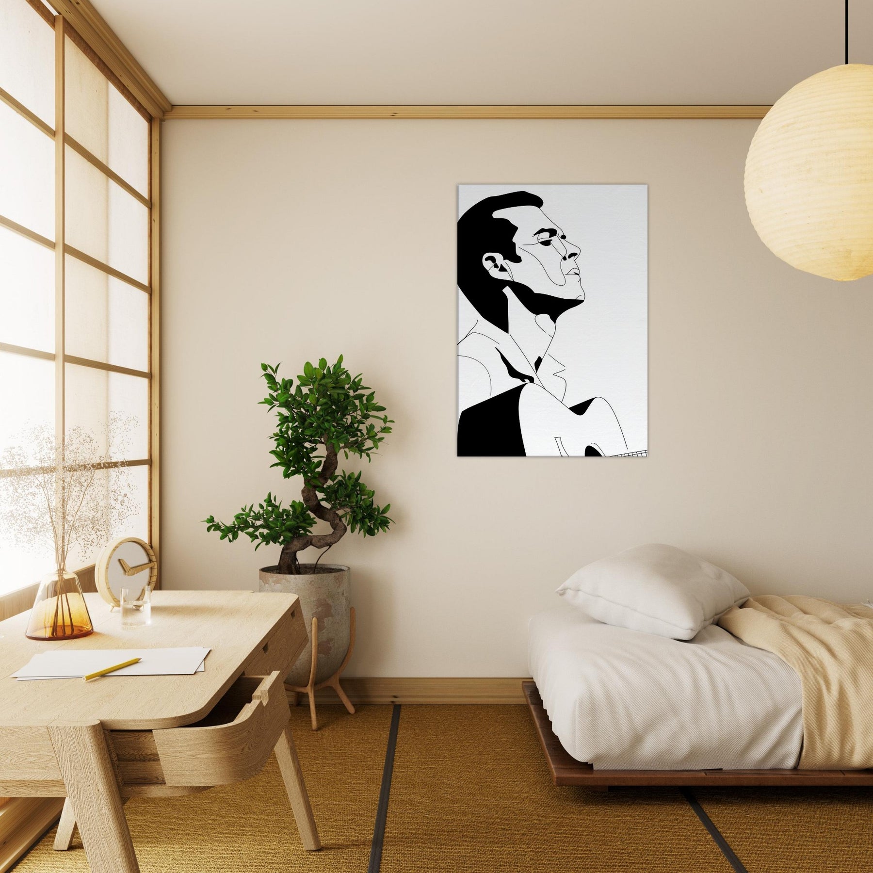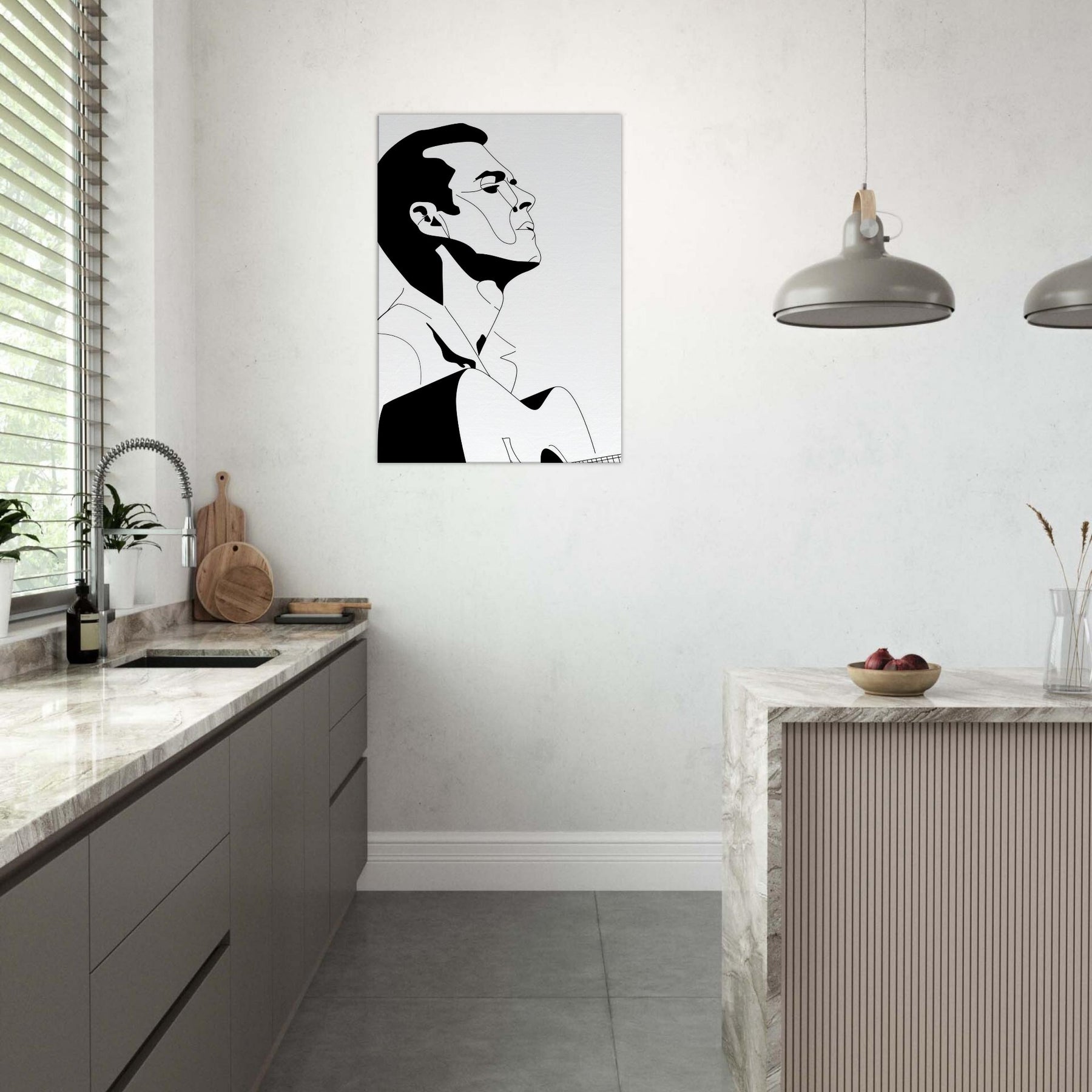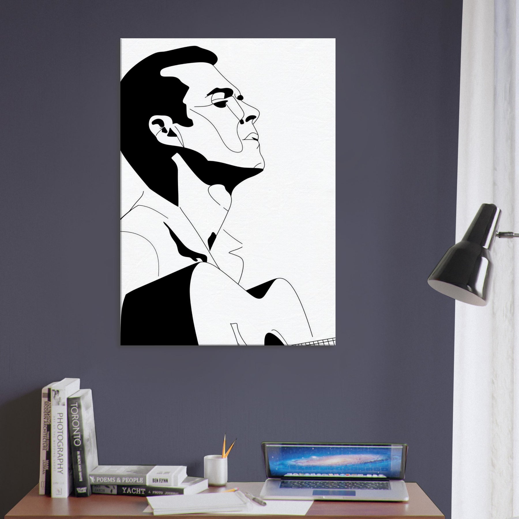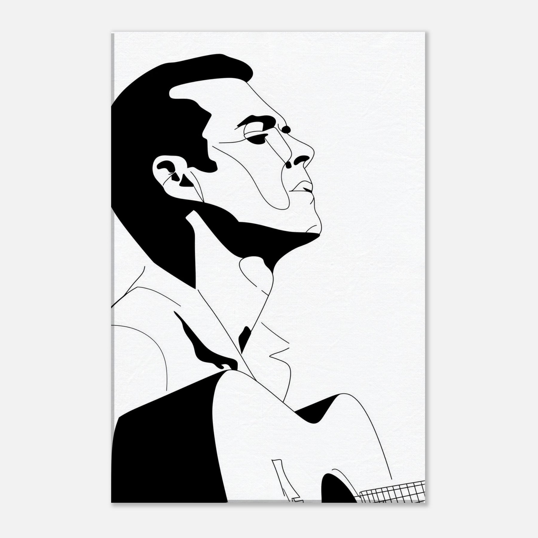 Immerse your space in the quiet drama of a Guitarist captured in bold, graceful linework. This line art strips gesture to its essence: a focused breath, a poised neck, a guitar cradled in shadow and light. The stark black and white palette creates a refined contrast that feels both intimate and expansive, echoing a concert hall at dusk or a sunlit studio. Perfect above a sofa or in a minimalist hallway, it invites contemplation, turns everyday moments into a performance, and lets music linger in the room.