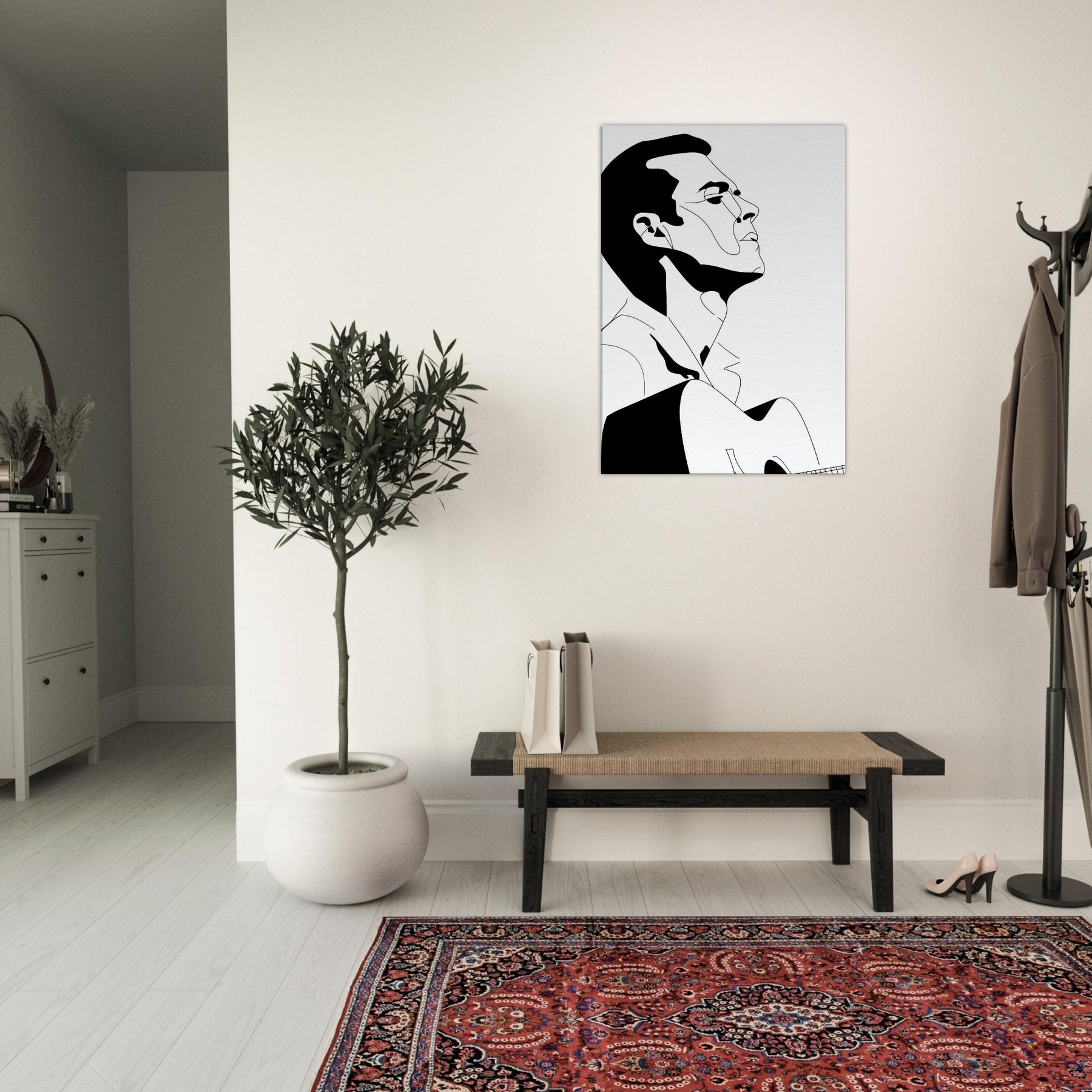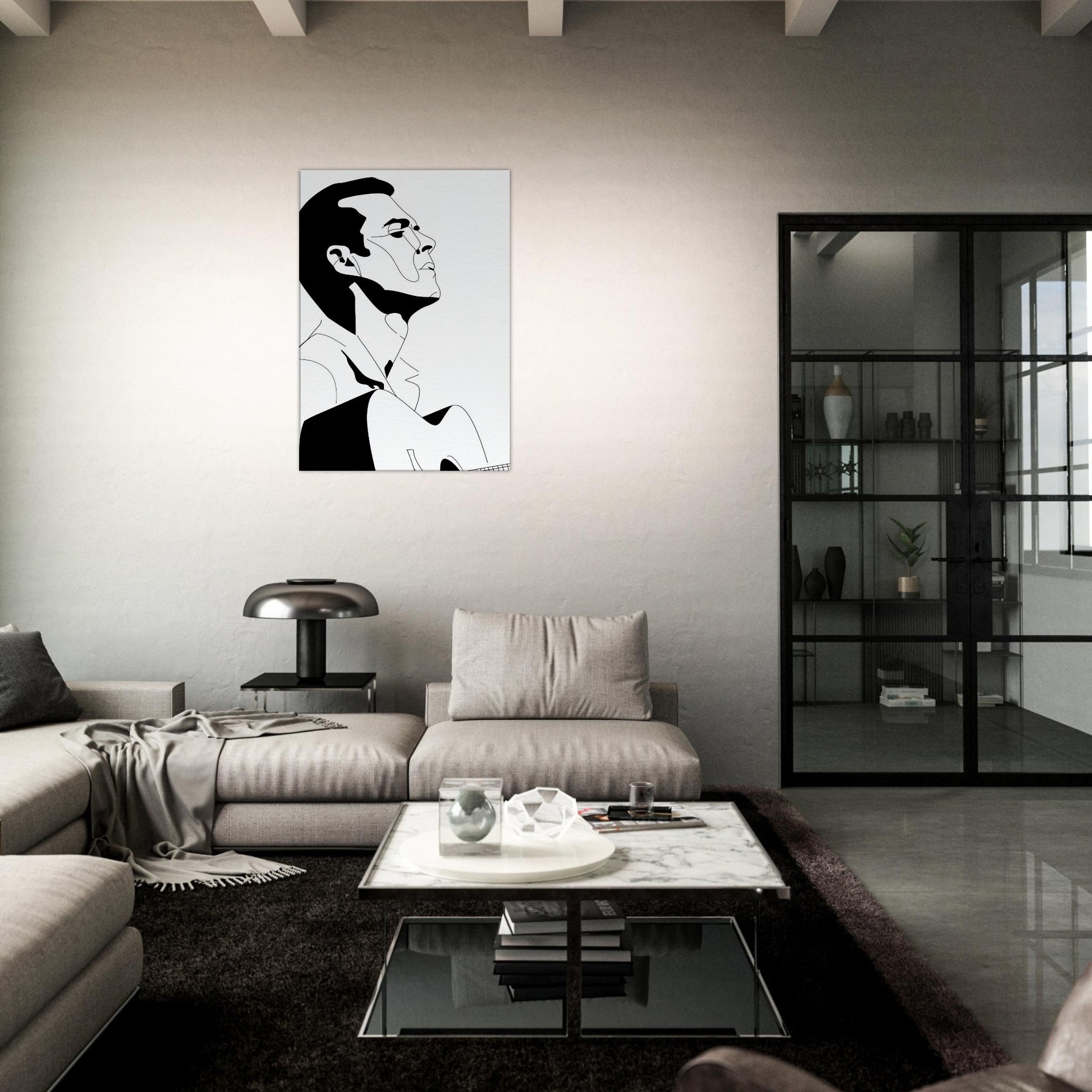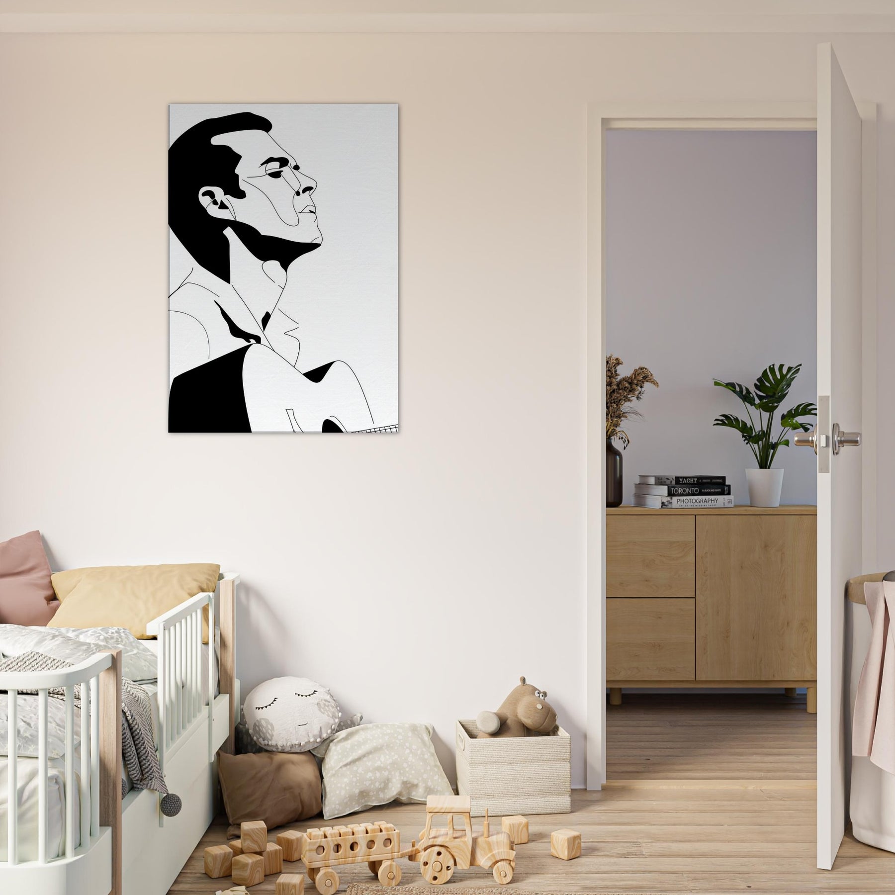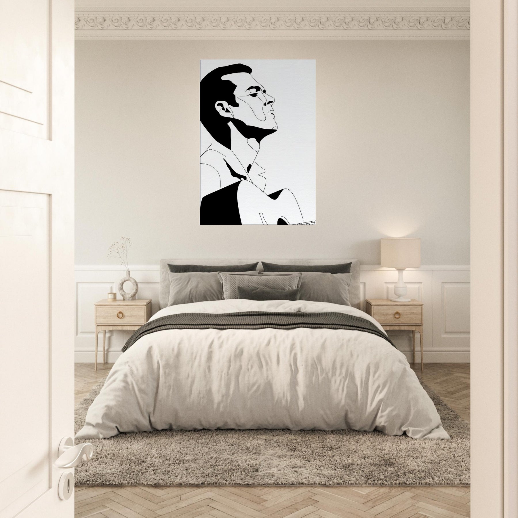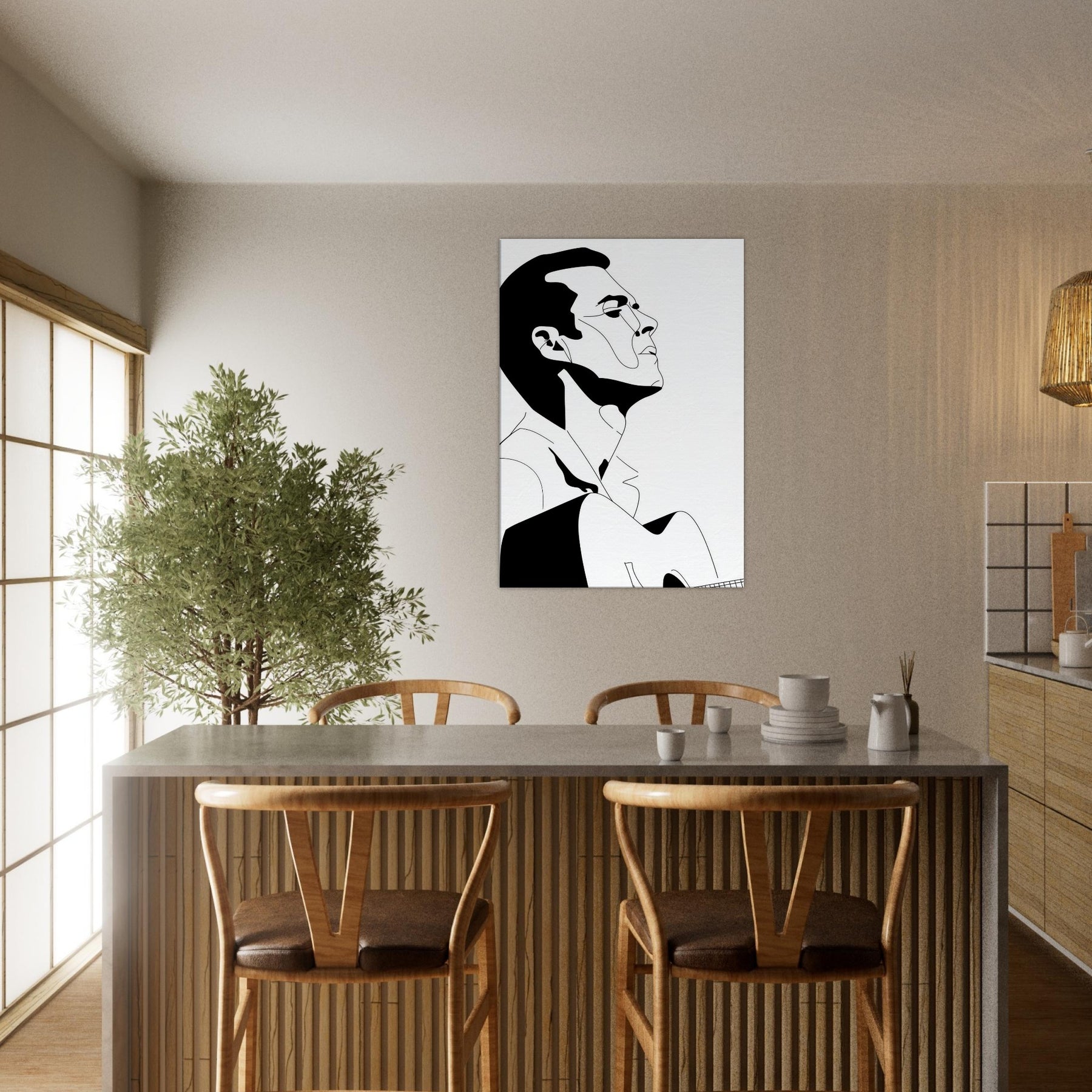 Immerse your space in the quiet drama of a Guitarist captured in bold, graceful linework. This line art strips gesture to its essence: a focused breath, a poised neck, a guitar cradled in shadow and light. The stark black and white palette creates a refined contrast that feels both intimate and expansive, echoing a concert hall at dusk or a sunlit studio. Perfect above a sofa or in a minimalist hallway, it invites contemplation, turns everyday moments into a performance, and lets music linger in the room.