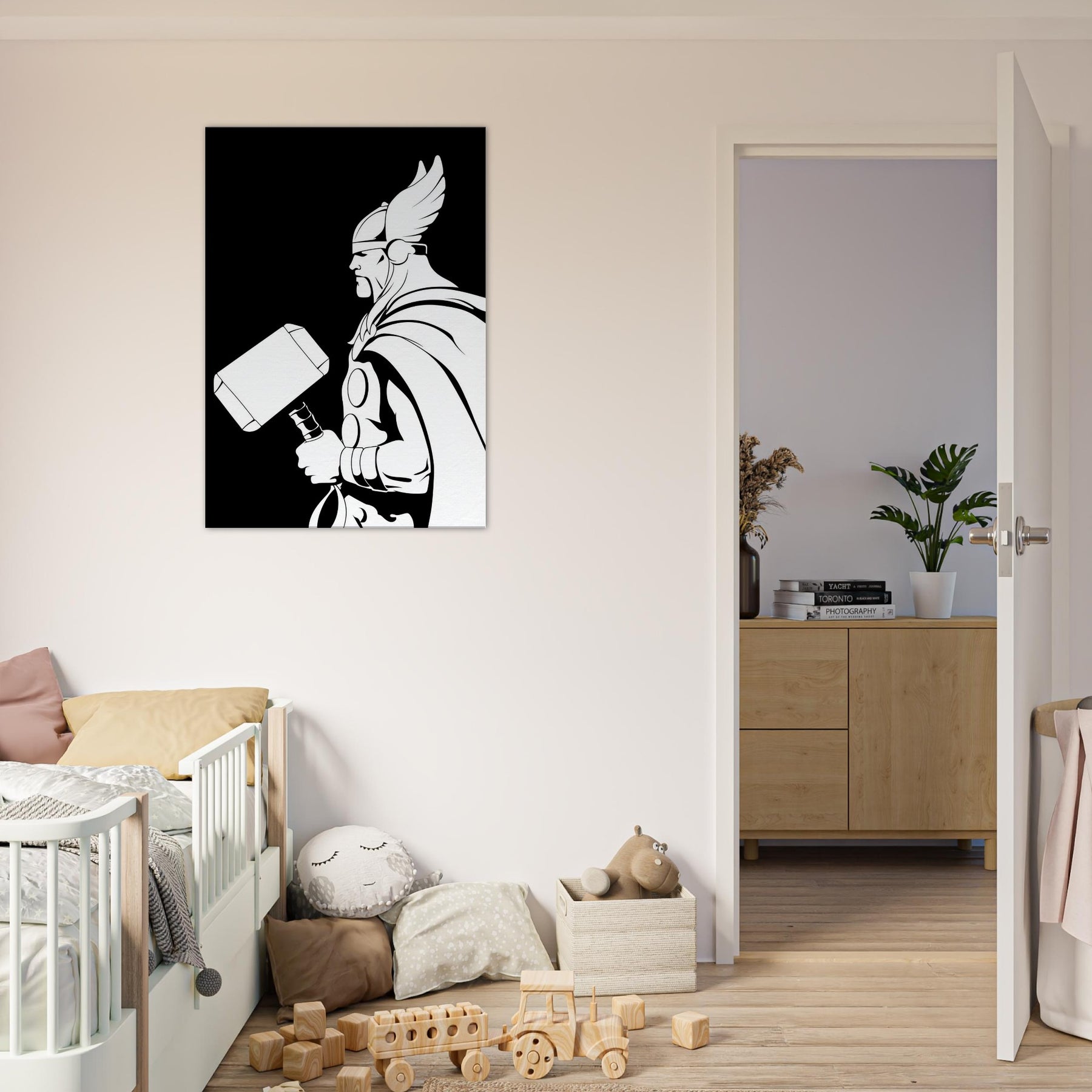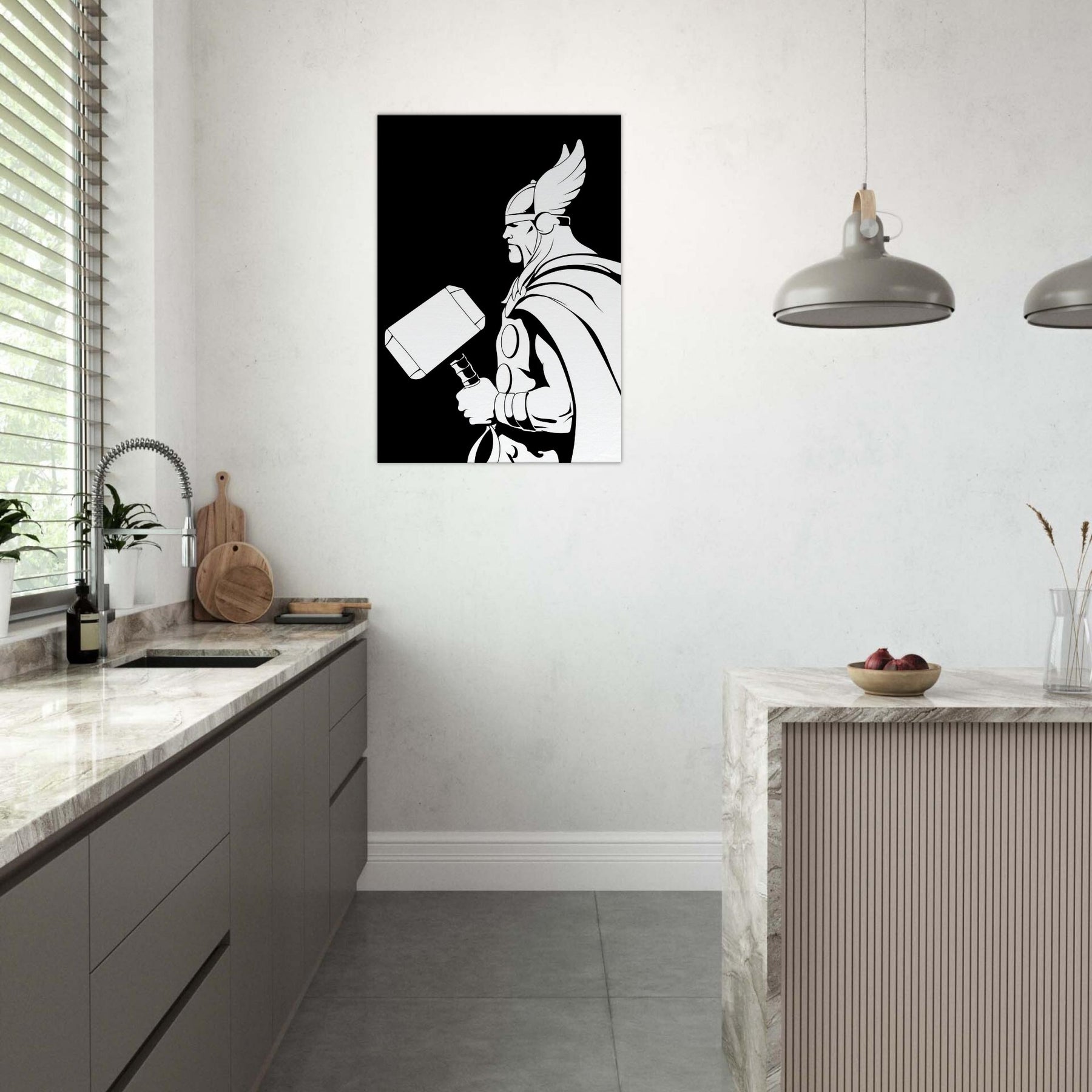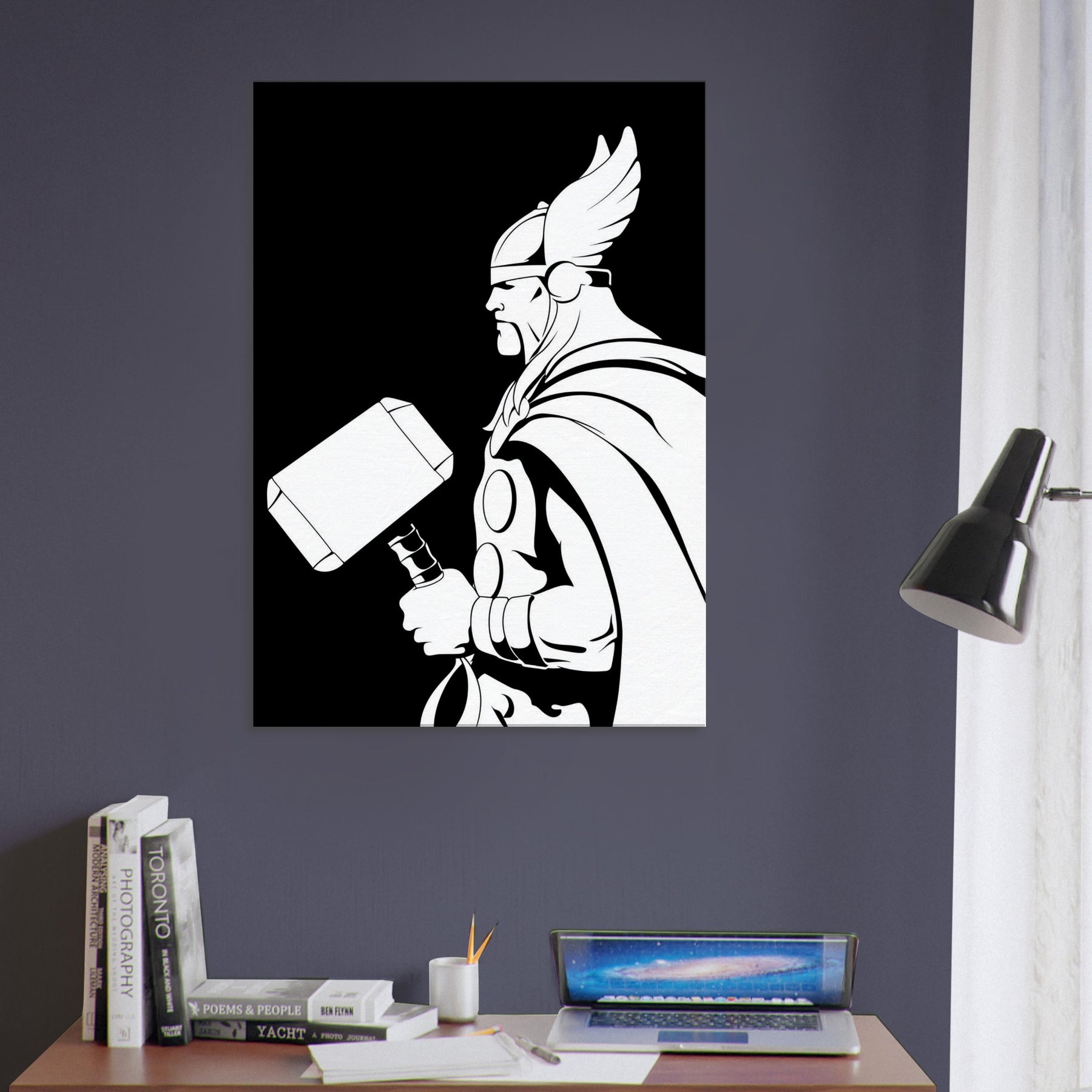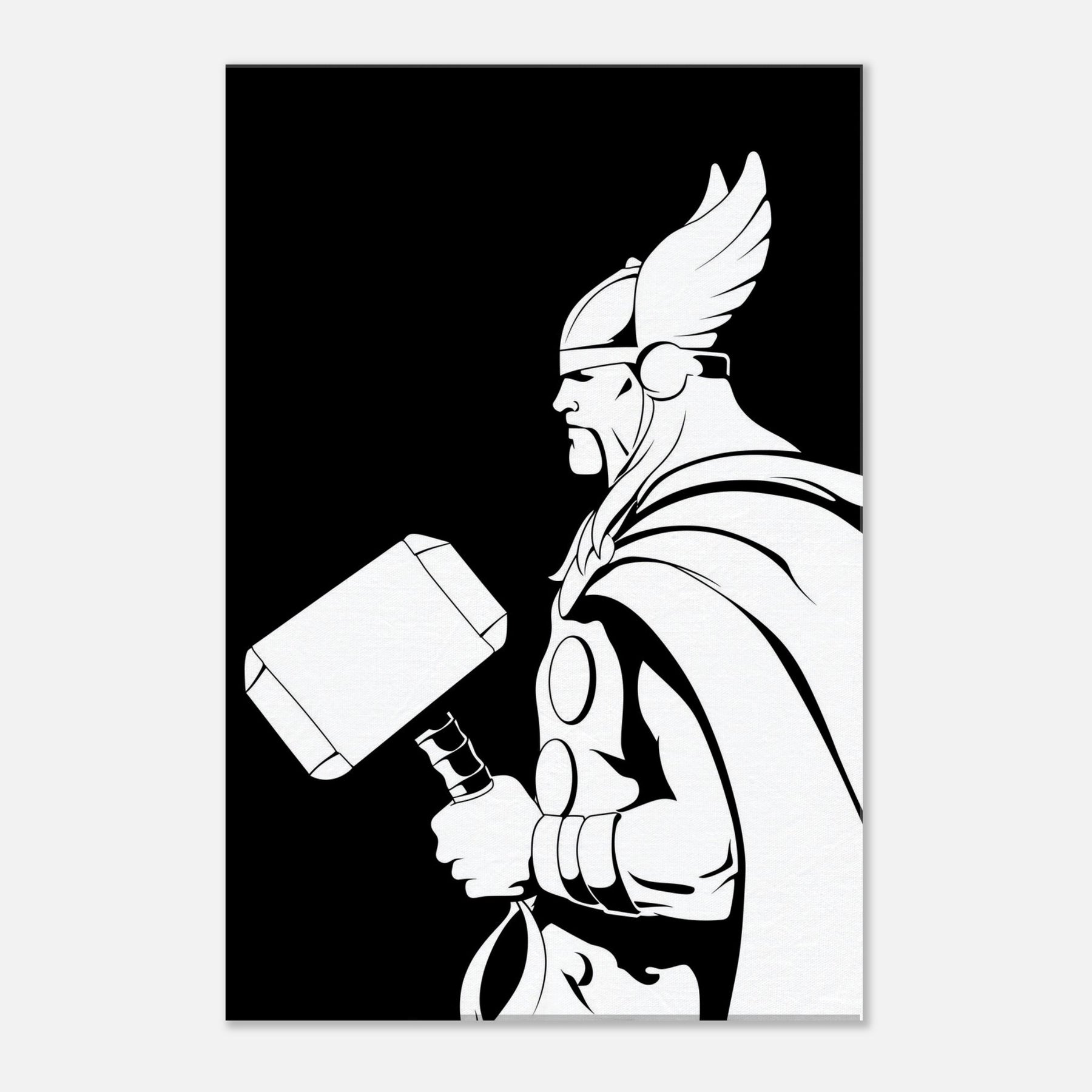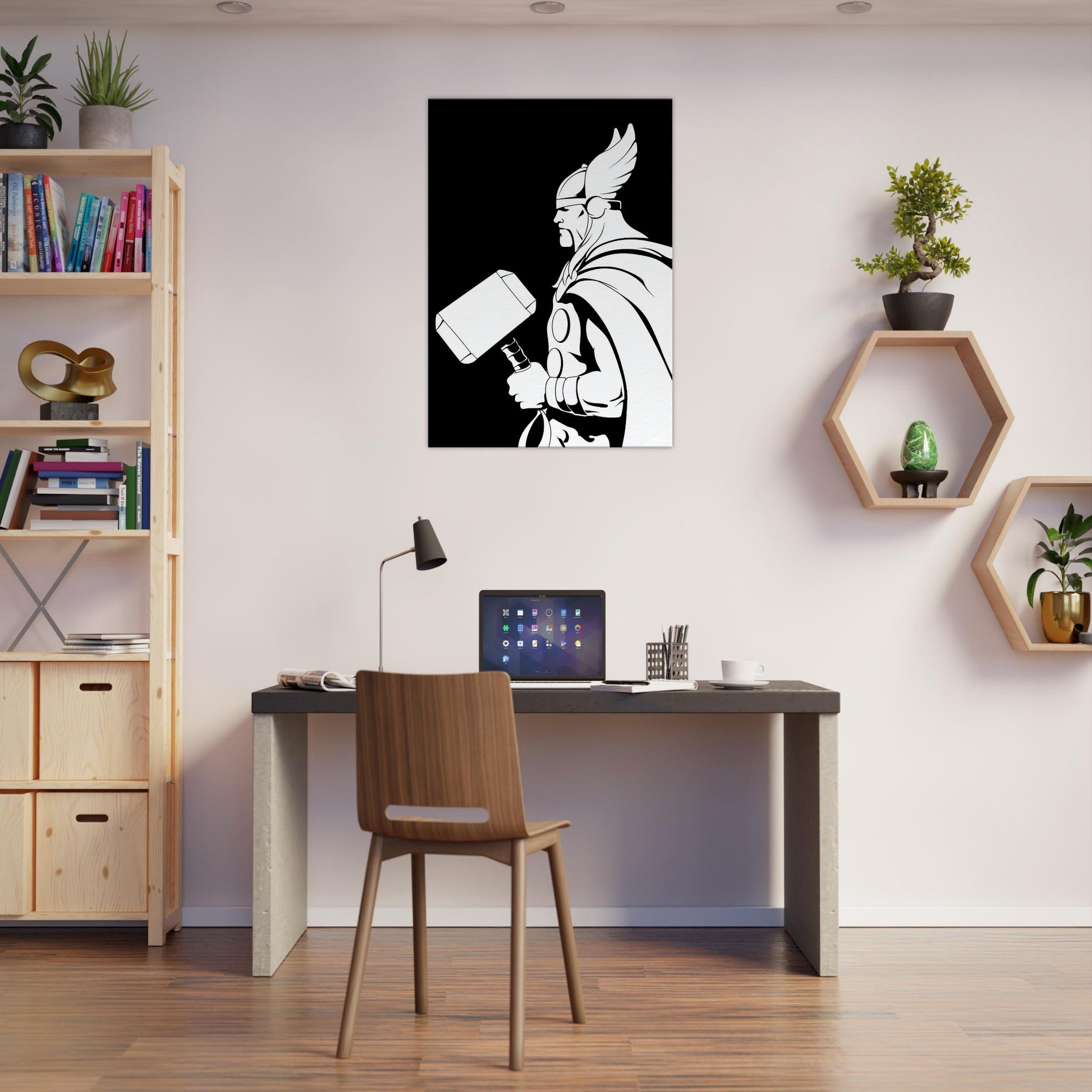 Thor, God of Thunder Wielding Mjölnir steps forward in pure line, a silhouette carved with rhythm and resolve. This striking black and white study bends light and shadow into a single, electric gesture, inviting a room to pause and feel a quiet storm. The clean, continuous strokes make the subject feel monumental yet intimate, ideal for a modern living space or study. Hang it where the eye rests it's heighten atmosphere, spark imagination, and turn everyday walls into a gallery of myth and power.