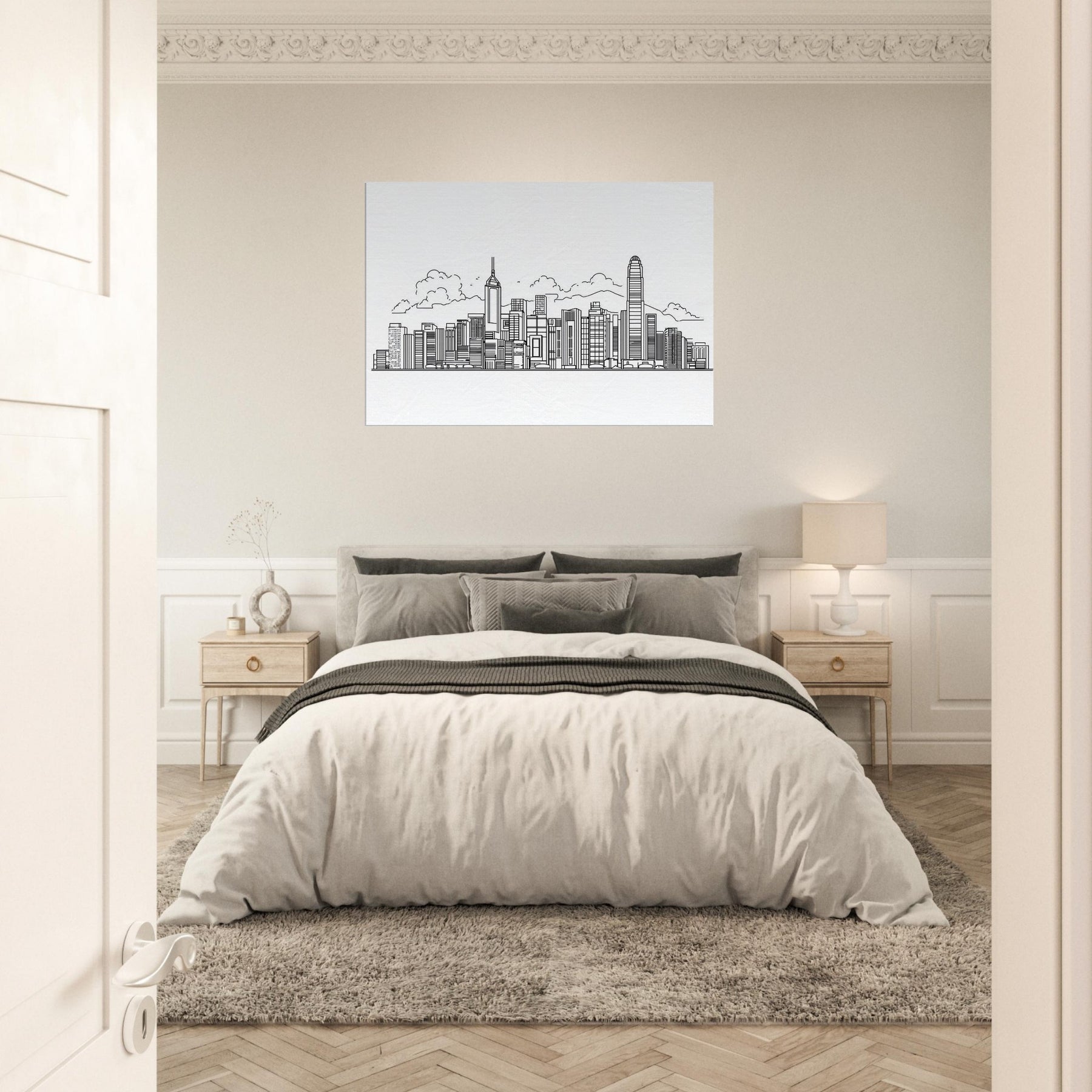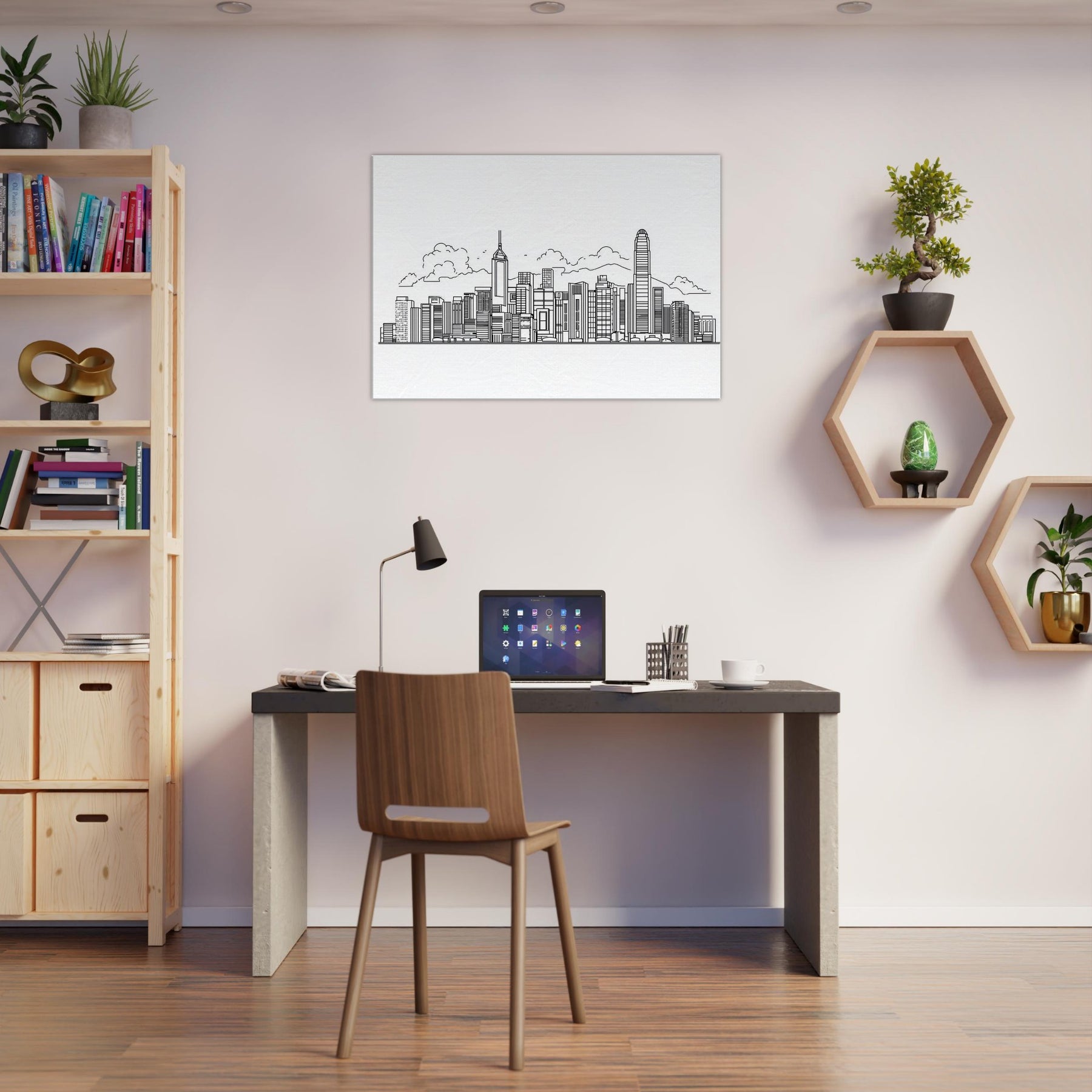 Drawn with a single, confident line, this Hong Kong skyline captures the city’s rhythm in clean, unbroken strokes. The absence of color invites light to do the talking, turning windows and towers into a quiet chorus of geometry and breath. Hang it in a living room or study to evoke a harbor breeze, midnight neon, and the promise of new avenues. The piece pairs effortlessly with neutral tones, elevating urban energy into a refined, contemplative backdrop for everyday moments.