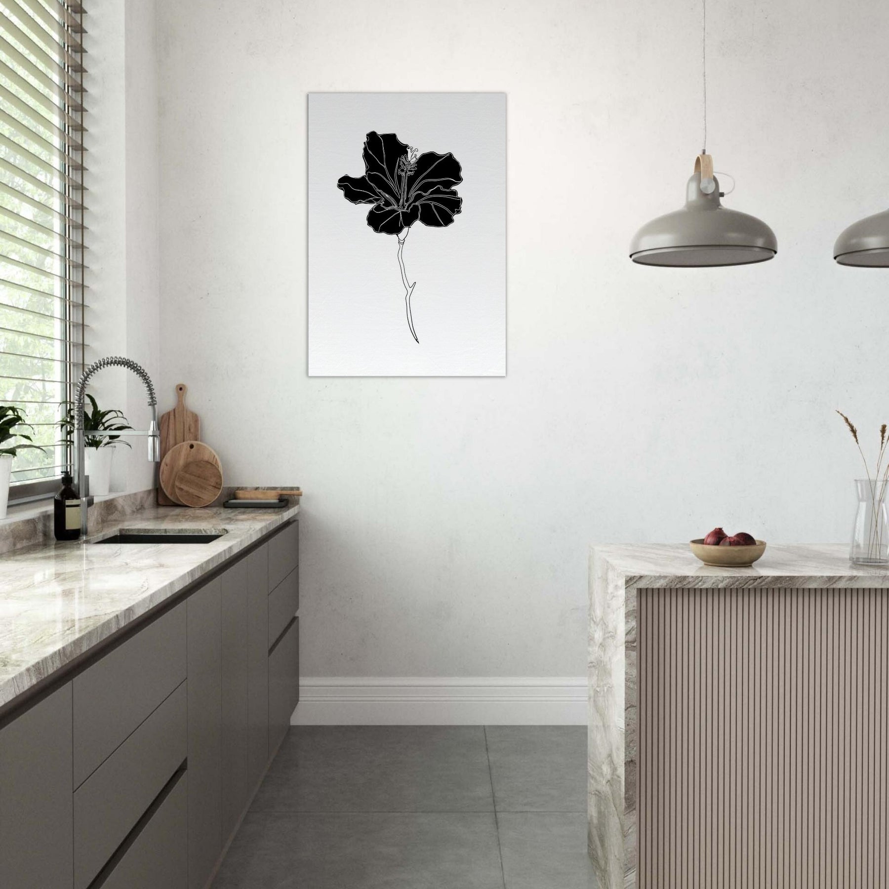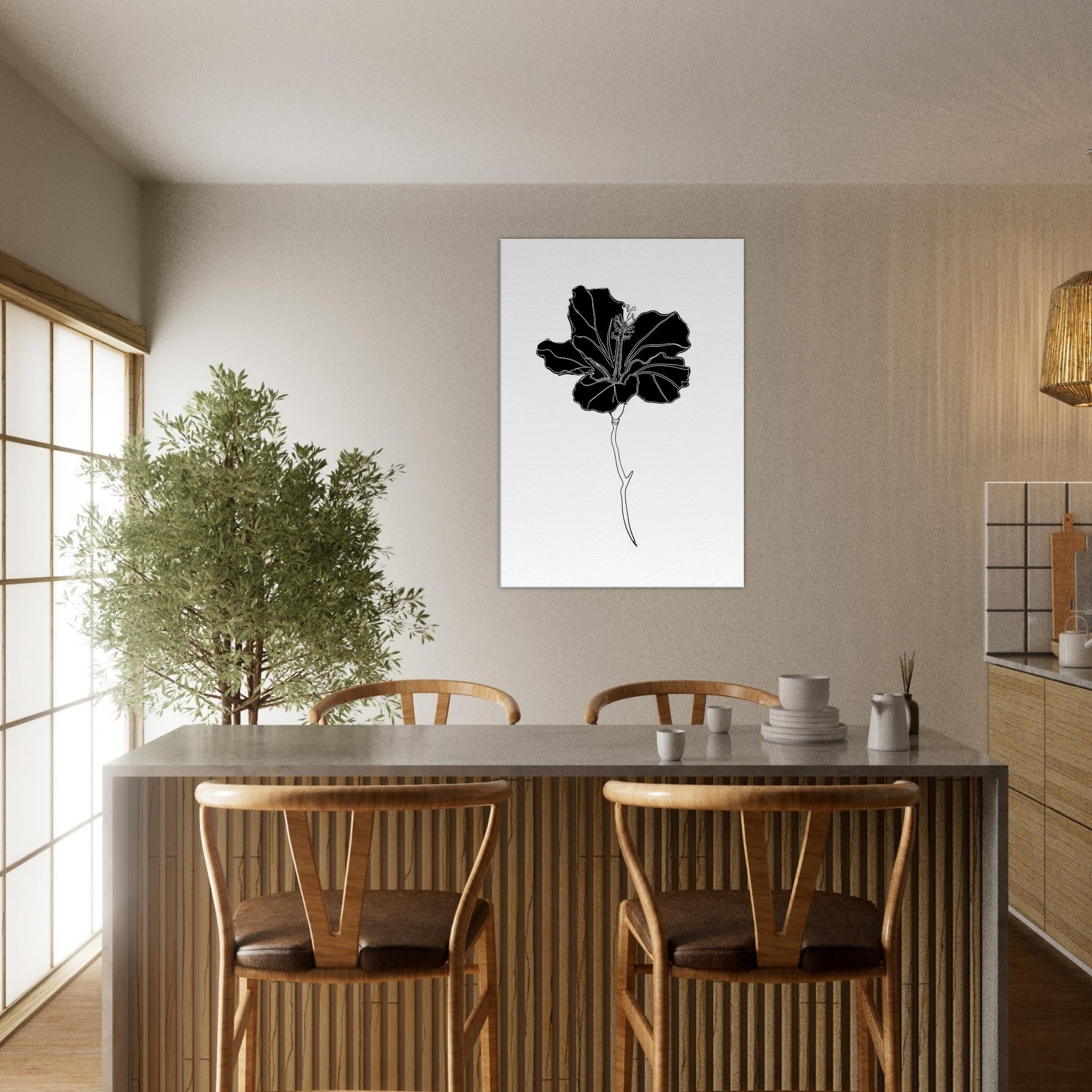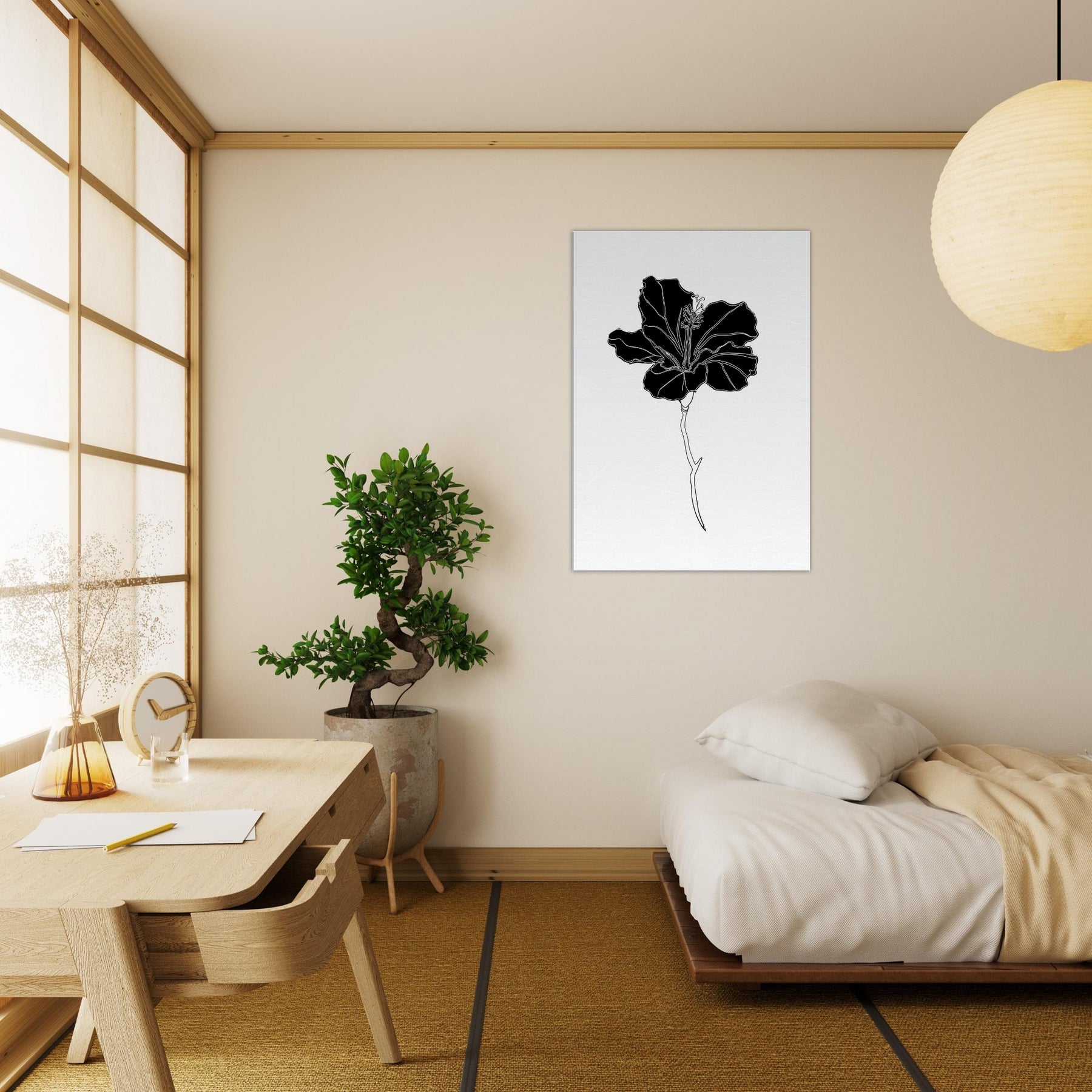 Immerse your space in the quiet drama of a Hibiscus rendered with a single, confident line. This elegant study of petals and stem creates a moment of calm, where negative space breathes and the eye follows rhythmic curves. The stark black ink against white evokes timeless simplicity, inviting contemplation without shouting. Perfect above a sofa or bedside, it pairs with contemporary furnishings to soften angles with botanical grace, turning a wall into a living breath of nature, with Hibiscus brought into everyday light.