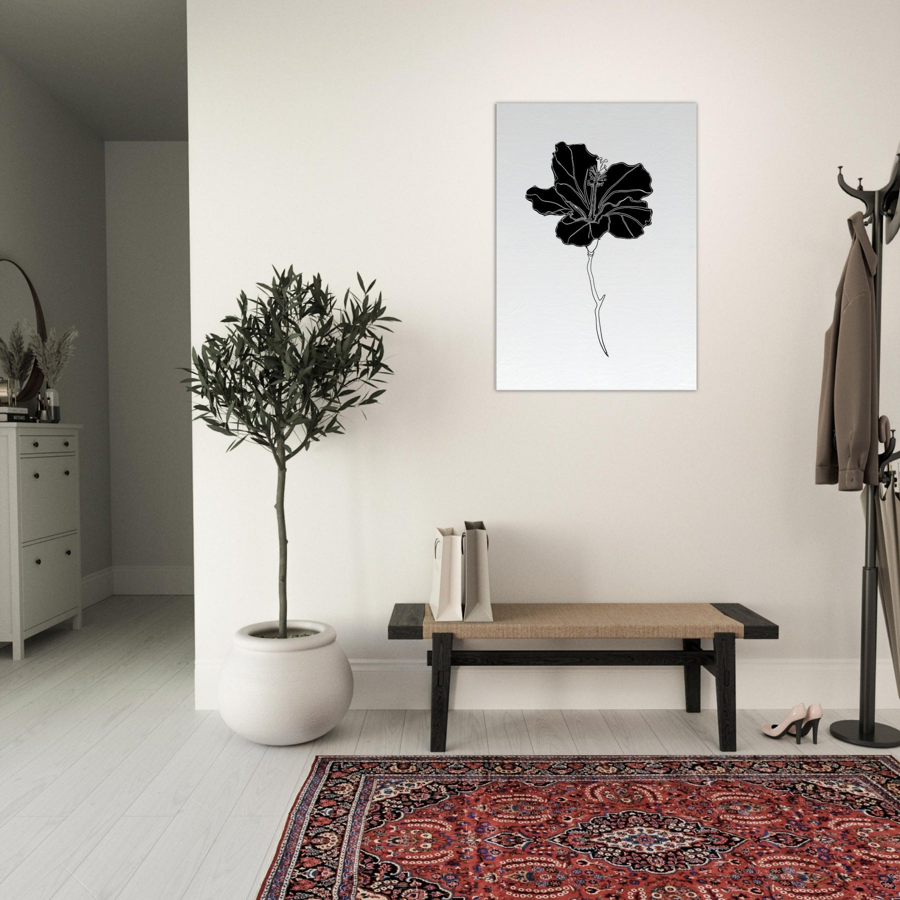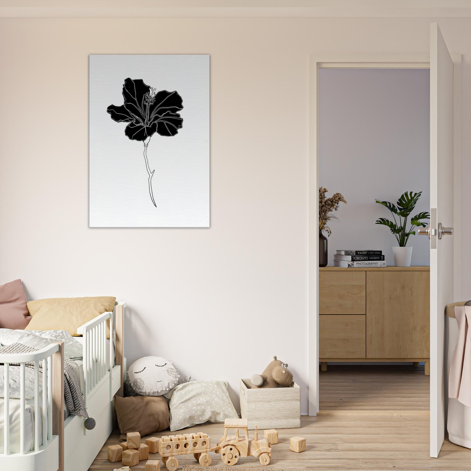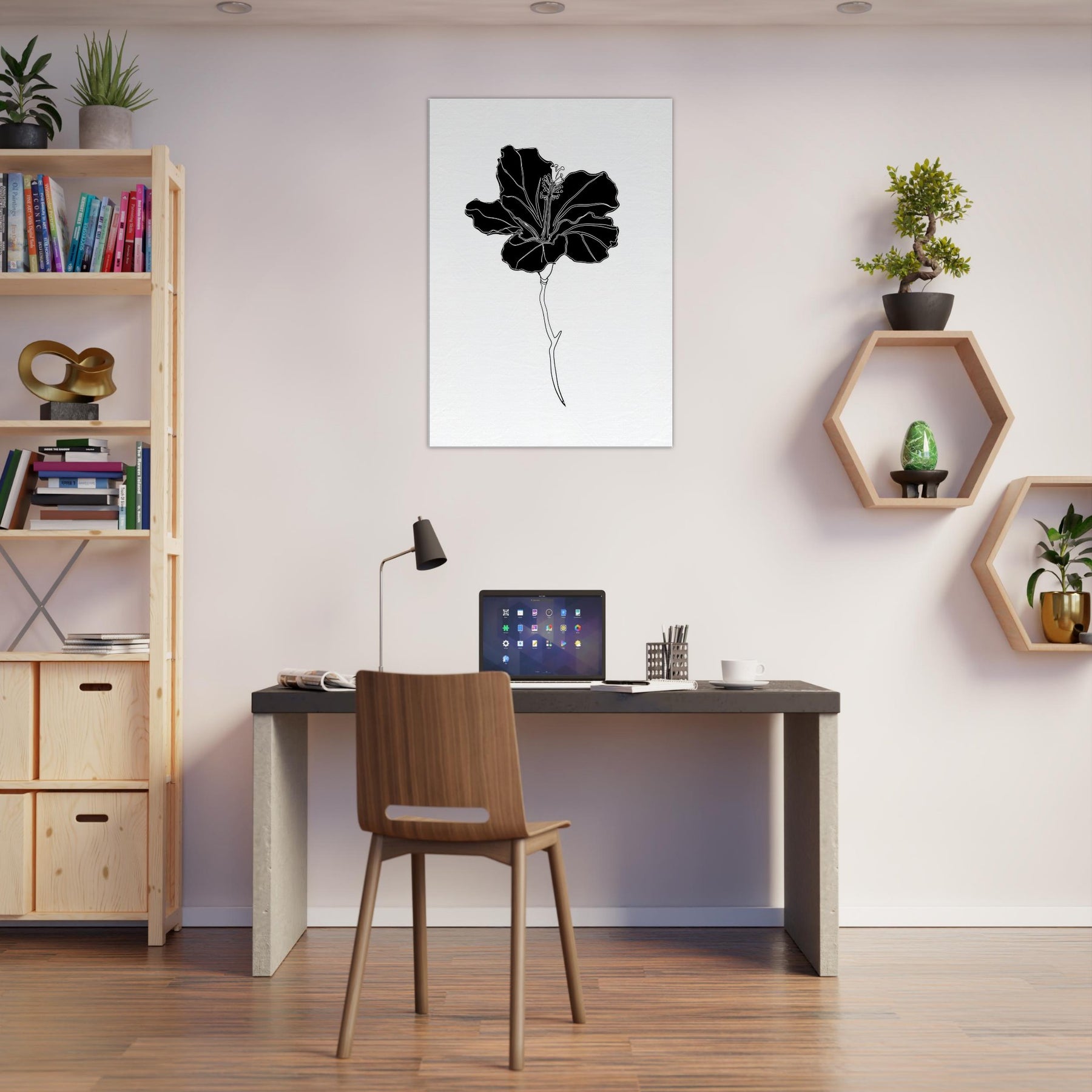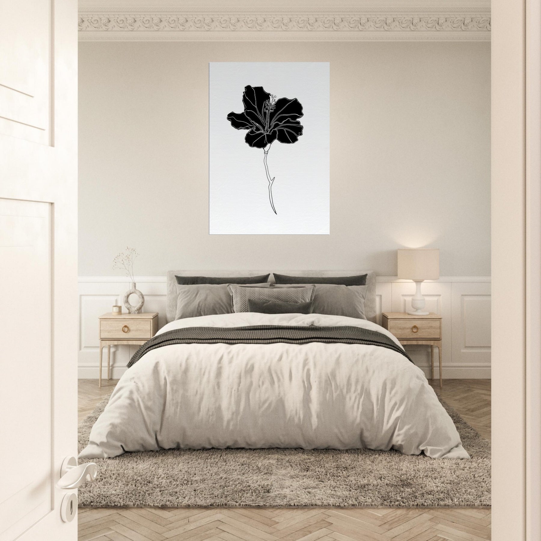Immerse your space in the quiet drama of a Hibiscus rendered with a single, confident line. This elegant study of petals and stem creates a moment of calm, where negative space breathes and the eye follows rhythmic curves. The stark black ink against white evokes timeless simplicity, inviting contemplation without shouting. Perfect above a sofa or bedside, it pairs with contemporary furnishings to soften angles with botanical grace, turning a wall into a living breath of nature, with Hibiscus brought into everyday light.