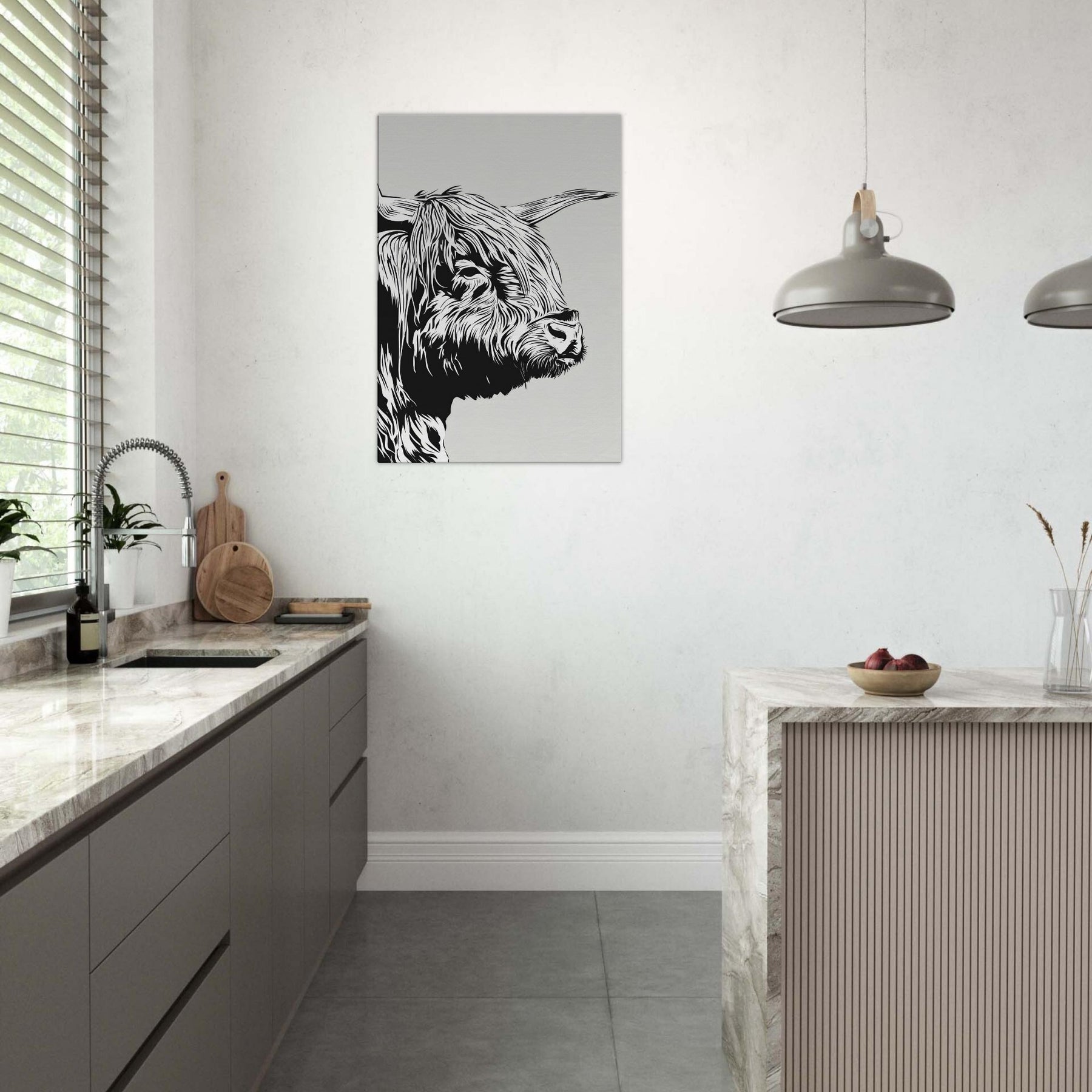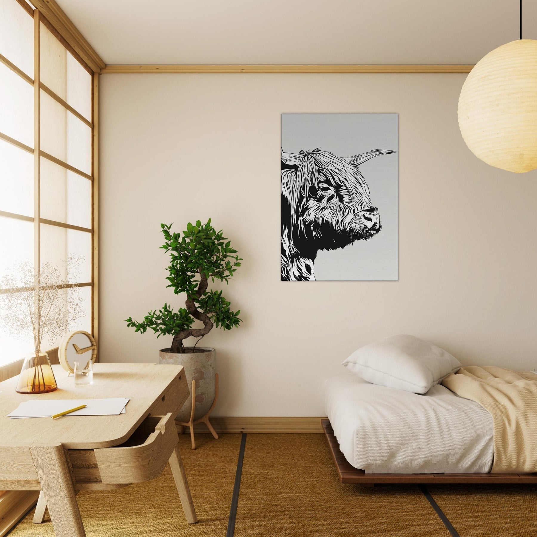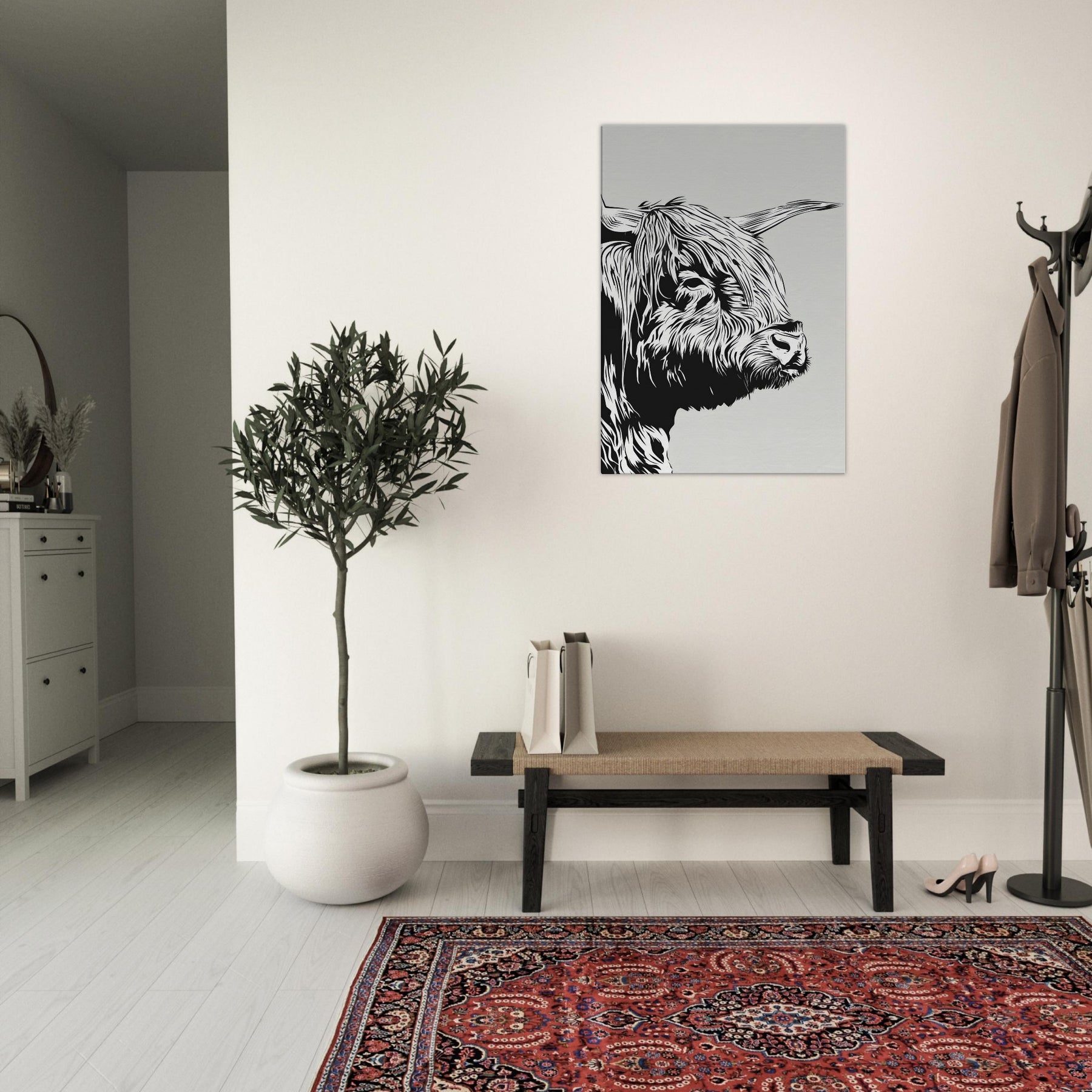 Step close and feel the quiet strength of the Highland Cow rendered in elegant line work. This monochrome study breathes poetry into space, with bold, sweeping strokes that suggest wind on the moors and the creature's steadfast gaze. The contrast of black on pale wall invites focus, while a generous negative space keeps the room airy. Perfect for living rooms, bedrooms, or hallways, it adds texture, calm, and a refined signature touch that enhances modern decor without shouting.