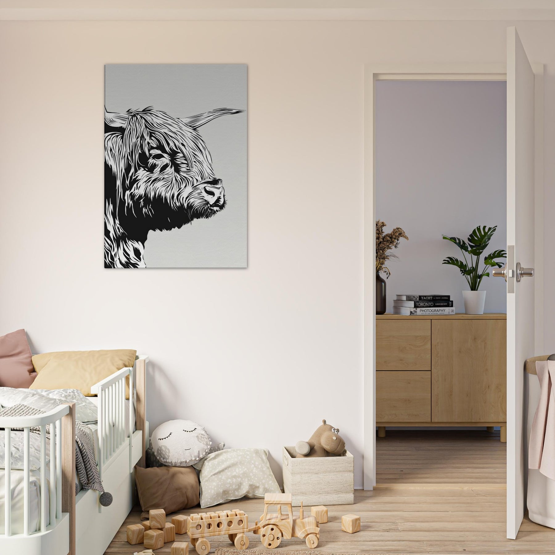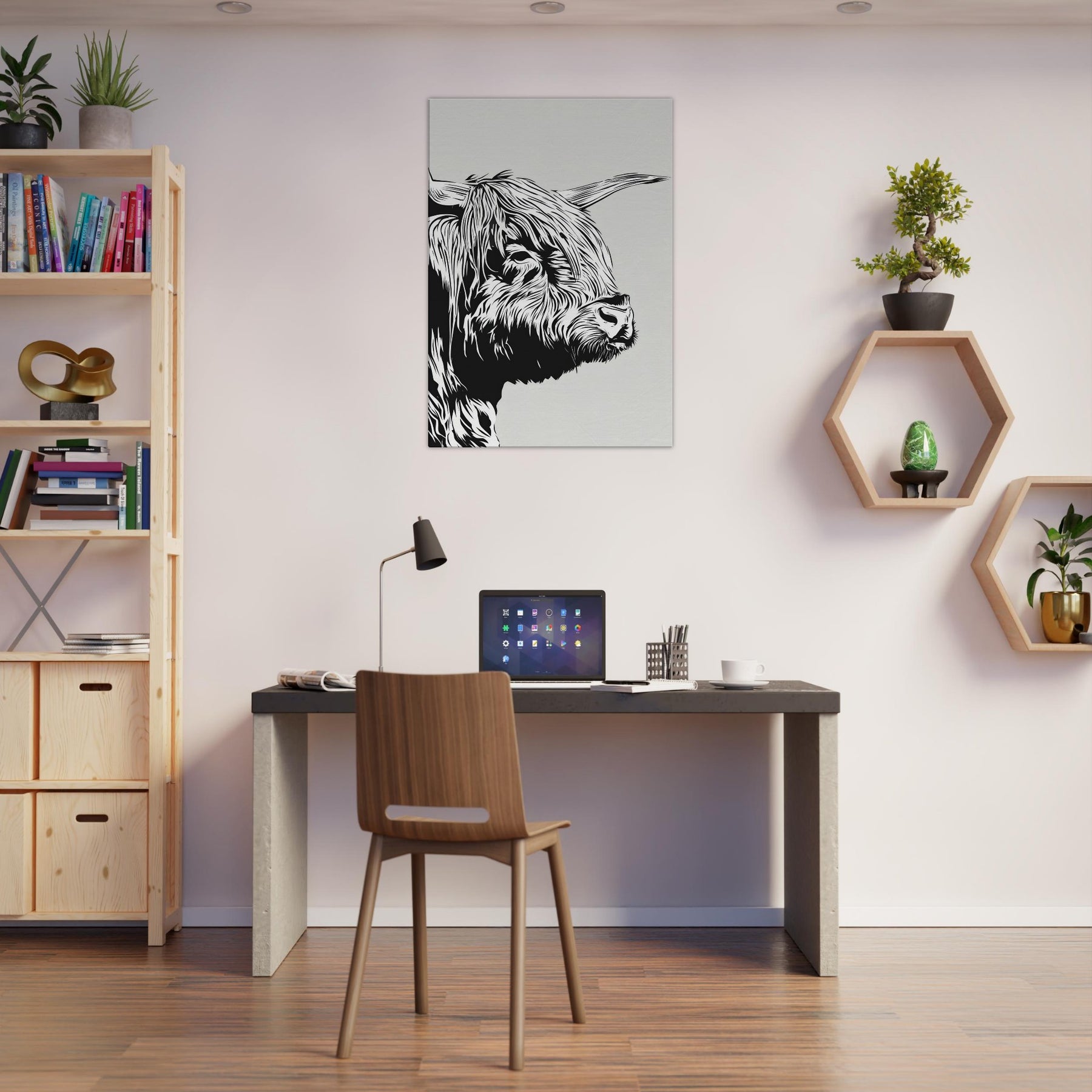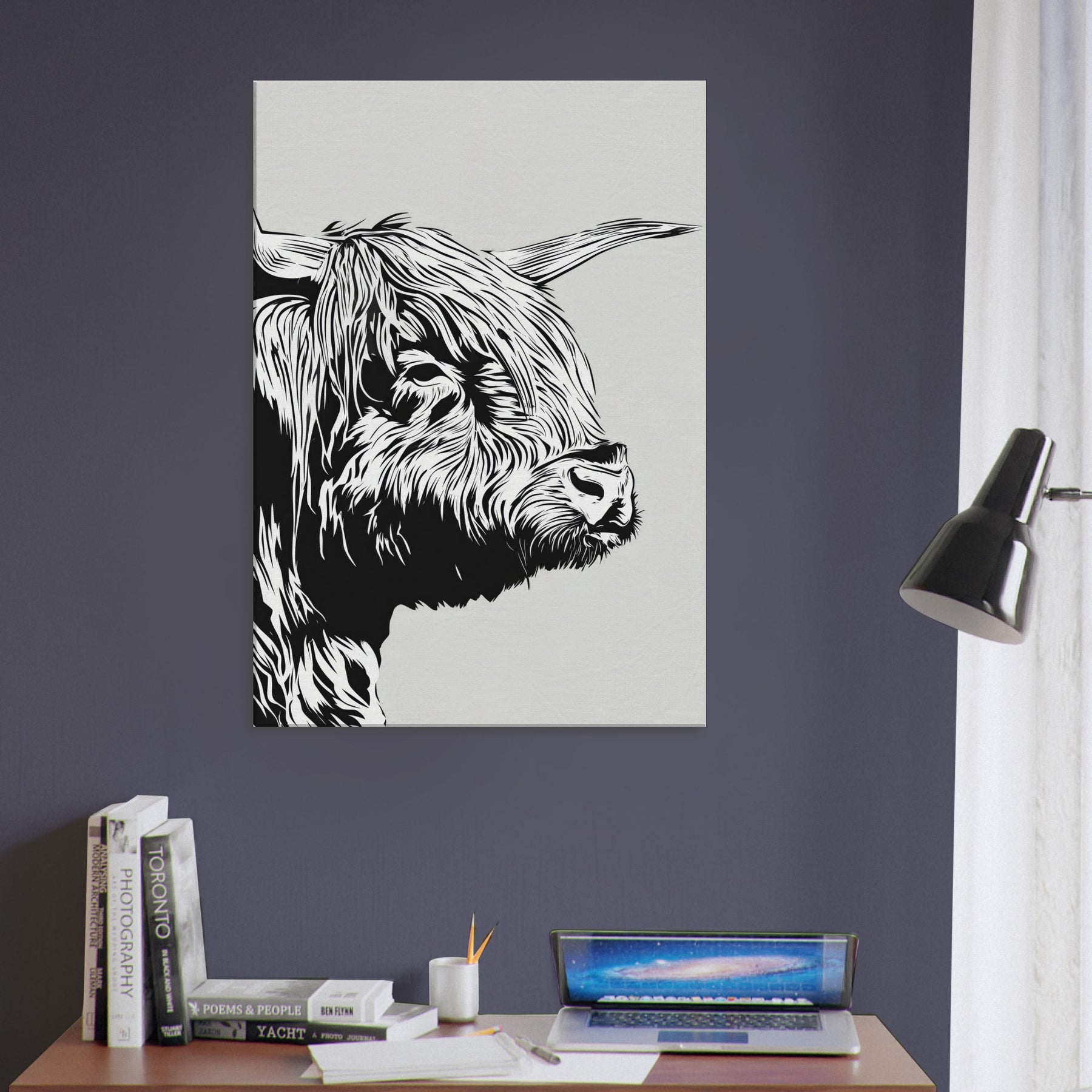 Step close and feel the quiet strength of the Highland Cow rendered in elegant line work. This monochrome study breathes poetry into space, with bold, sweeping strokes that suggest wind on the moors and the creature's steadfast gaze. The contrast of black on pale wall invites focus, while a generous negative space keeps the room airy. Perfect for living rooms, bedrooms, or hallways, it adds texture, calm, and a refined signature touch that enhances modern decor without shouting.