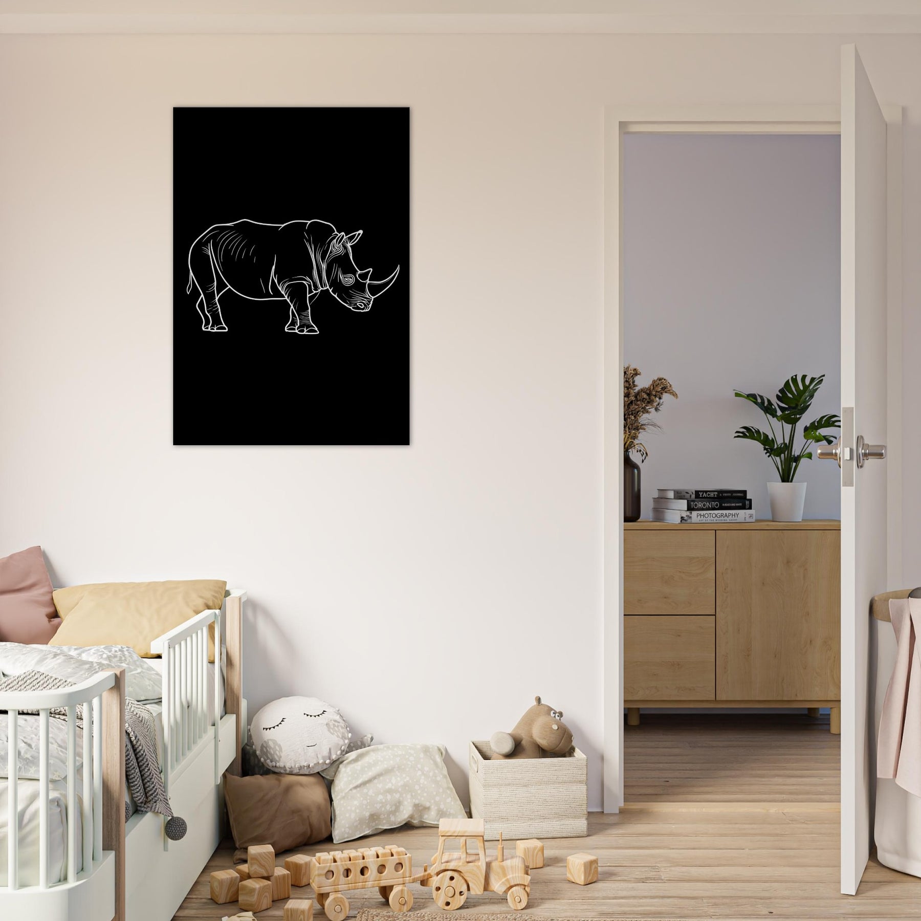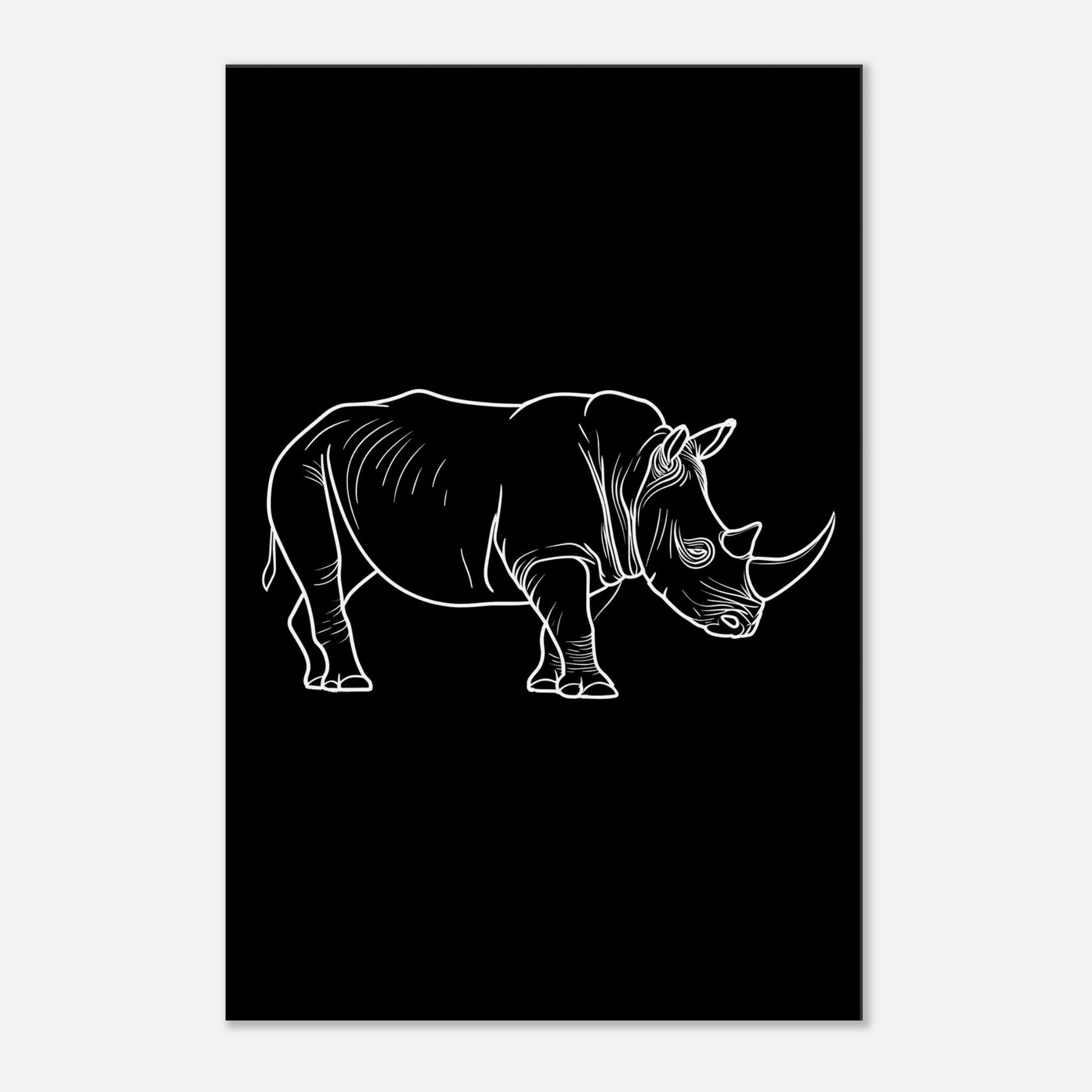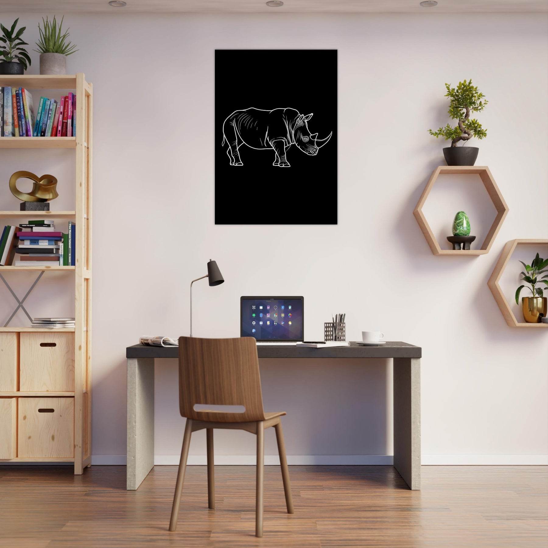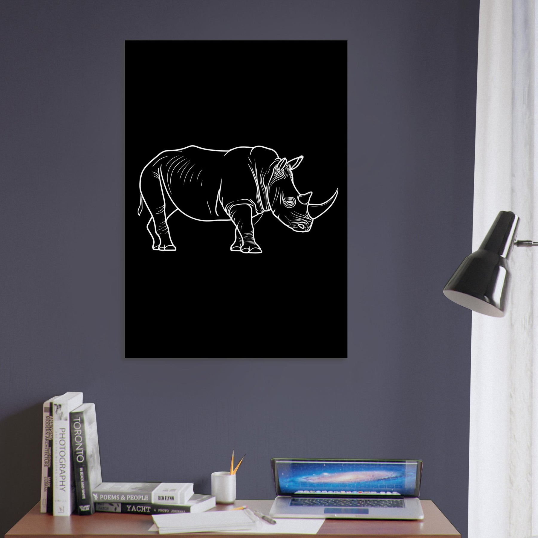 Immerse your space in quiet strength. This minimalist line drawing captures the Rhinoceros in a single stroke of luminous white against a velvet black background, creating a contemplative mood that feels at once intimate and expansive. The clean, uncluttered form invites reflection, turning walls into a gallery of calm. Perfect for a living room or study, it pairs with warm woods and airy textiles, elevating the atmosphere without shouting for attention.