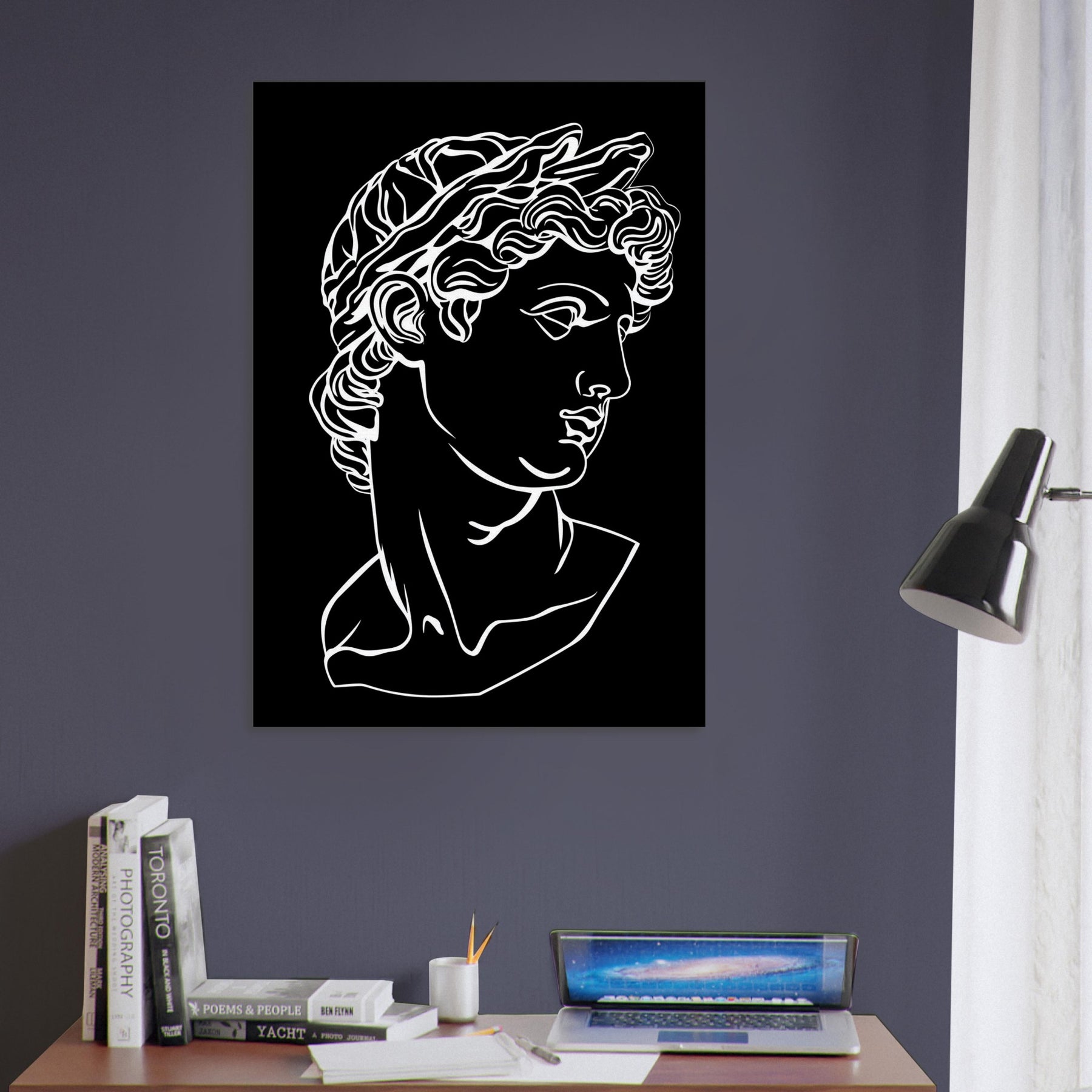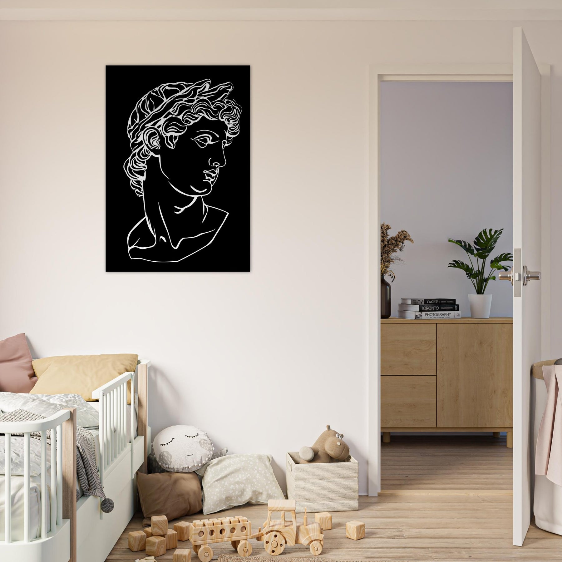 Sink into the quiet drama of Mythical Figures (Venus, David) rendered in a single, continuous line. This elegant monochrome study captures delicacy and strength in a barely there silhouette, inviting the eye to wander along each curve. Hang it in a sunlit living room to create a refined, gallery like glow, or above a calm workspace to spark focus and imagination. The stark black and white contrast breathes modern grace into any decor, turning walls into a quiet sculpture of grace.