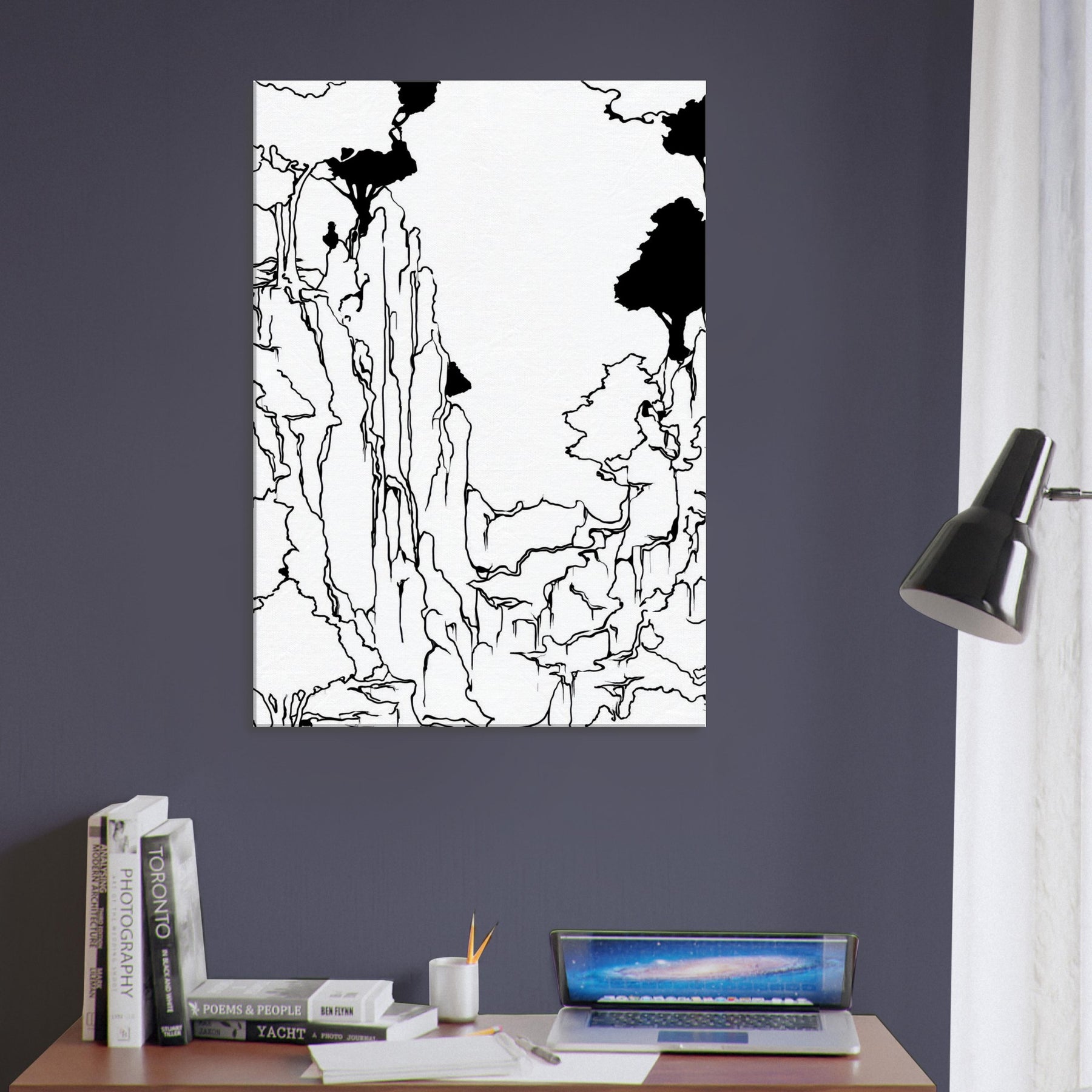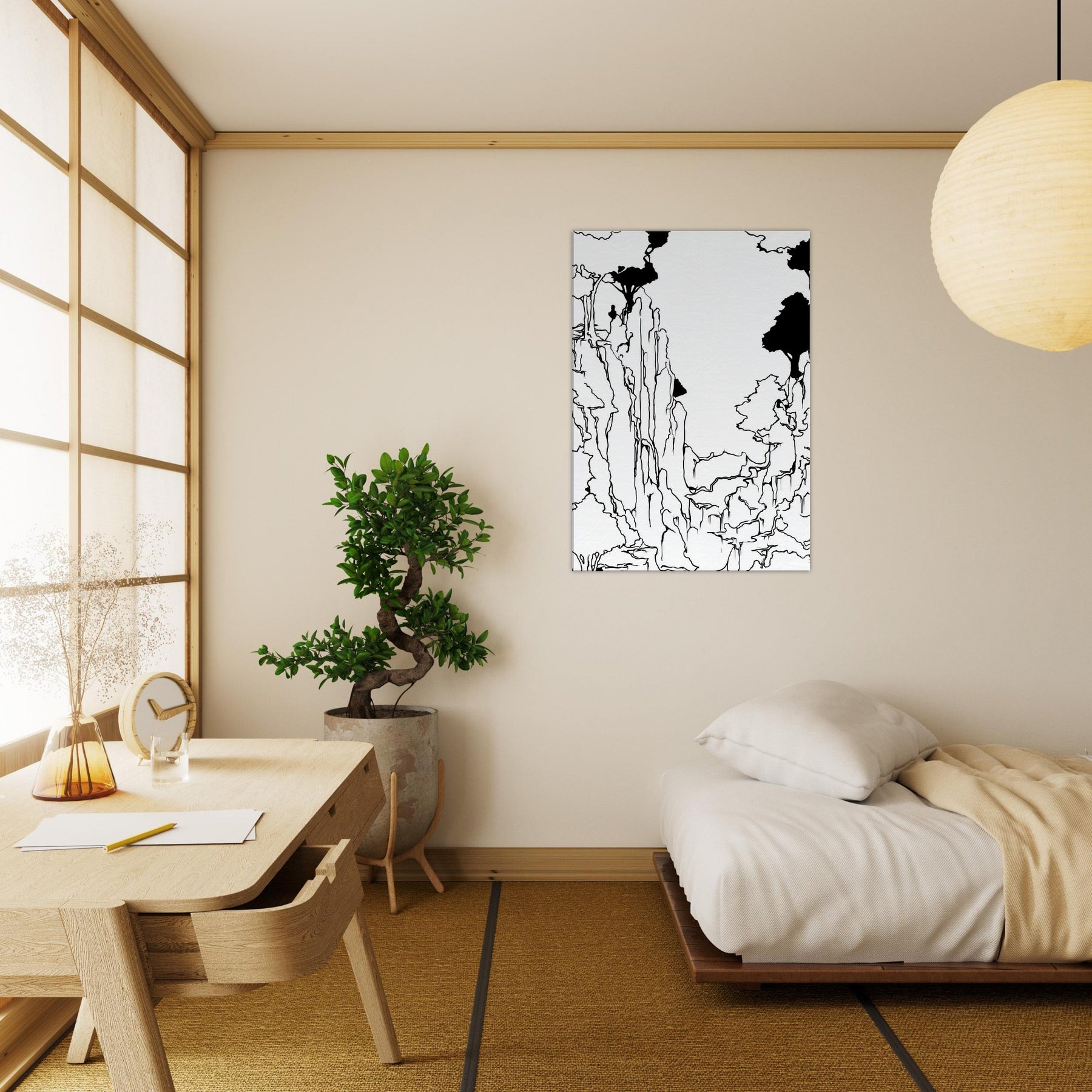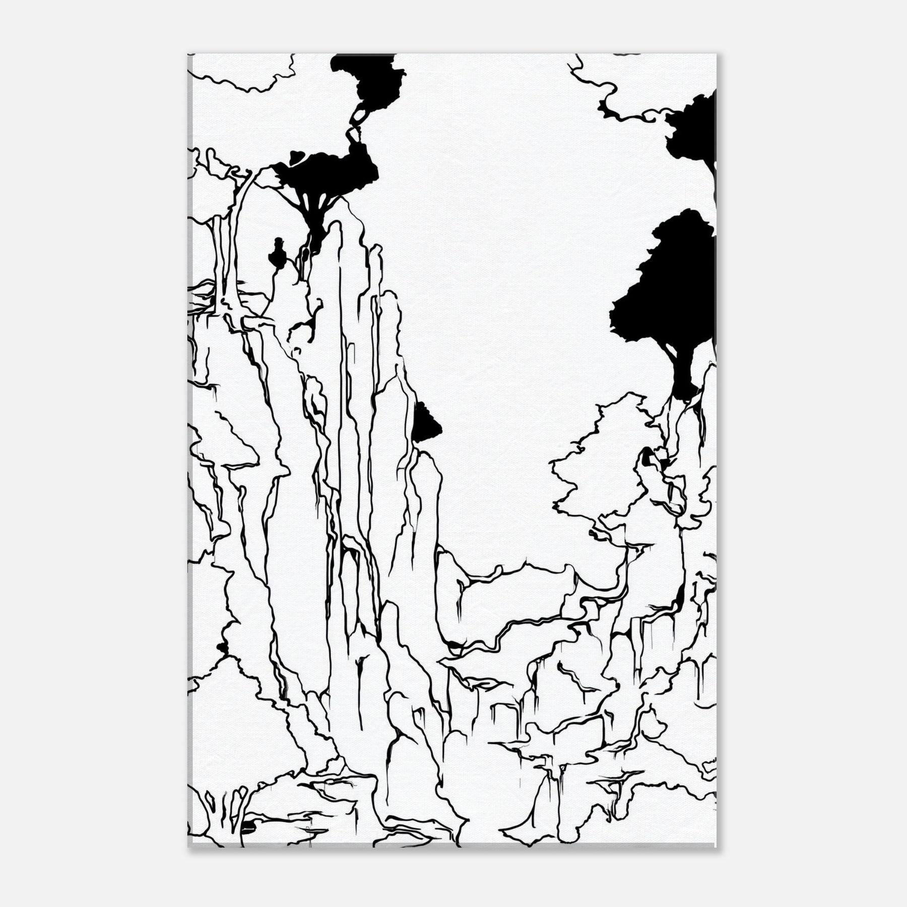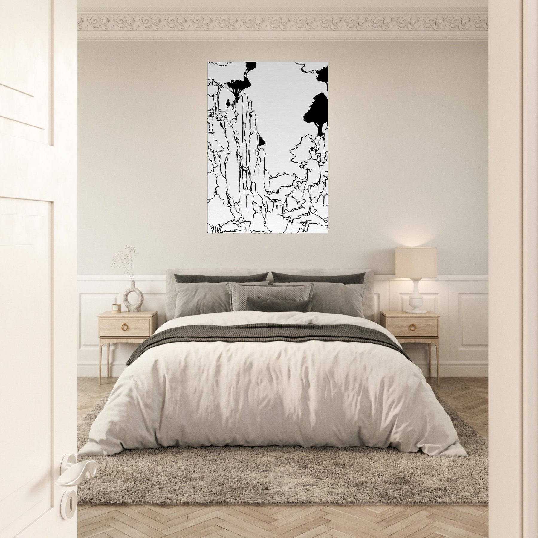 Witness the living geometry of the Jungle in a refined line drawing that breathes with quiet gravity. This monochrome study traces treetop silhouettes and serrated rock forms with effortless ease, turning a wall into a window where imagination roams. The bold contrasts invite light to play across your space, lending serene drama to a sofa, desk, or entryway. Crafted as a contemporary keepsake, it anchors nature’s presence in a tidy, modern home an invitation to pause, breathe, and dream.