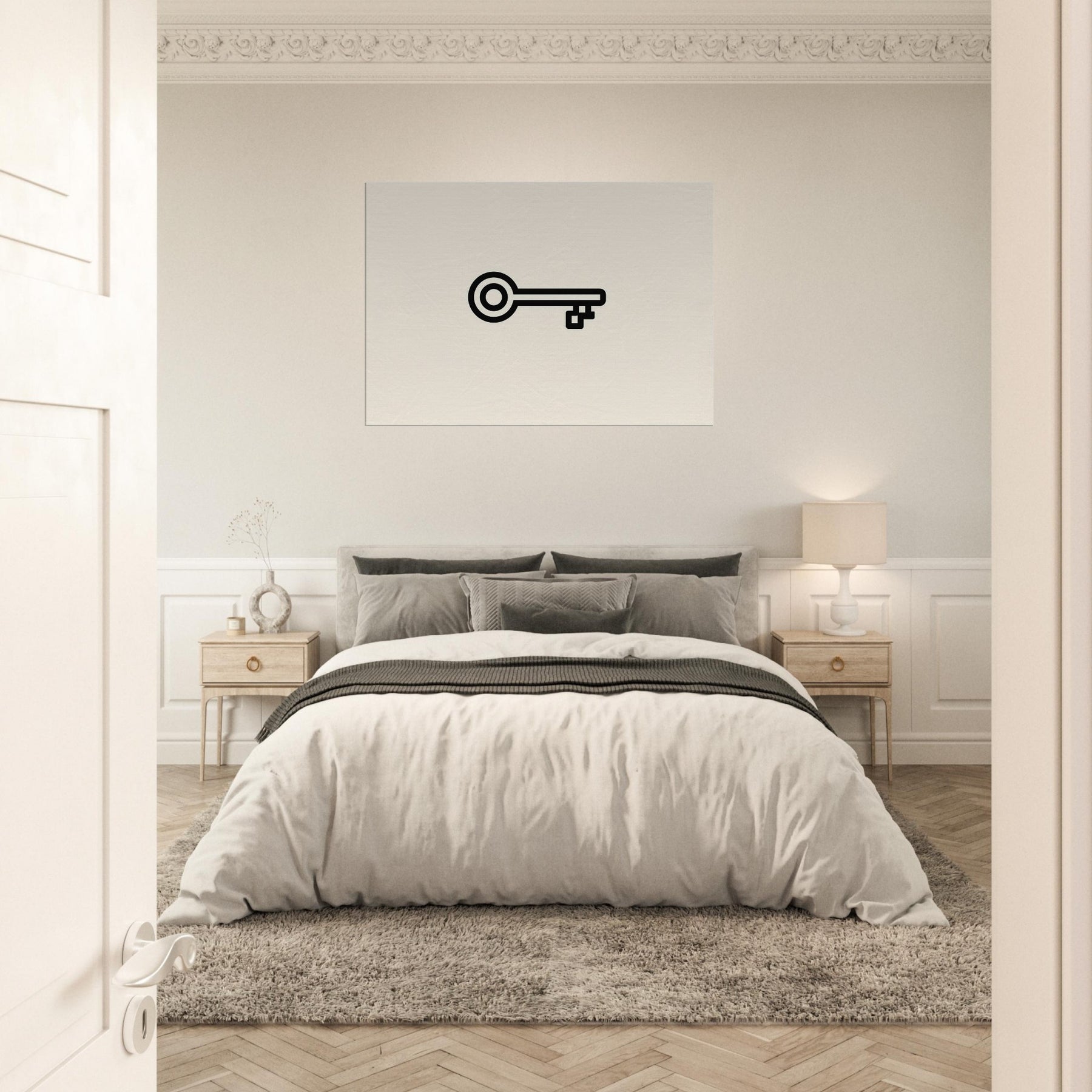 A single line drawing of a Key & Keyhole floats in negative space, a quiet emblem of possibility. The bold, unbroken curves and straight shaft simplify complexity into elegance, casting a subtle shadow of memory and invitation across the wall. The contrast of black ink against warm ivory creates a timeless focal point that feels both modern and intimate. Hang it where daylight softens into evening entryways, dining nooks, or a serene living room where it unlocks conversation and a sense of poised anticipation.