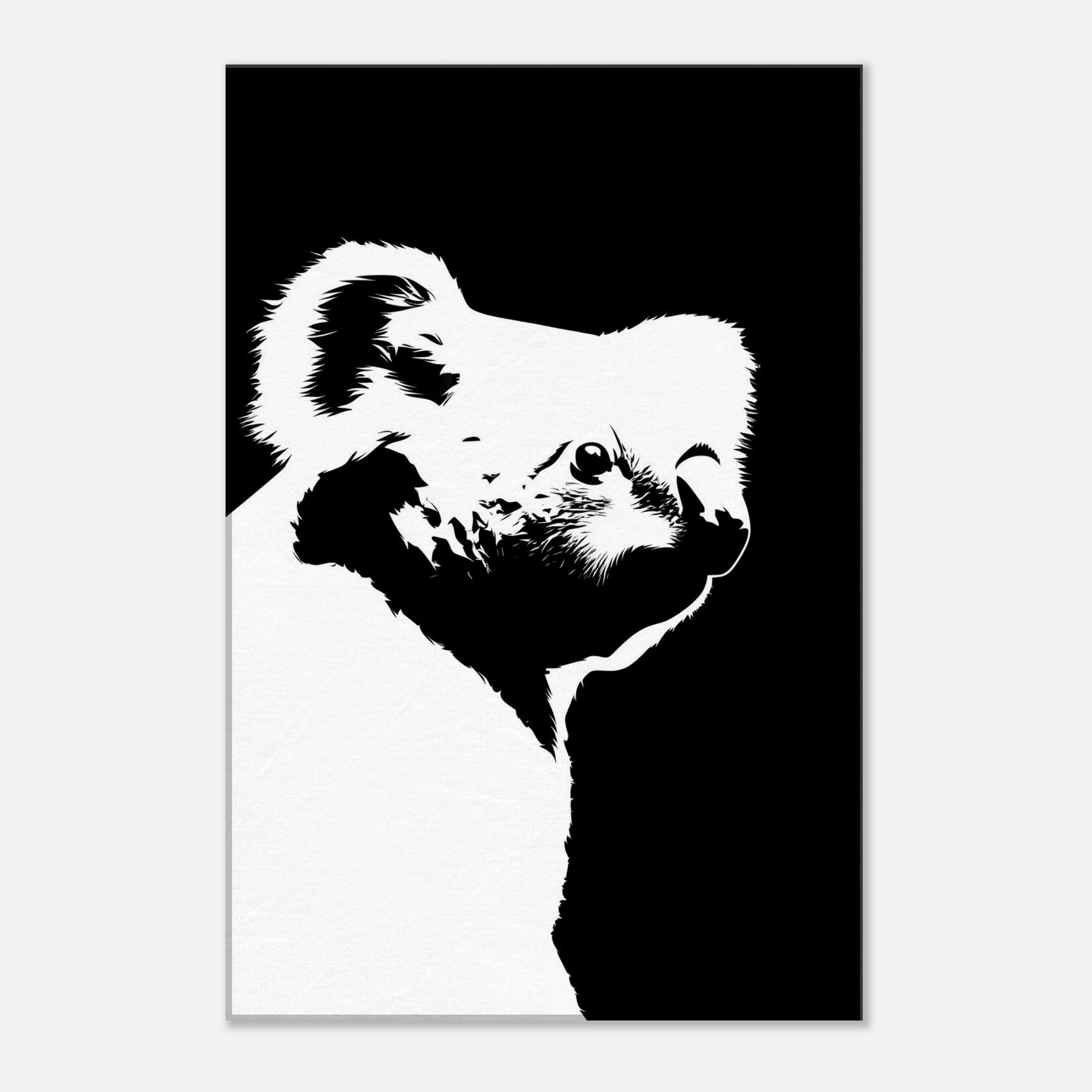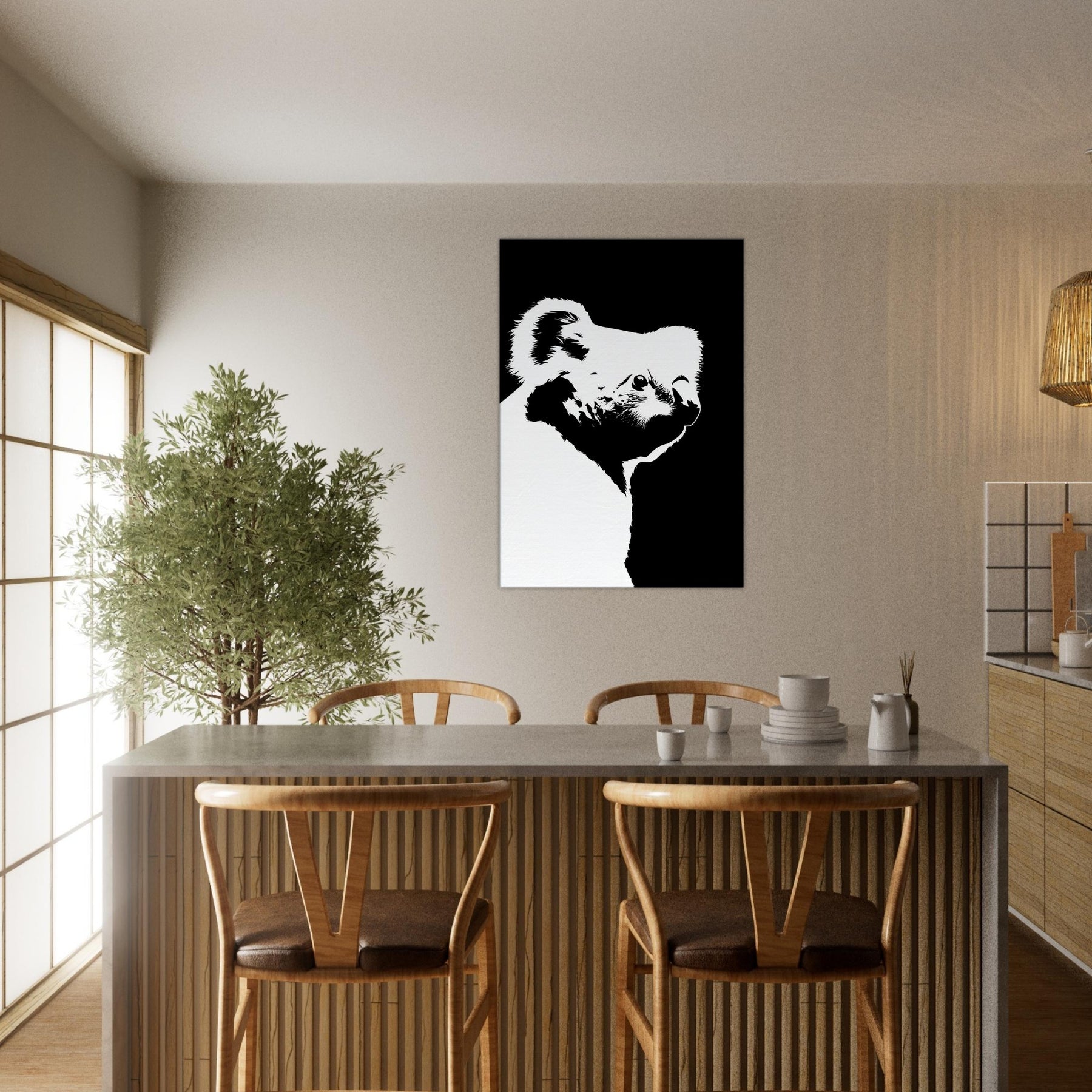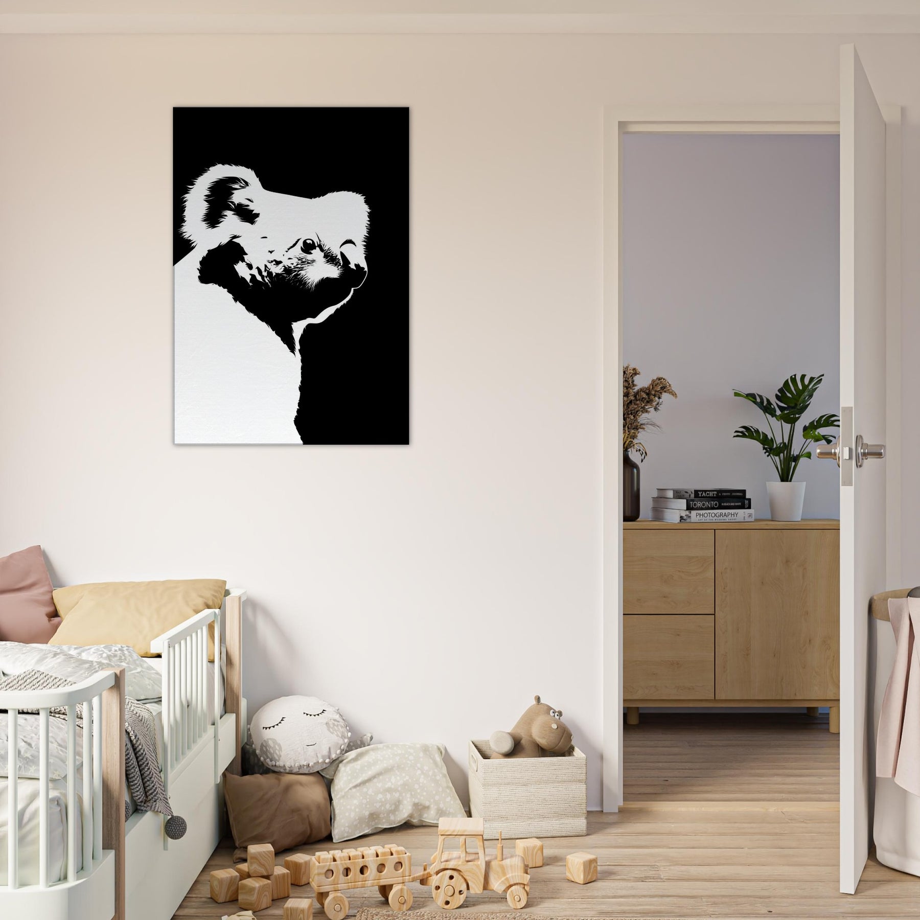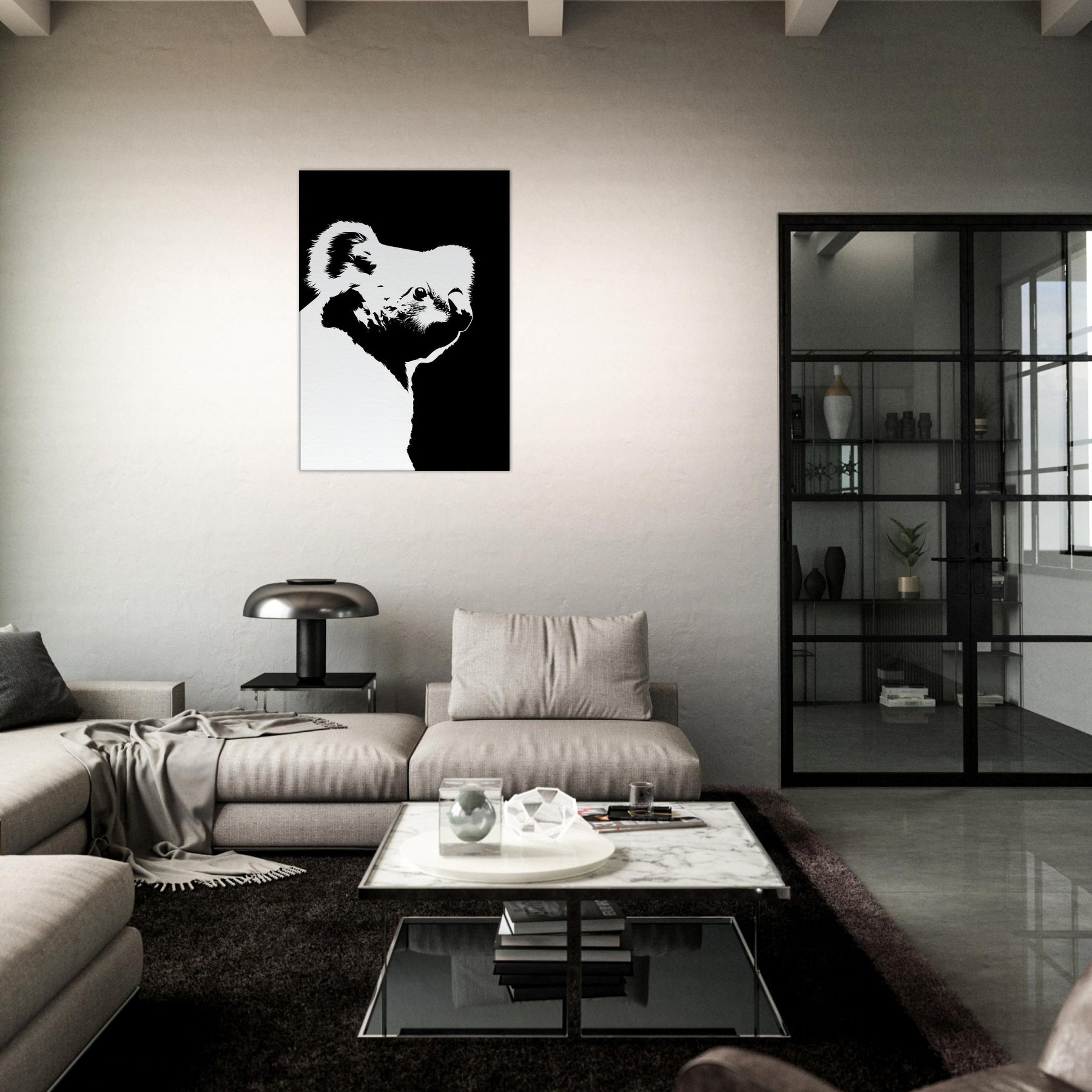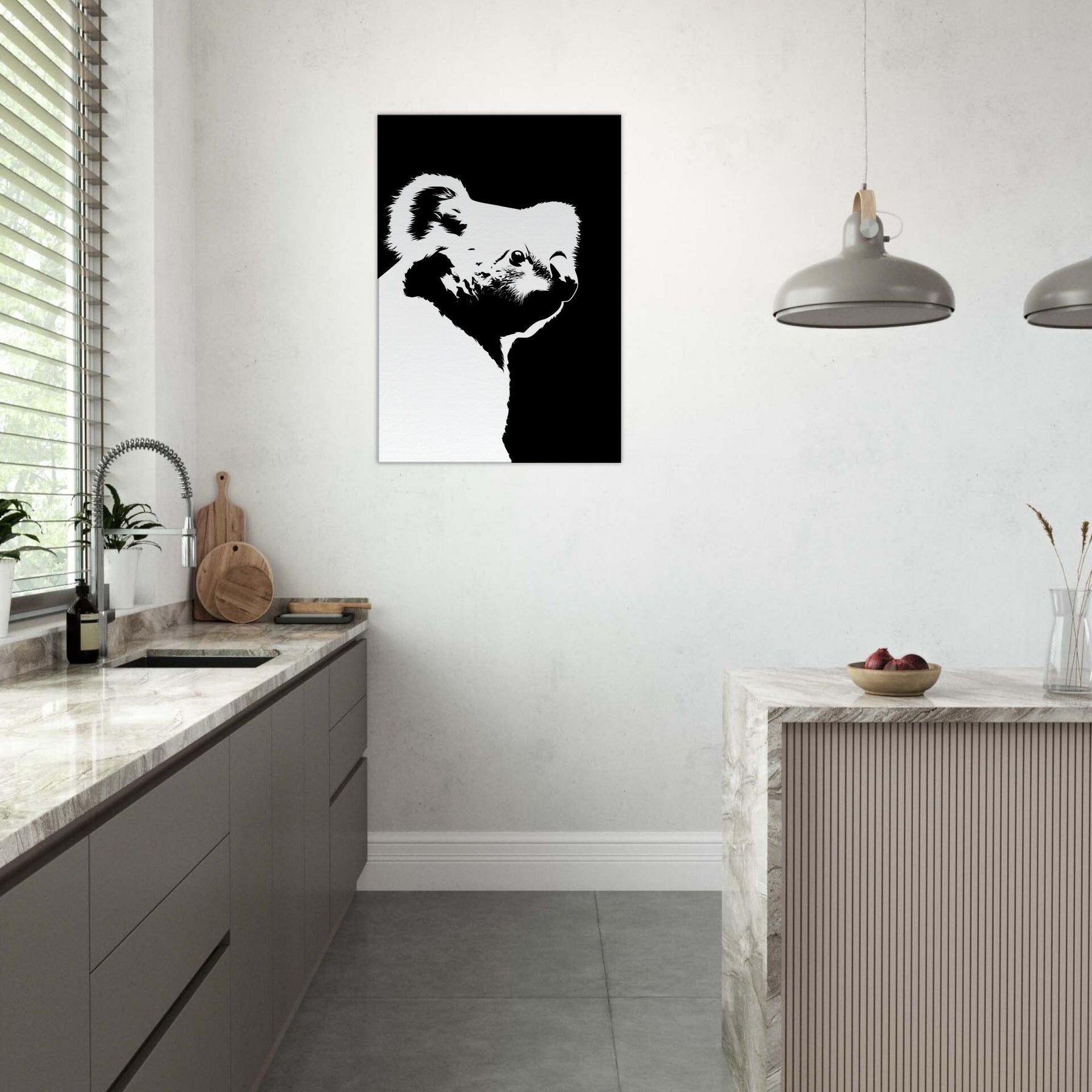 Let this Koala line drawing bring a quiet, elegant pulse to your living space. The bold black and white contrast, rendered in clean, continuous lines, suggests both innocence and wonder as if the forest has been sketched into your walls. It pairs best with muted furniture and natural textures, turning a corner into a moment of calm. The primary subject Koala gazes with a gentle, knowing smile, inviting reflection and conversation. This wall art cultivates a serene, contemporary atmosphere perfect for bedrooms, lounges, or studies seeking softer edges and clarity.