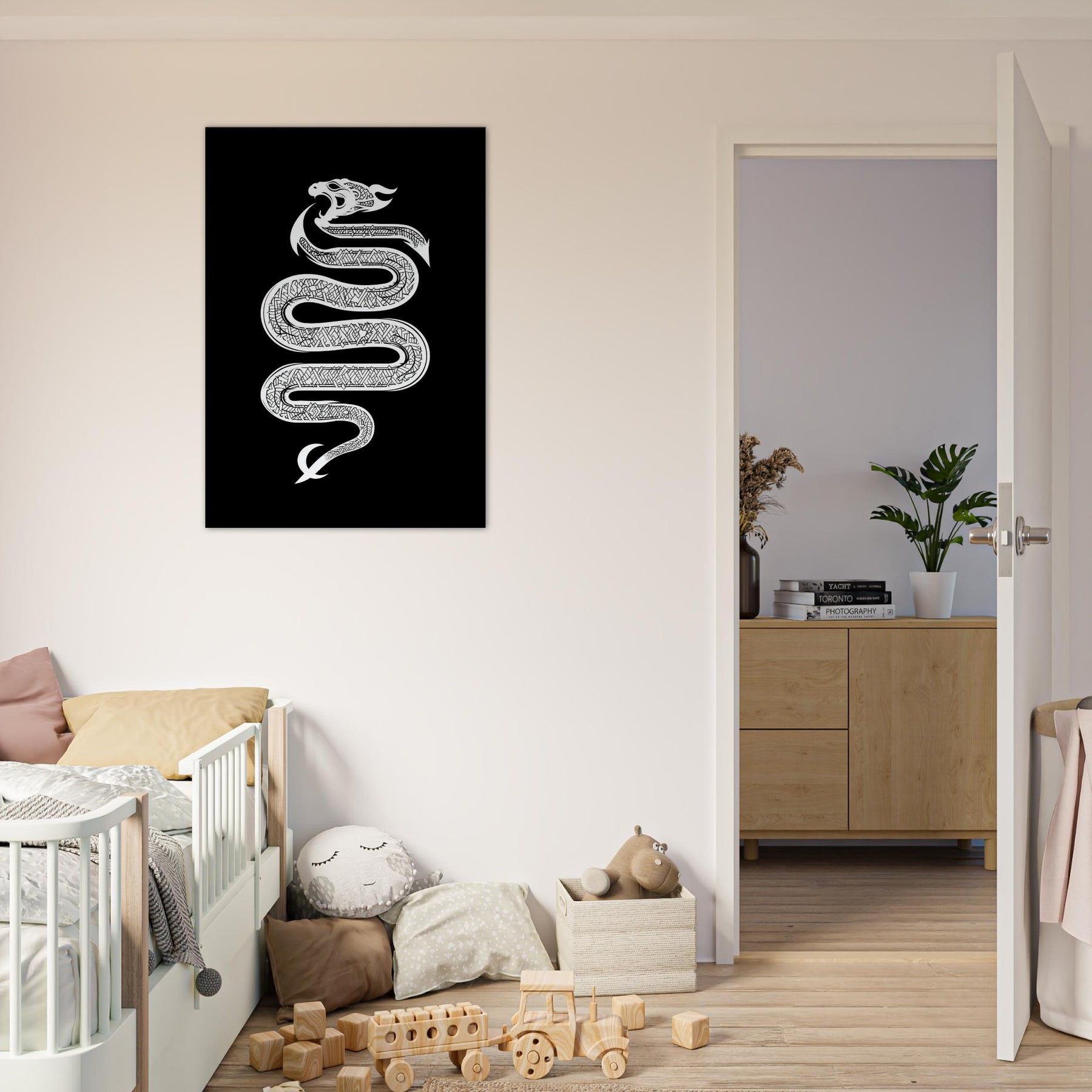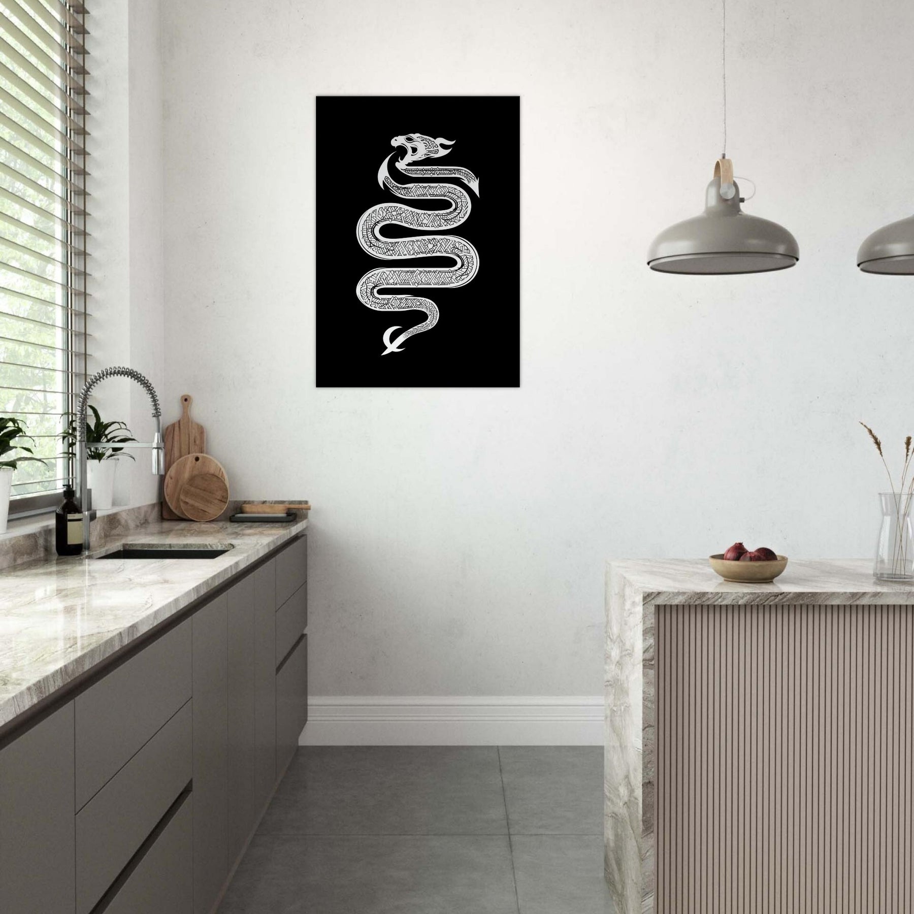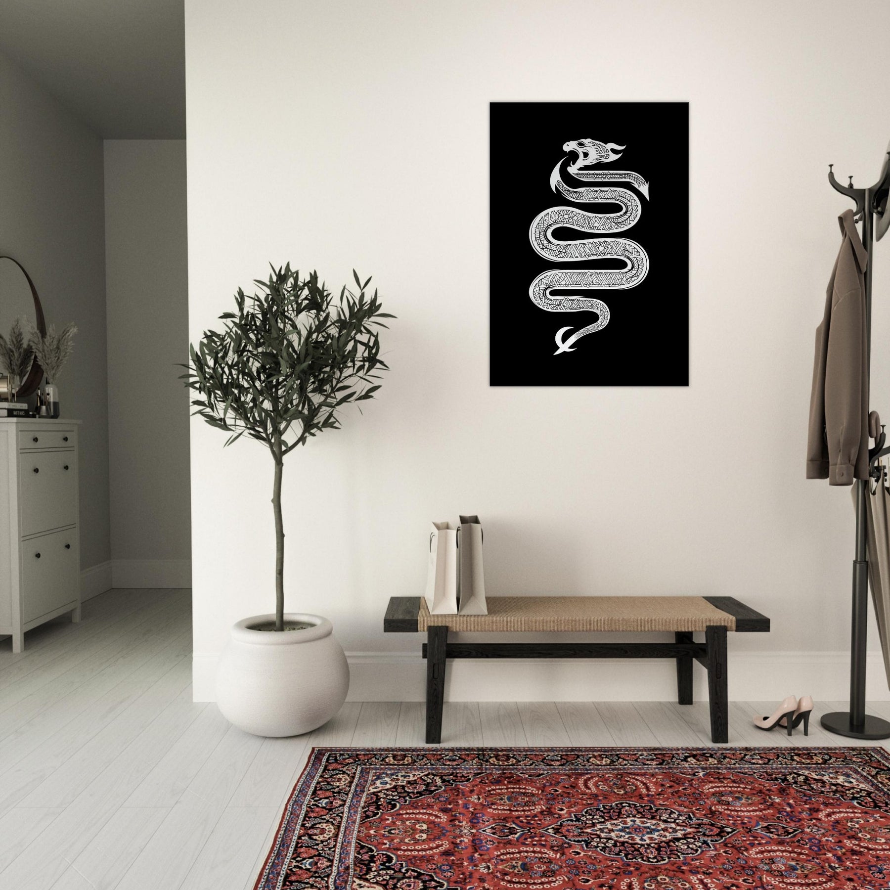 An elegant line drawing of the Kundalini Serpent unfurls across the frame, its sinewy form carved in precise, monochrome lines. The mystical energy seems to pulse with every curve, inviting quiet contemplation and a sense of ascent. Place it in a sunlit living room or a meditative nook to bathe the space in calm, focused light the serpent’s coils becoming a graceful refrain that anchors the room with timeless, subtle grandeur.