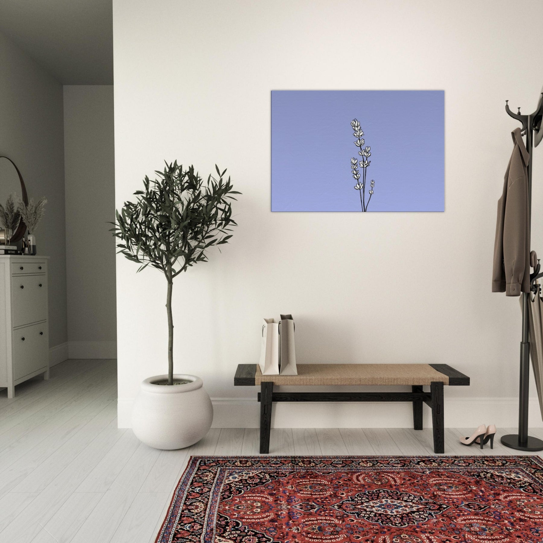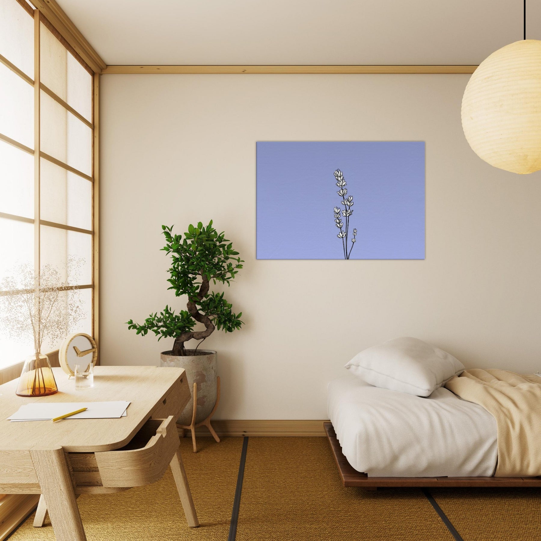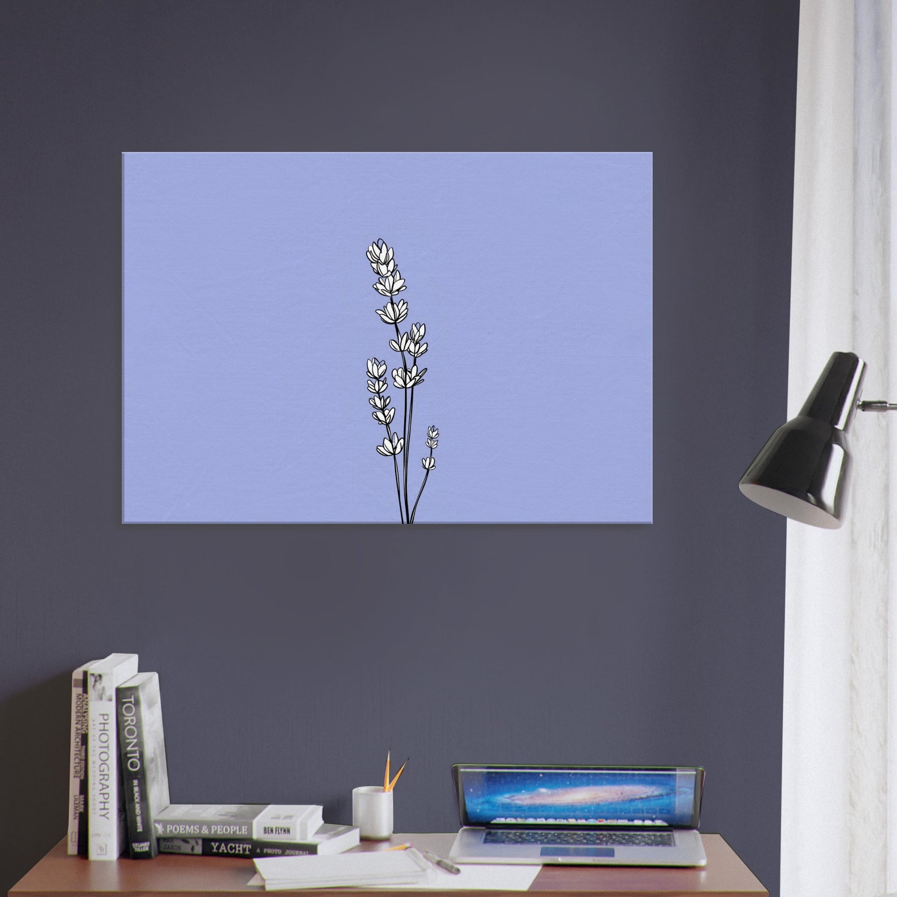 Where the quiet bloom of Lavender meets the elegance of line art, this print captures a garden’s breath in a single, graceful sweep. Delicate stems rise against a soft, lilac sky background, their contours rendered with quiet confidence and subtle rhythm. The result is a modern still life that invites calm, poise, and thoughtful contemplation a focal point that warms living rooms, bedrooms, or home offices with a gentle, nature infused presence. A versatile piece that pairs with neutrals and pastel palettes alike.
